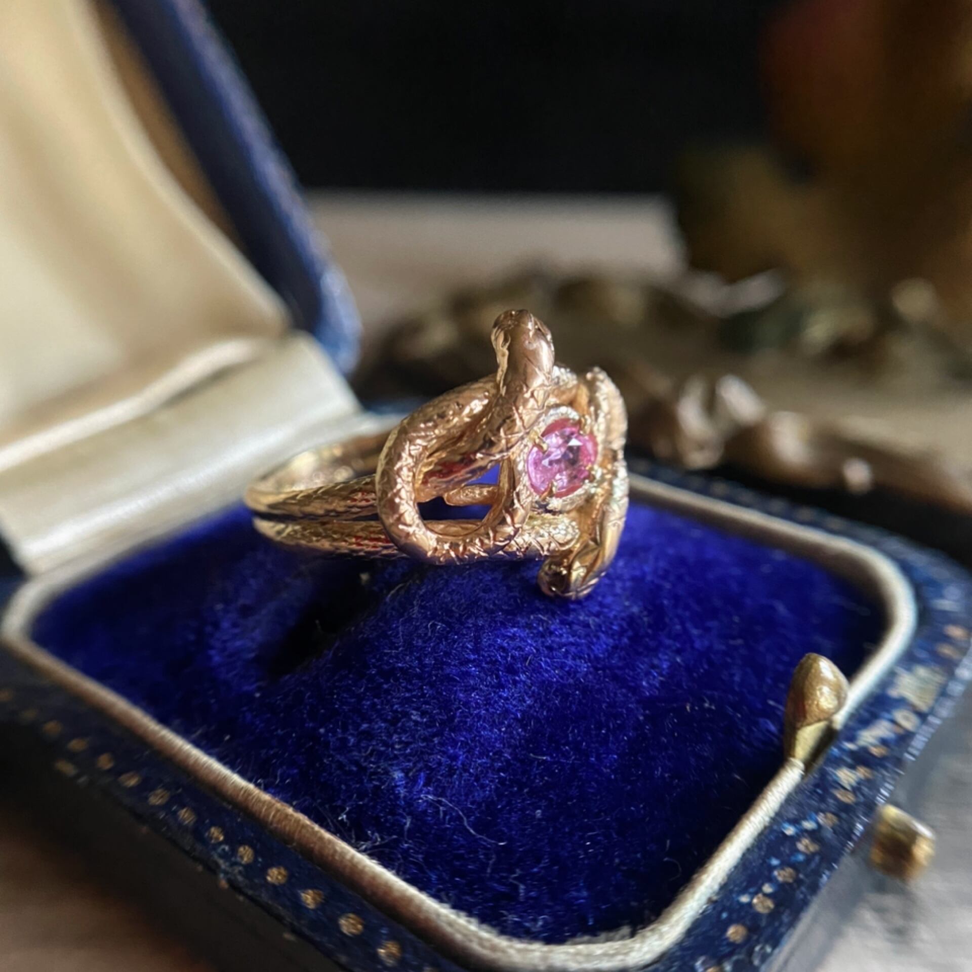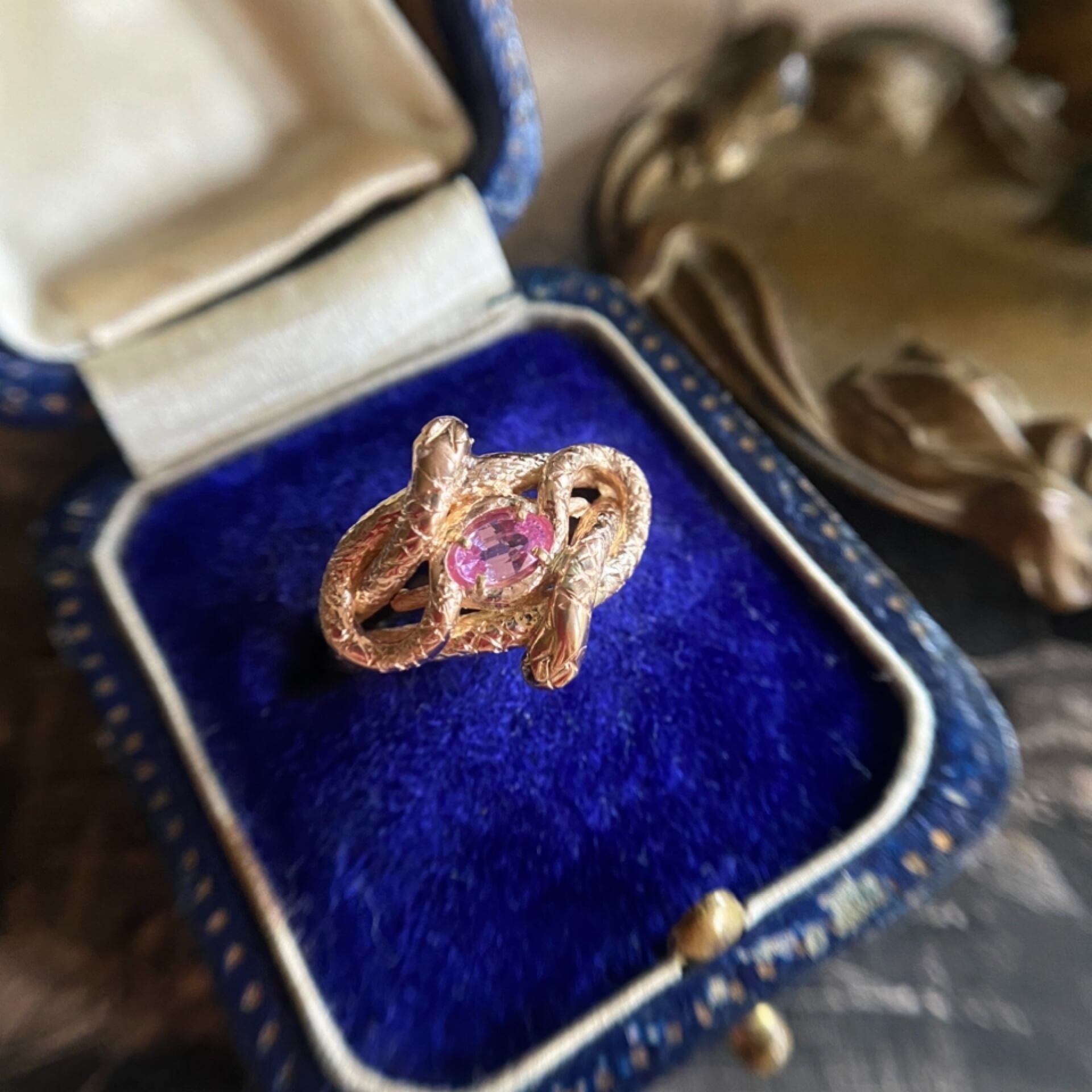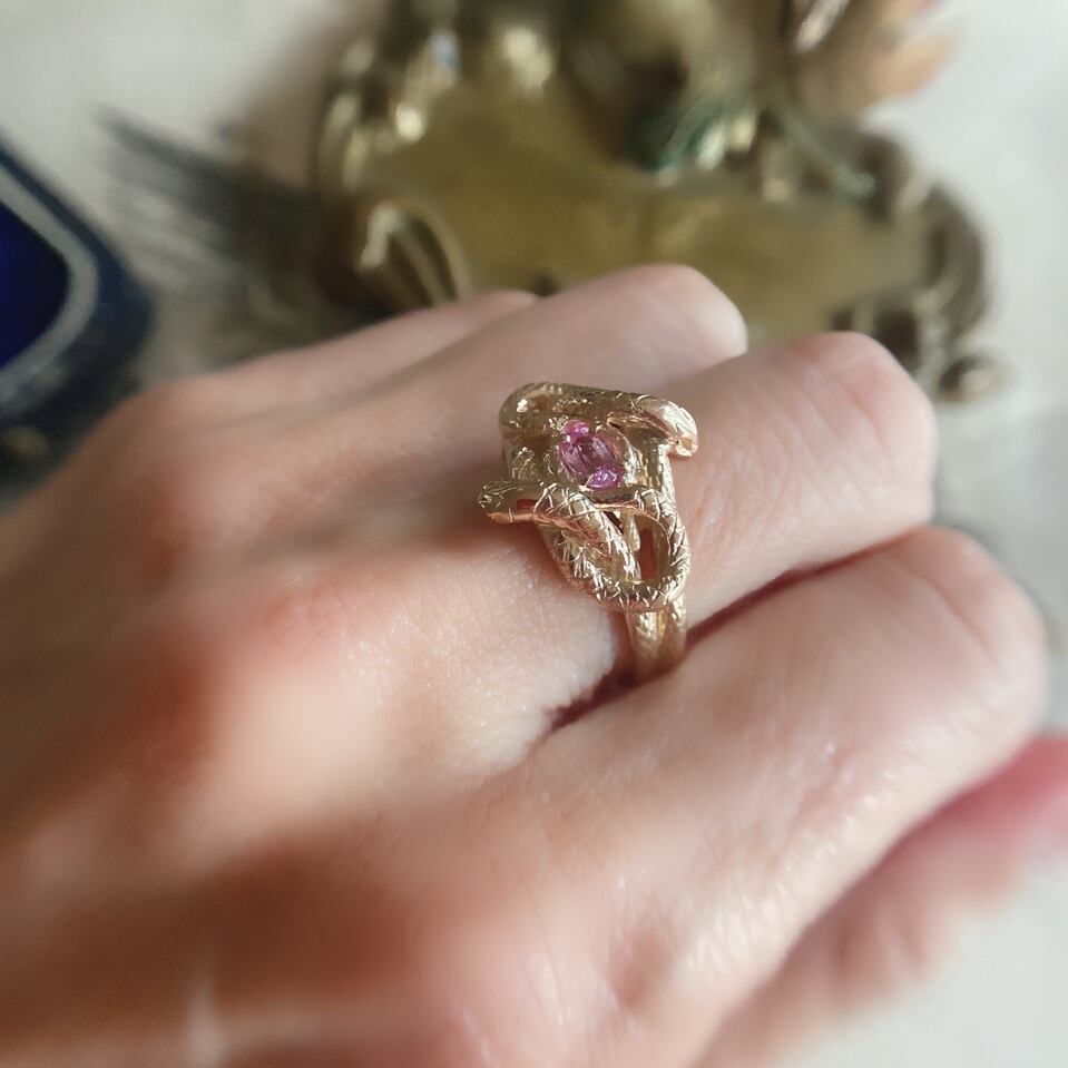 イギリスでは巻きつく蛇は"永遠の愛"の象徴でもあり、蛇は脱皮することから、再生力、生命力、不死、豊穣のシンボルとして崇められていた事もあり、ファッションリーダーだったヴィクトリア女王を真似して、スネークリングを贈る人がその当時増えたといいます。