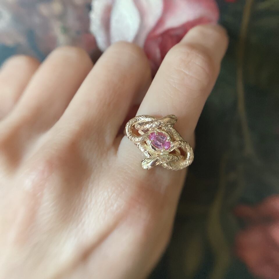 ピンクサファイア スパニッシュモデルニズモスネークリング