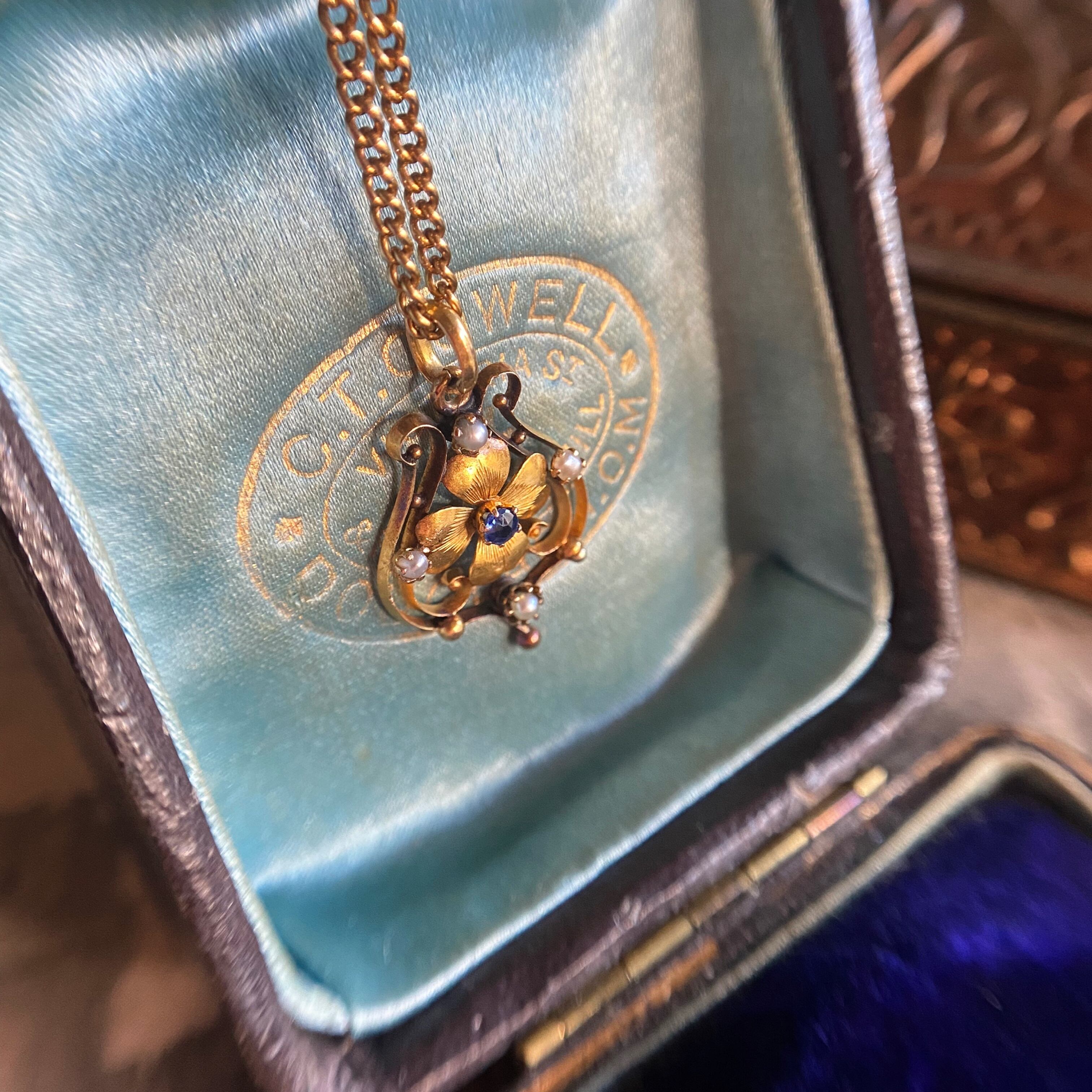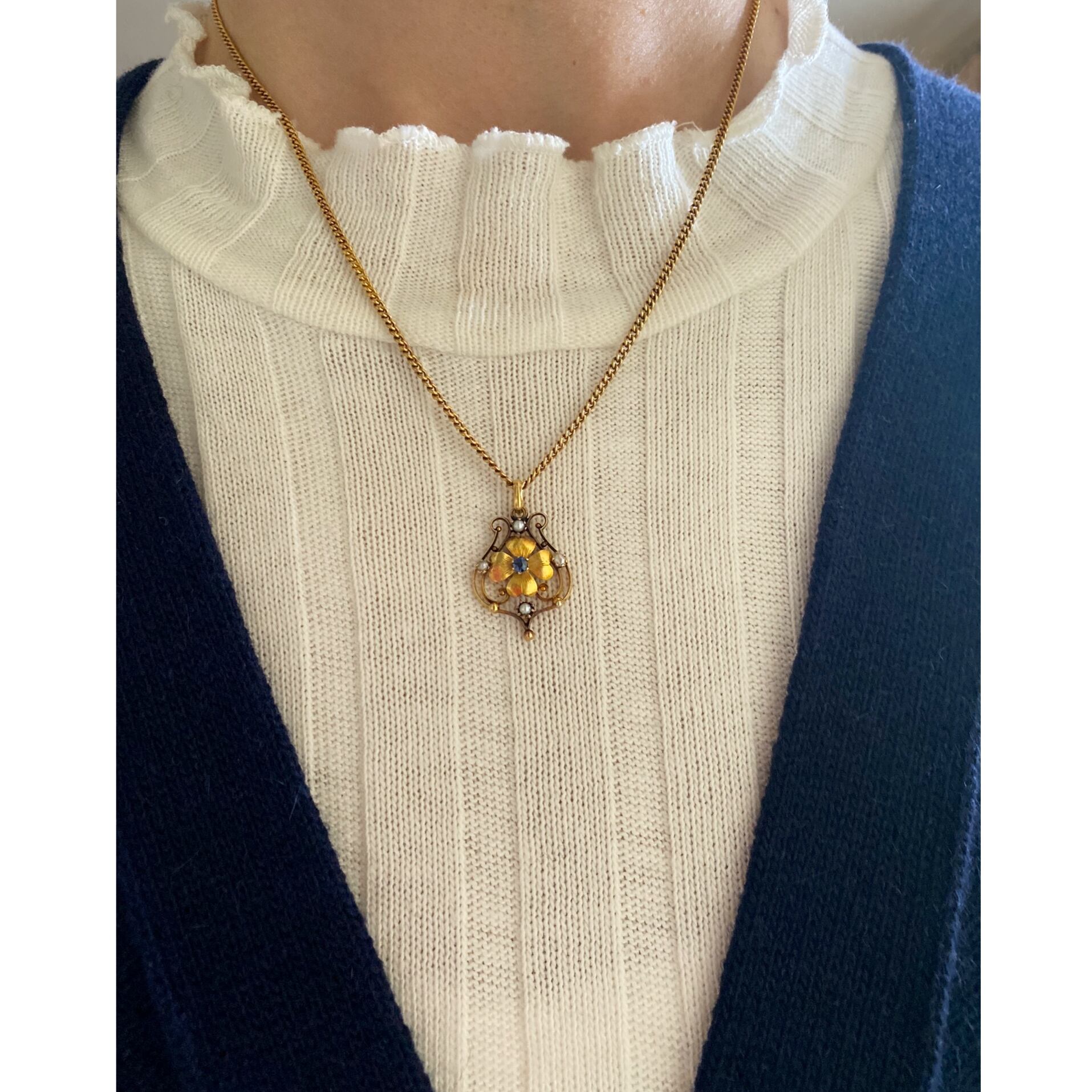 アンティークペンダントらしい、立体的な奥行きのある造り、竪琴の穏やかな音色のような小さなケシのみパールのシルキーな光沢も健在し、上品で愛らしく、幸せが舞い込んできそうな、また、幸せを人に分かち合えそうなひと品ですね。
