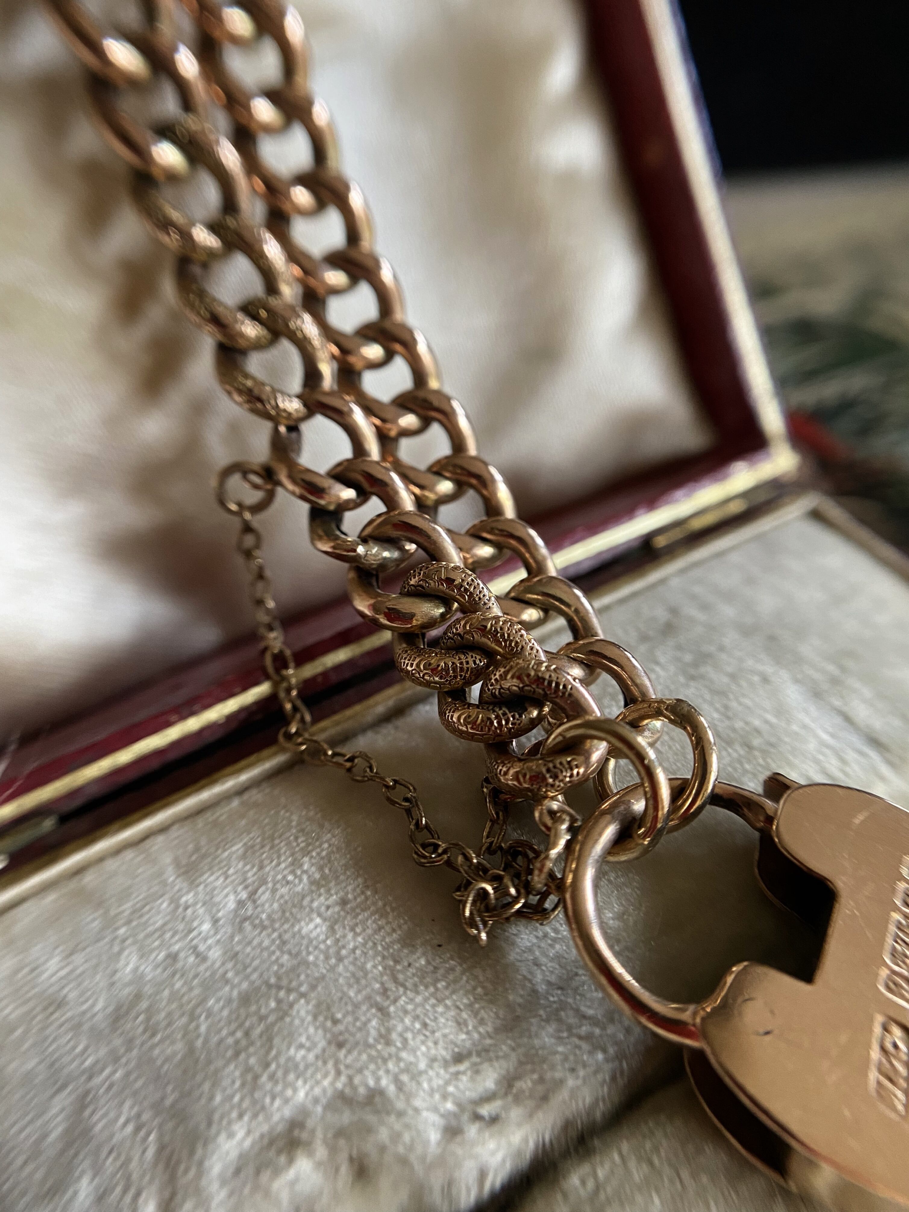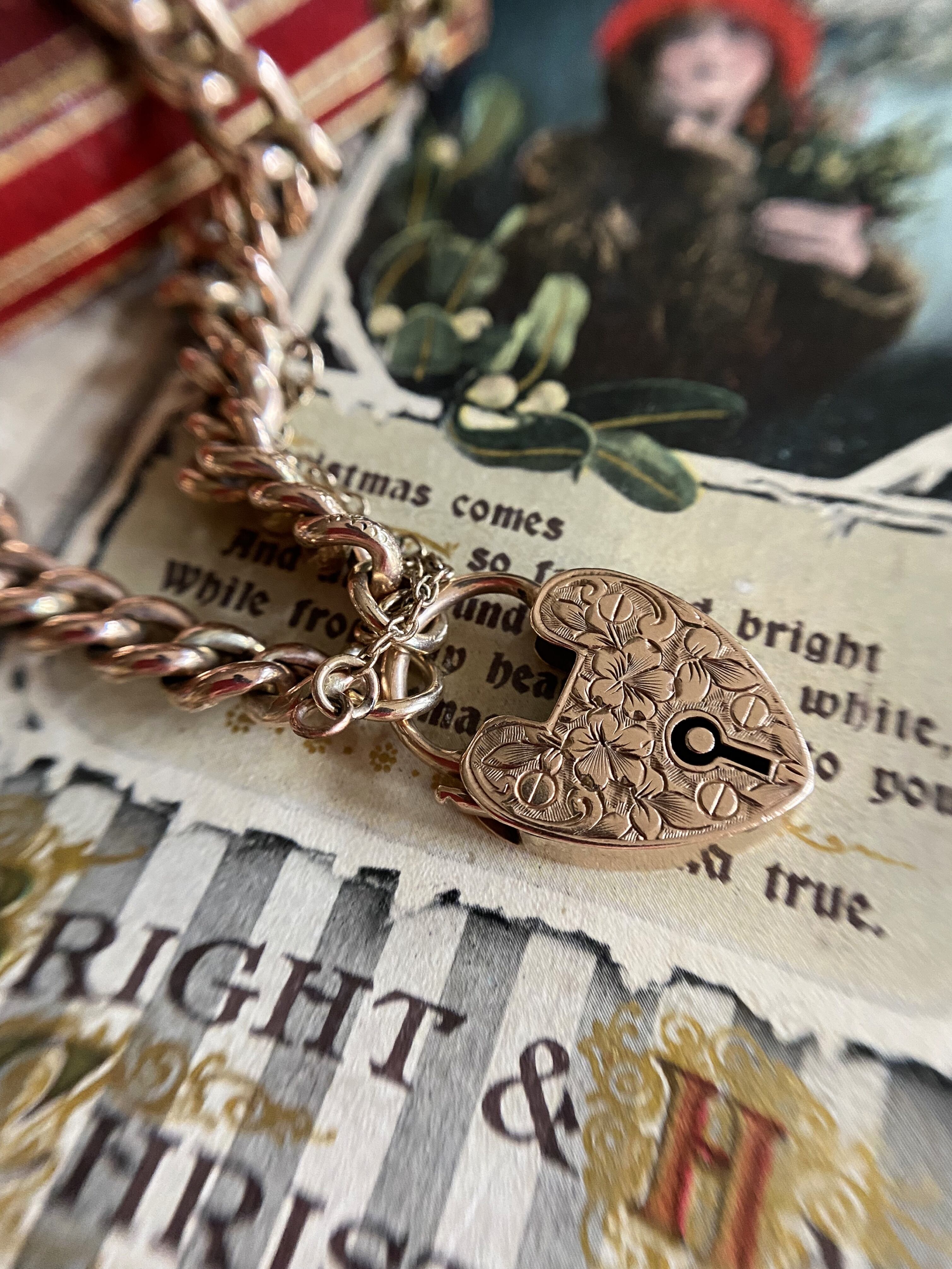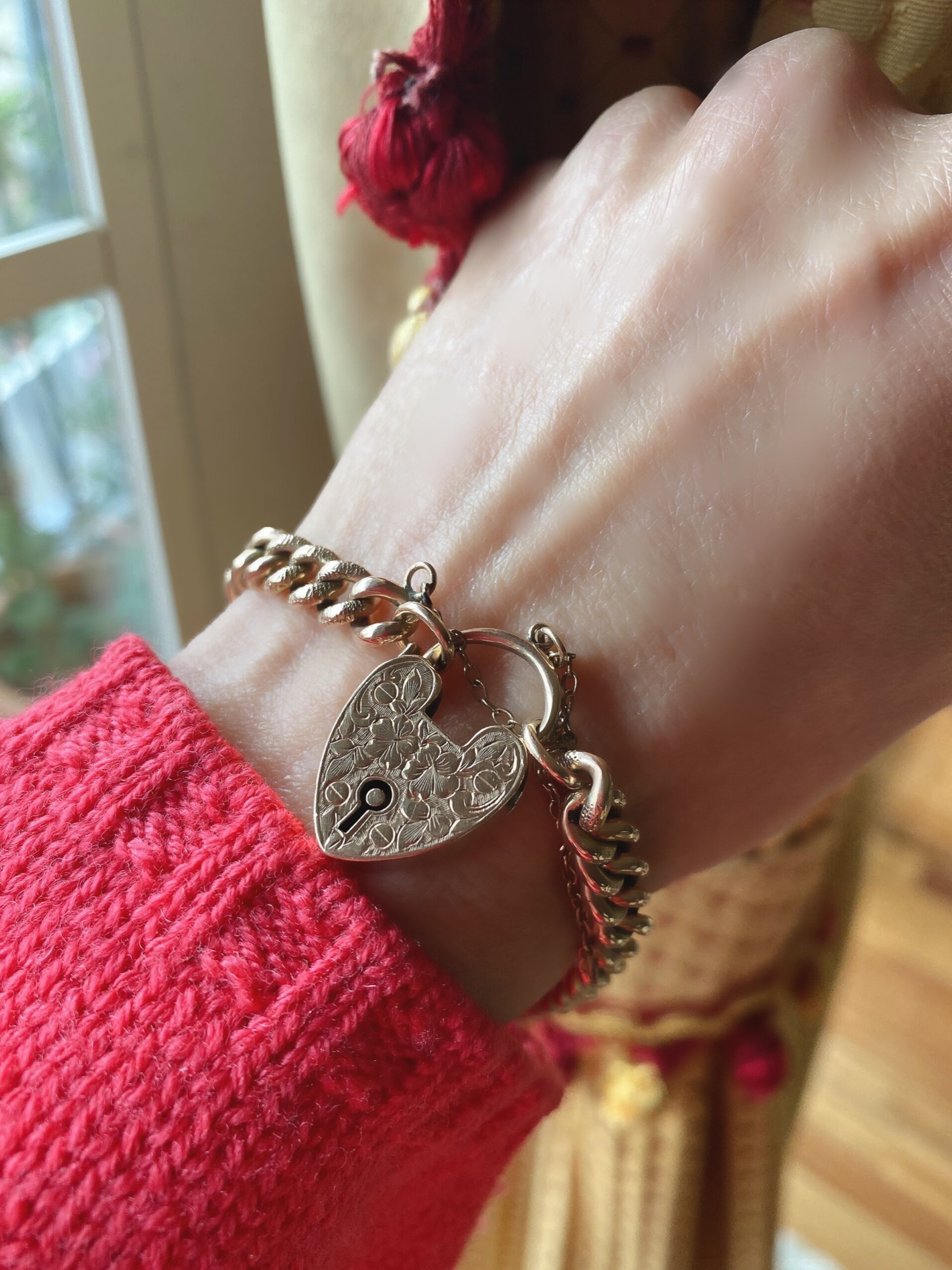 ハートのパドロックの付いたトラディショナルなアンティークチェーンブレスレットのご紹介です。