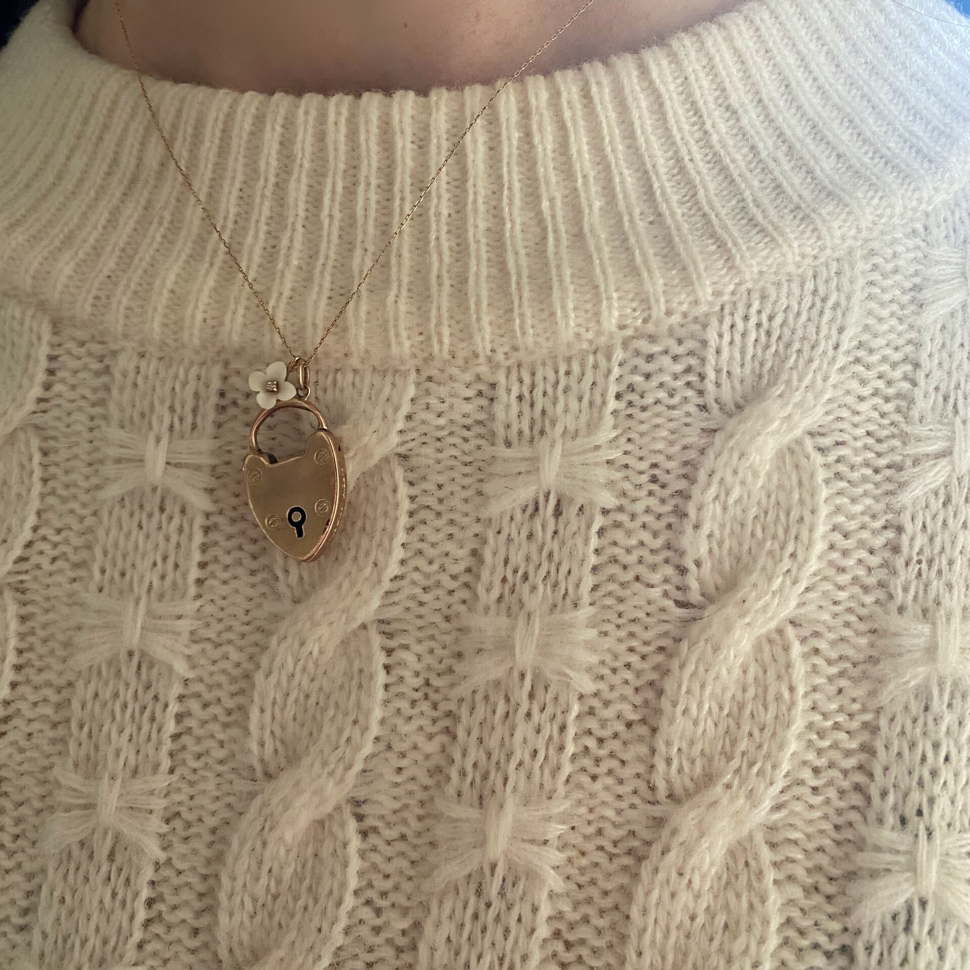 絆、信頼、友情などのシンボルとしてヴィクトリアン時代にはチェーンブレスレットの留金として好んで用いられたロマンティックな錠前です。