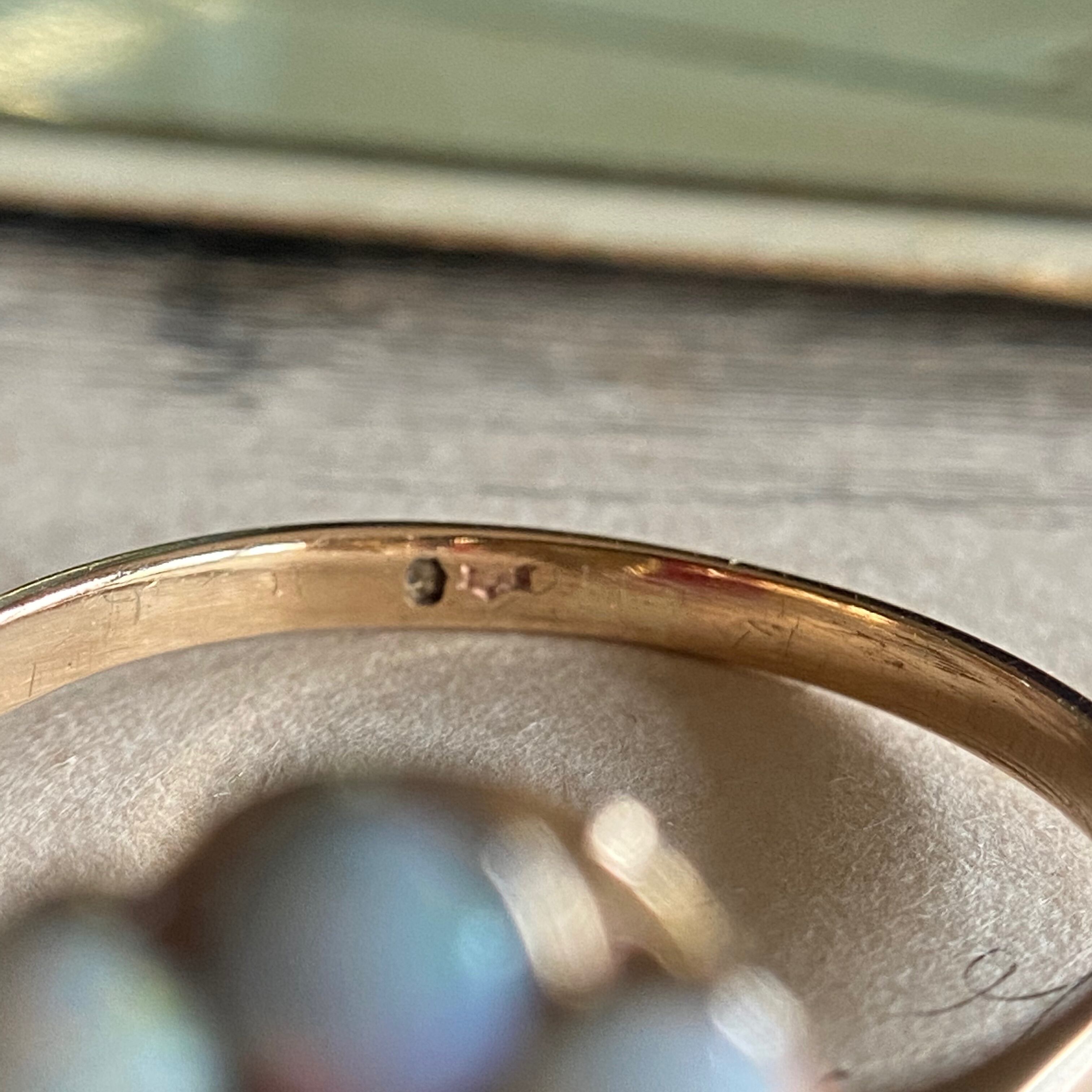 クリーミーオパールのデイジークラスター ヴィクトリアンリング