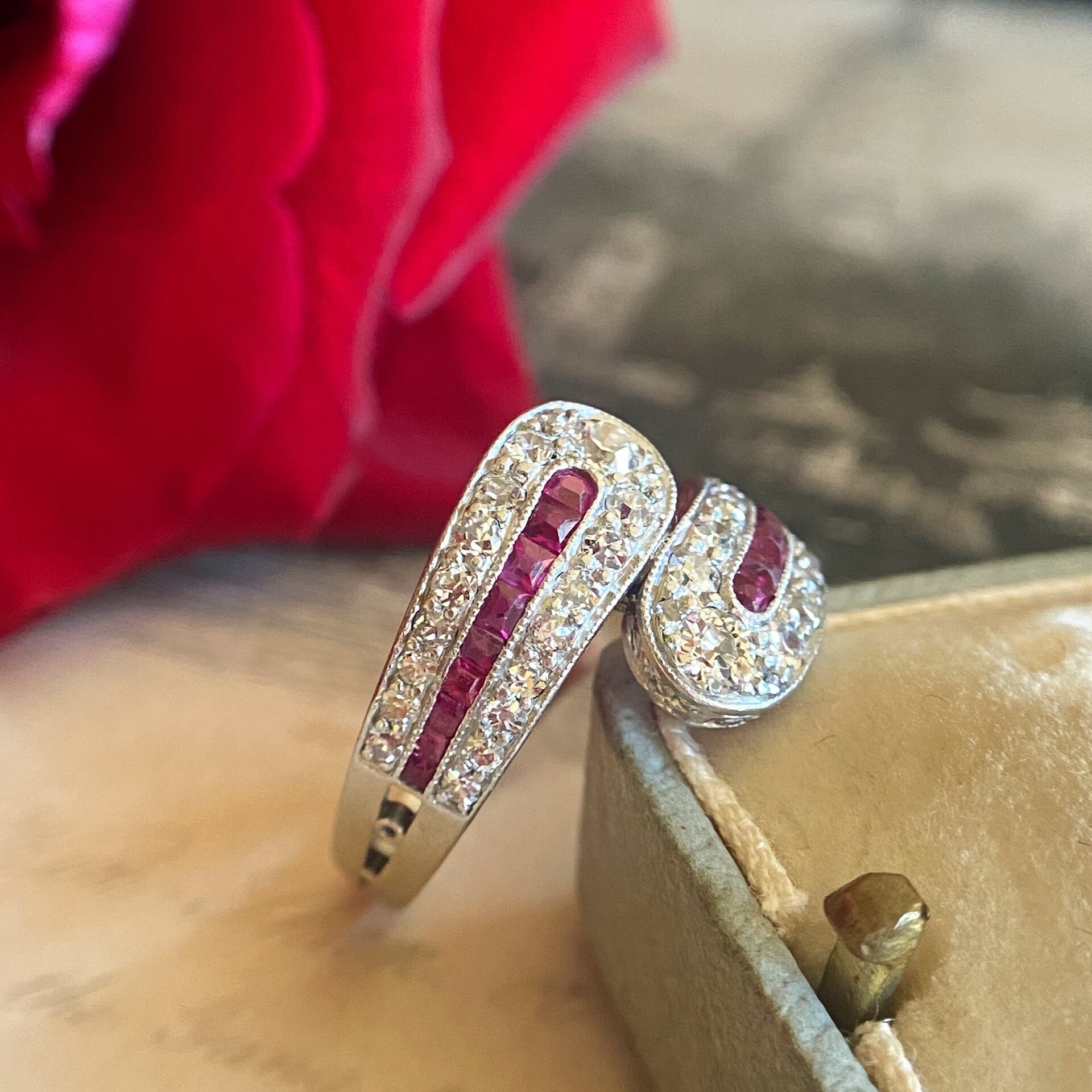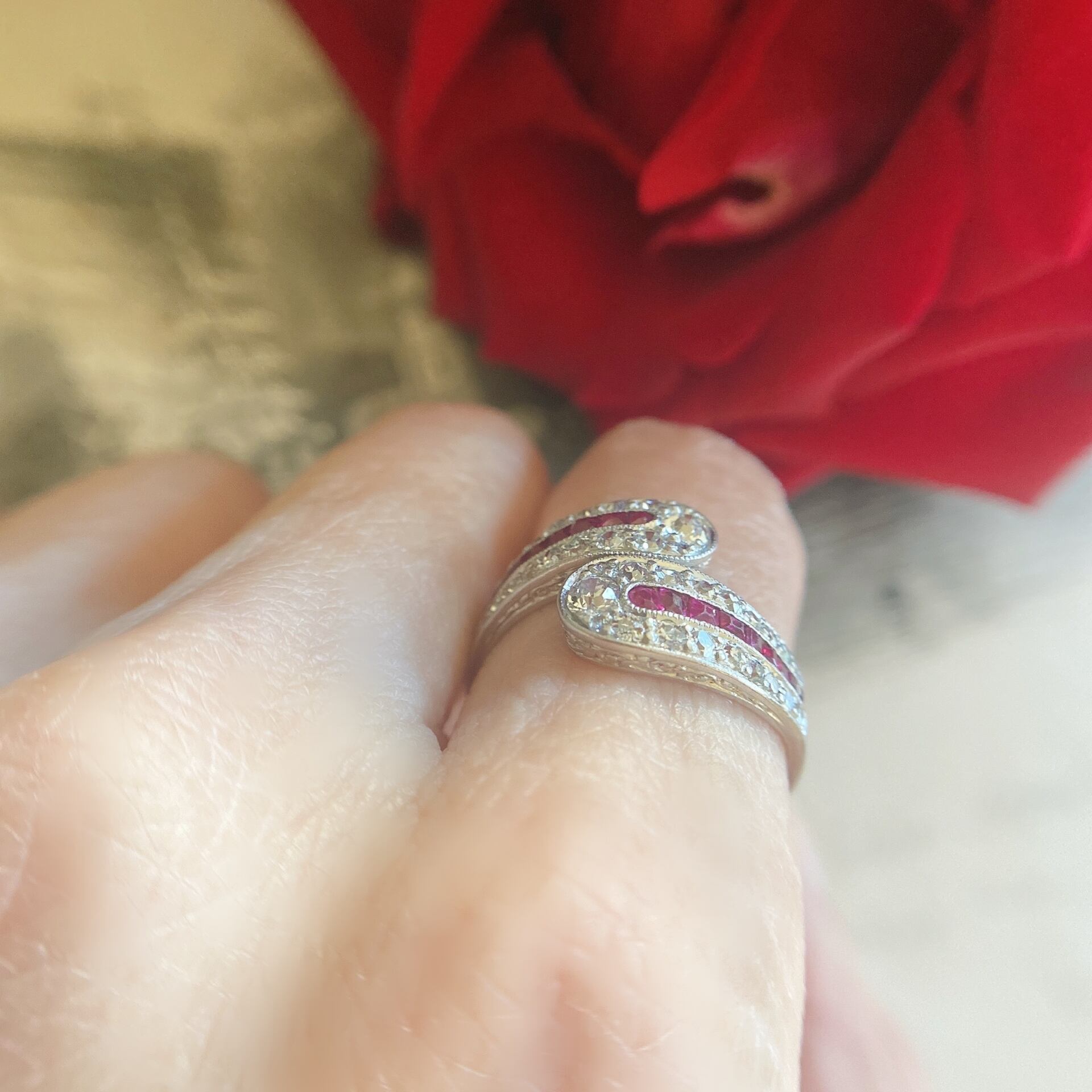 ルビー&ダイヤモンド クロスオーバーアールデコリング