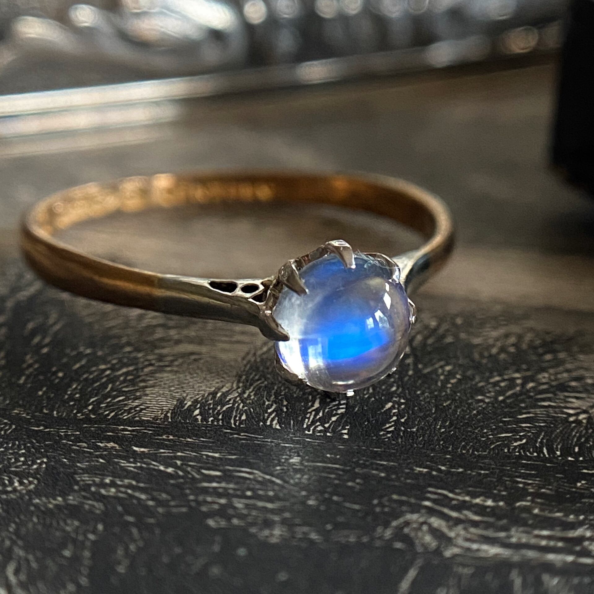 サイズ感も可愛らしく、他のリングとのコーデも気軽にお楽しみ頂ける厳かで静けさを感じるこちらのムーンストーンリング、22ctゴールドで作られたシンプル イズ ビューティーなひと品のご紹介です。