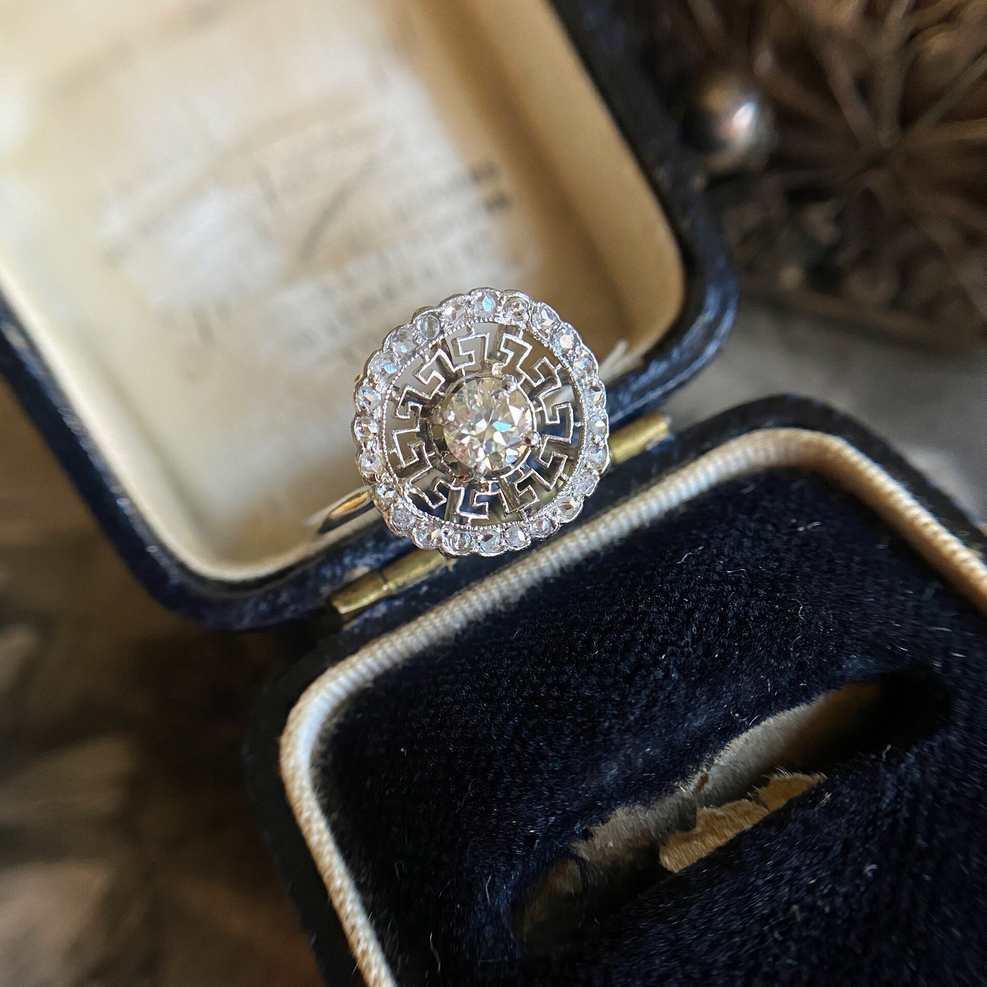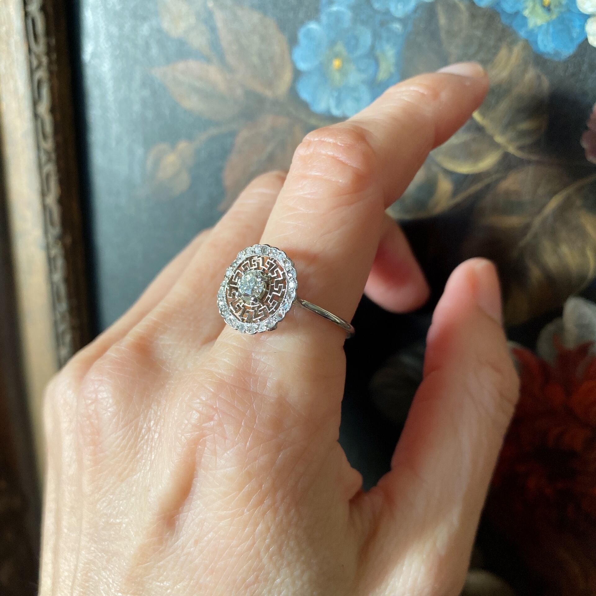 (T様専用決算用)雪の花のようなオールドヨーロピアンカットダイヤモンドグリークキーアールデコリング