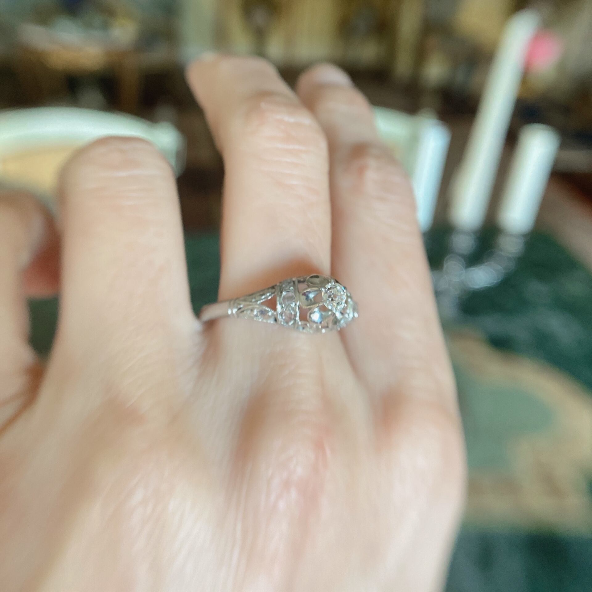 オールドマインカットダイヤモンドバターカップセッティングエドワーディアンリング