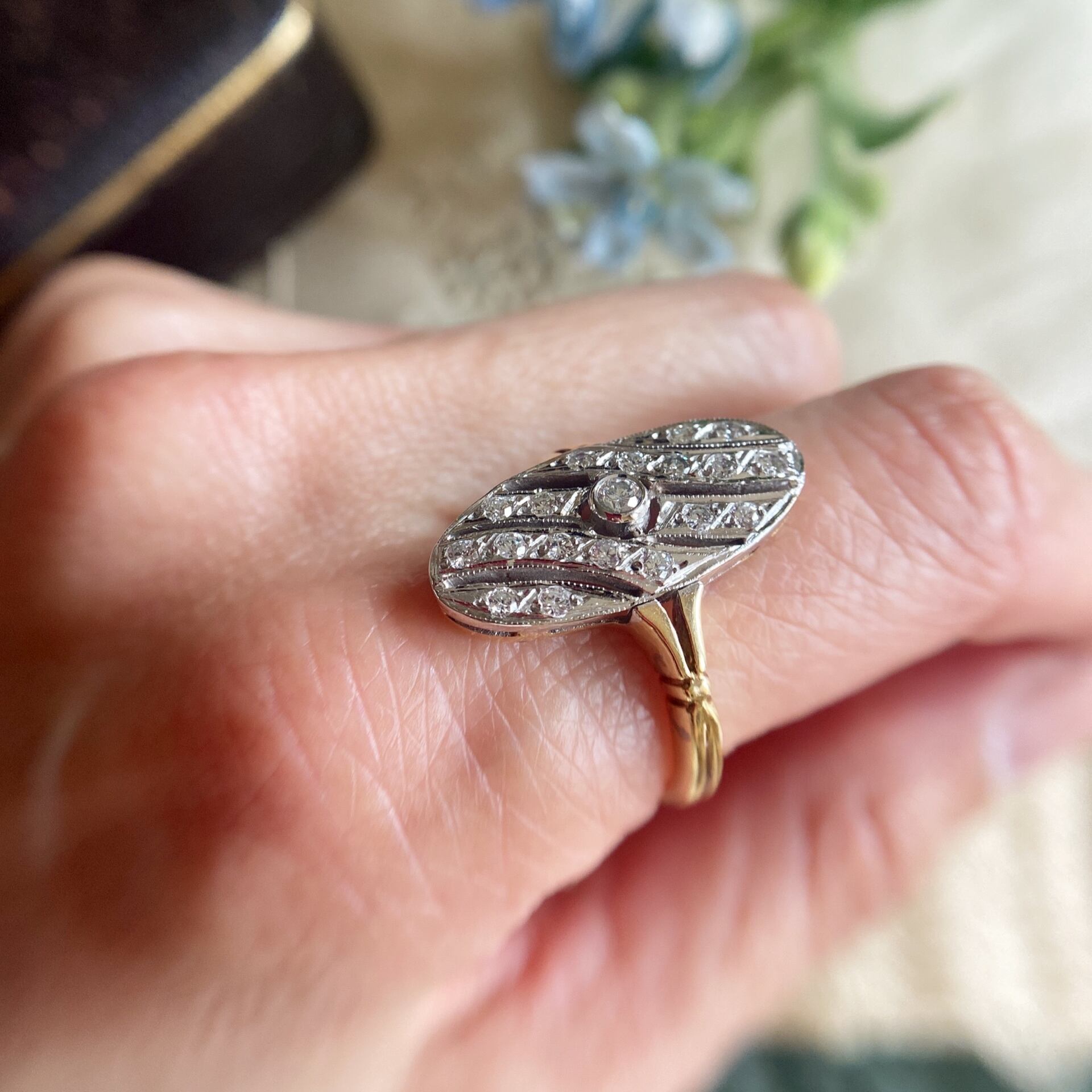流れ星のような透し彫りのダイヤモンドエドワーディアンリング