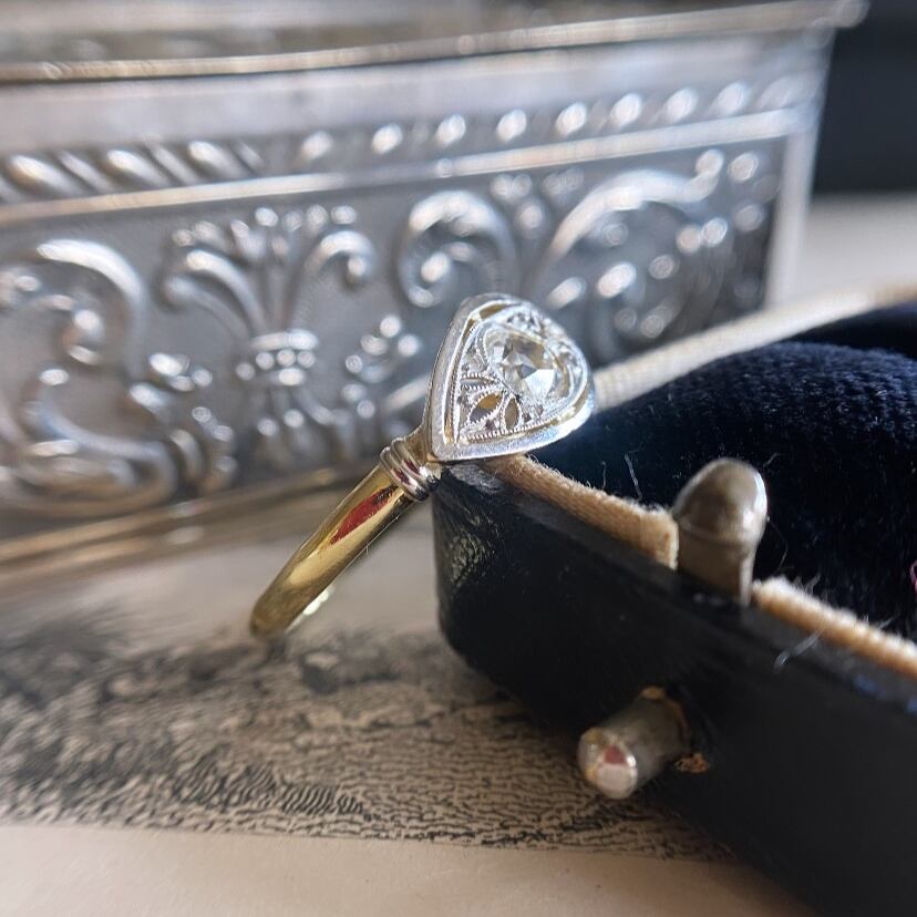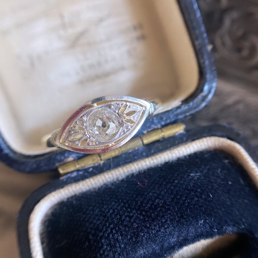 イーブルアイにも見えるオールドカットダイヤモンドの透し彫りリングのご紹介。