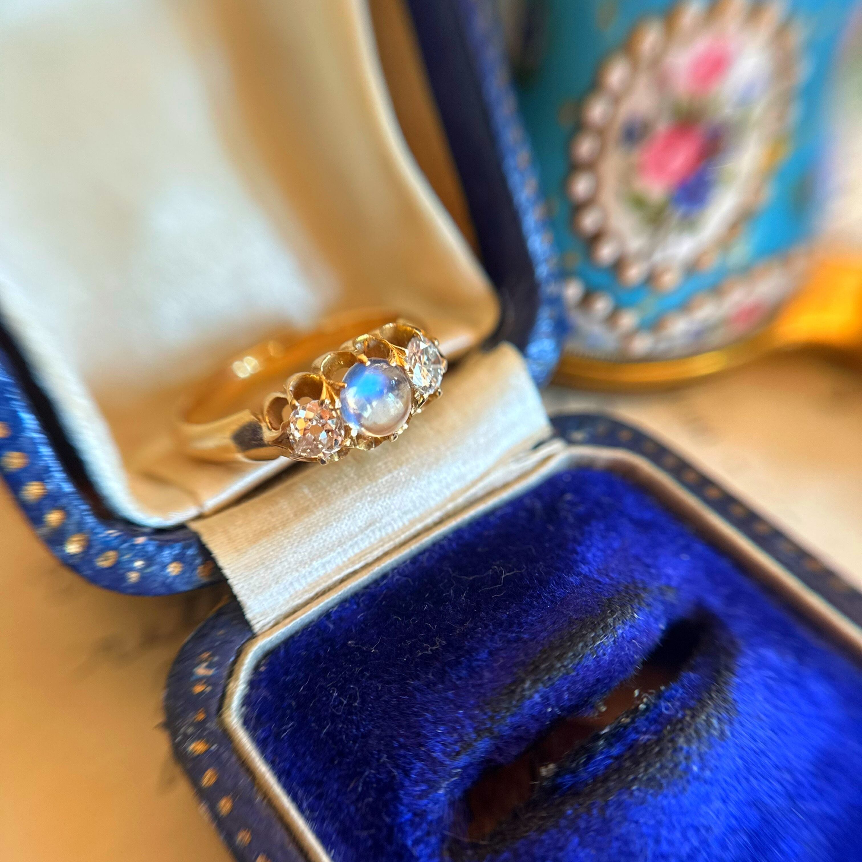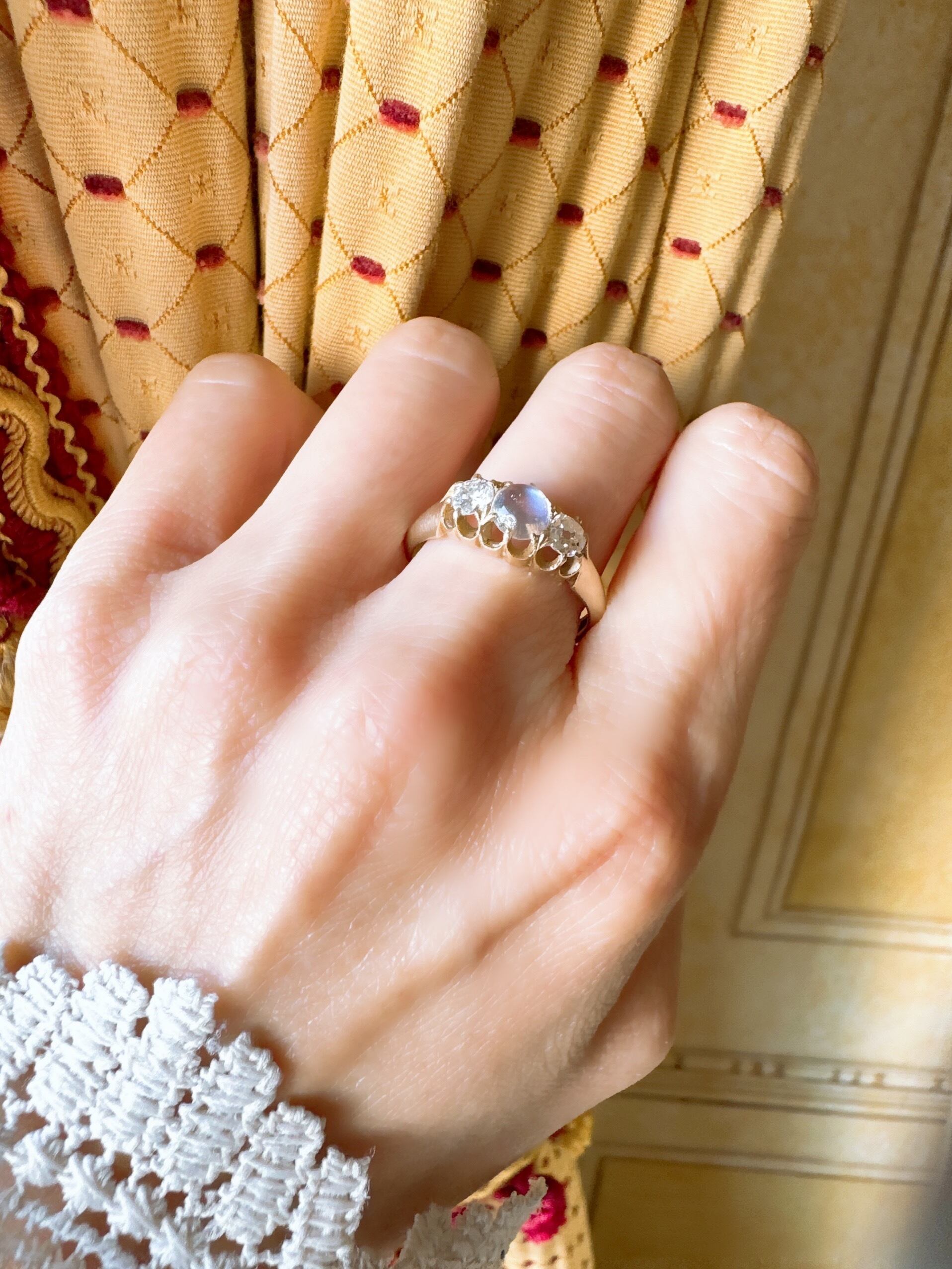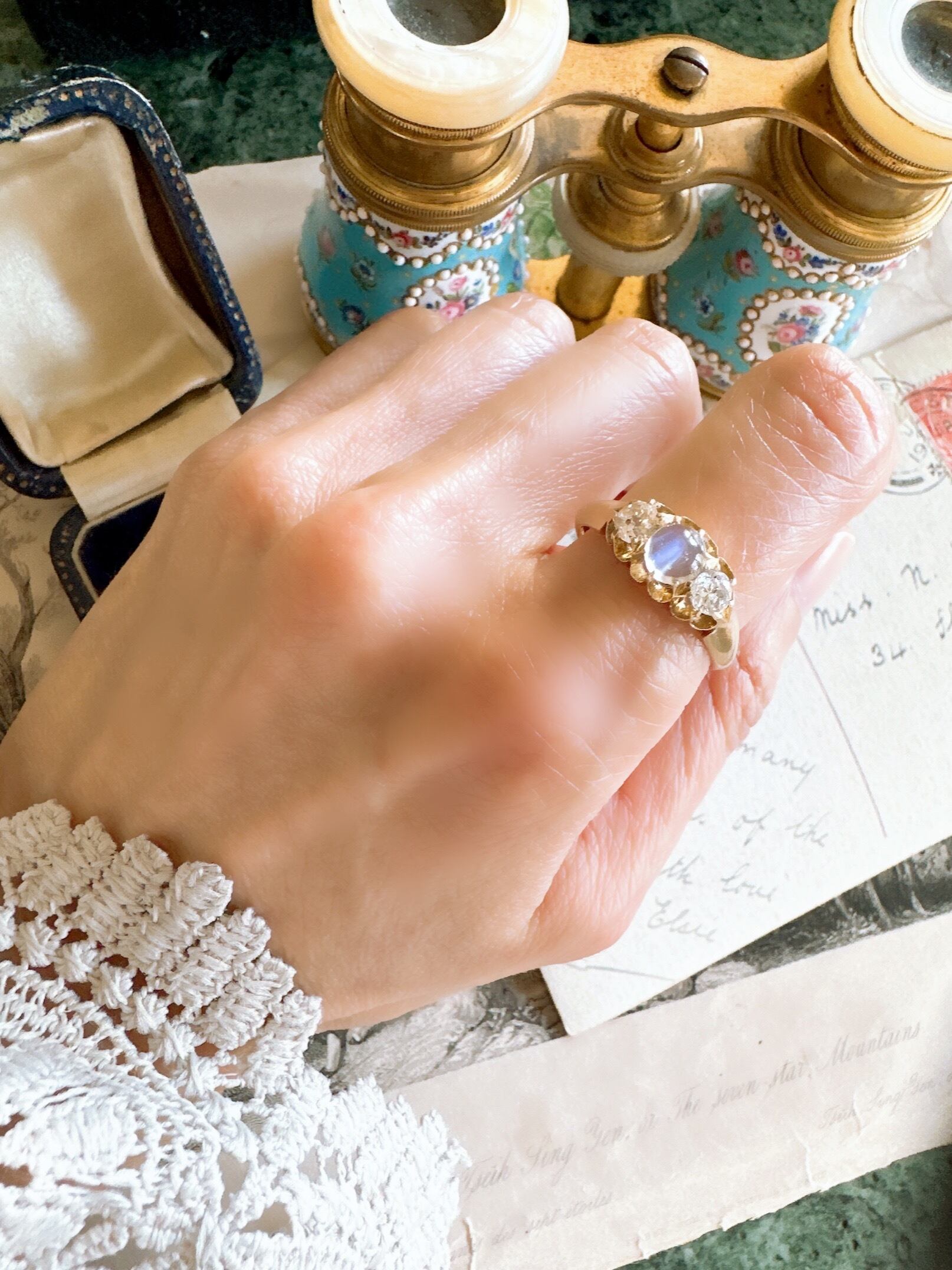 ムーンストーン&オールドカットダイヤモンド ヴィクトリアントリロジーリング