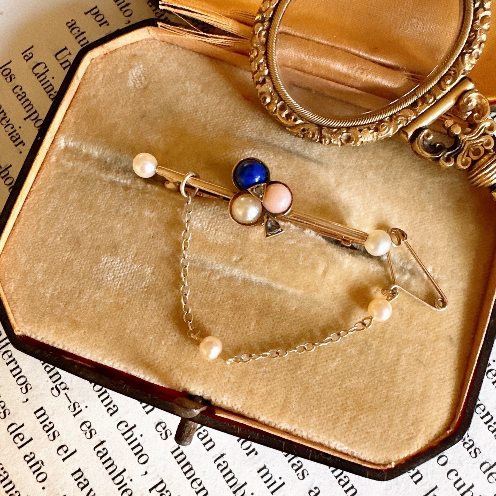 ※ 100年程前の古いお品になりますので、経年によるアンティーク品特有の微小なスレなどルーペで見てわかる程度にございますが石にカケがあったり、目立つキズがあったりという事はございません。時代を考えても全体的にみて状態はとても良好です。