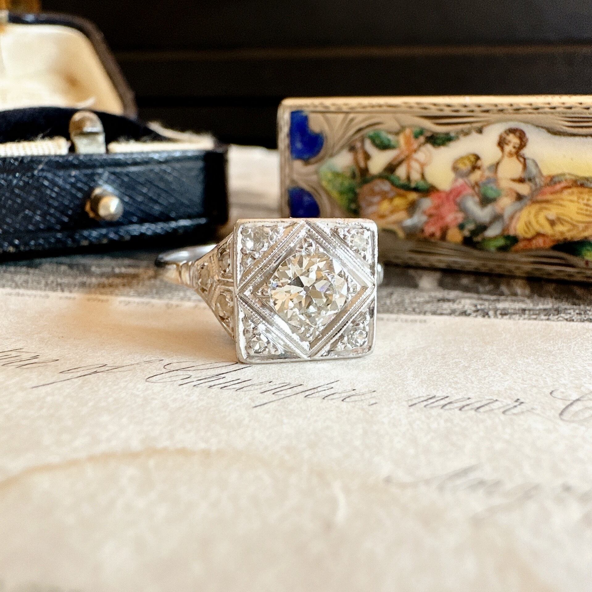 後期アールデコオールドヨーロピアンカットダイヤモンドリング