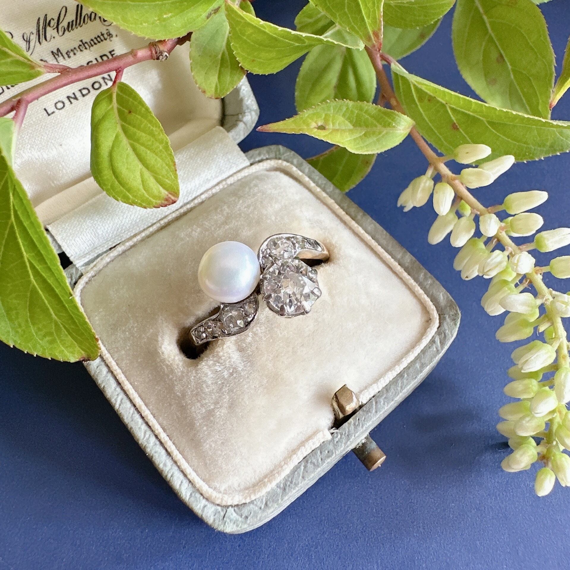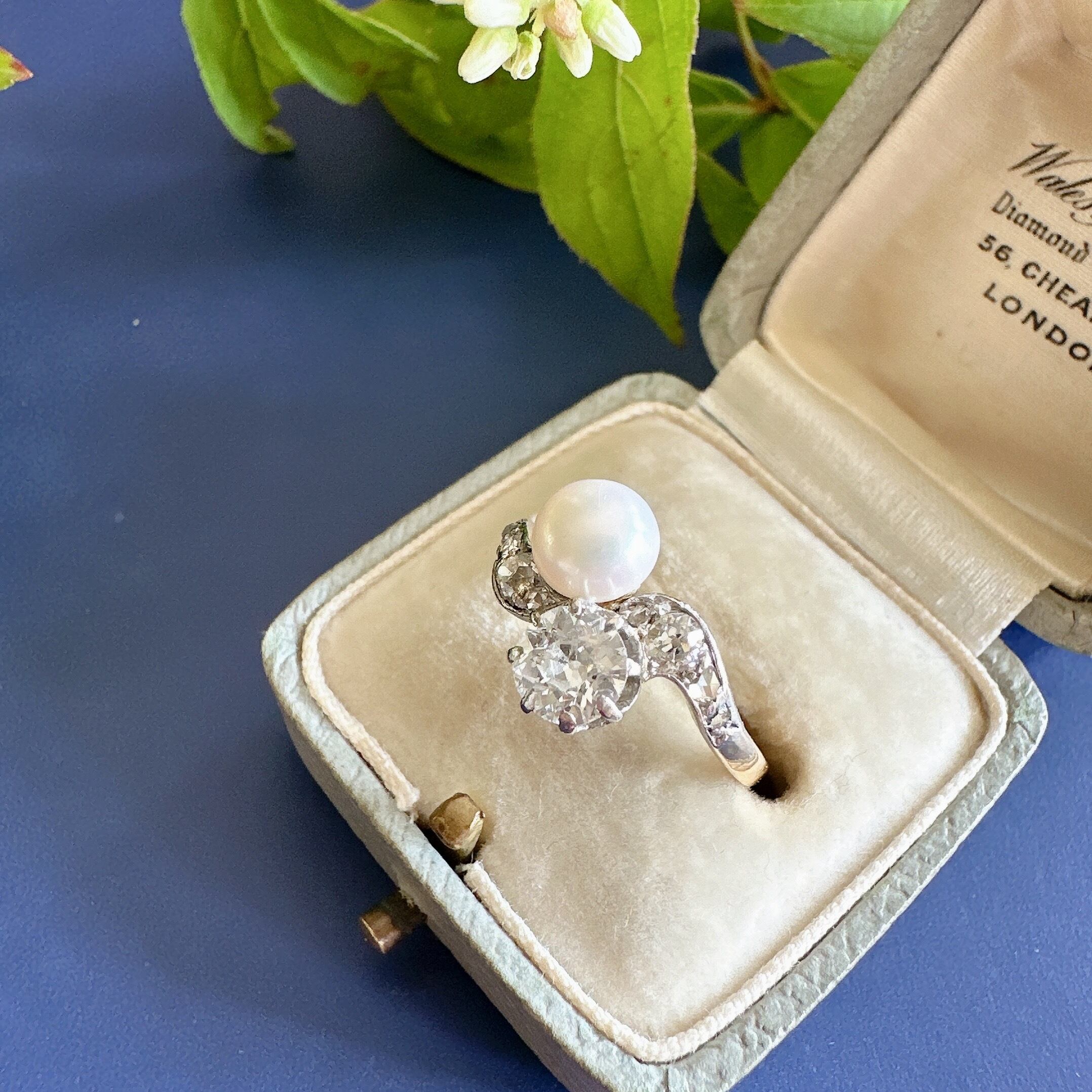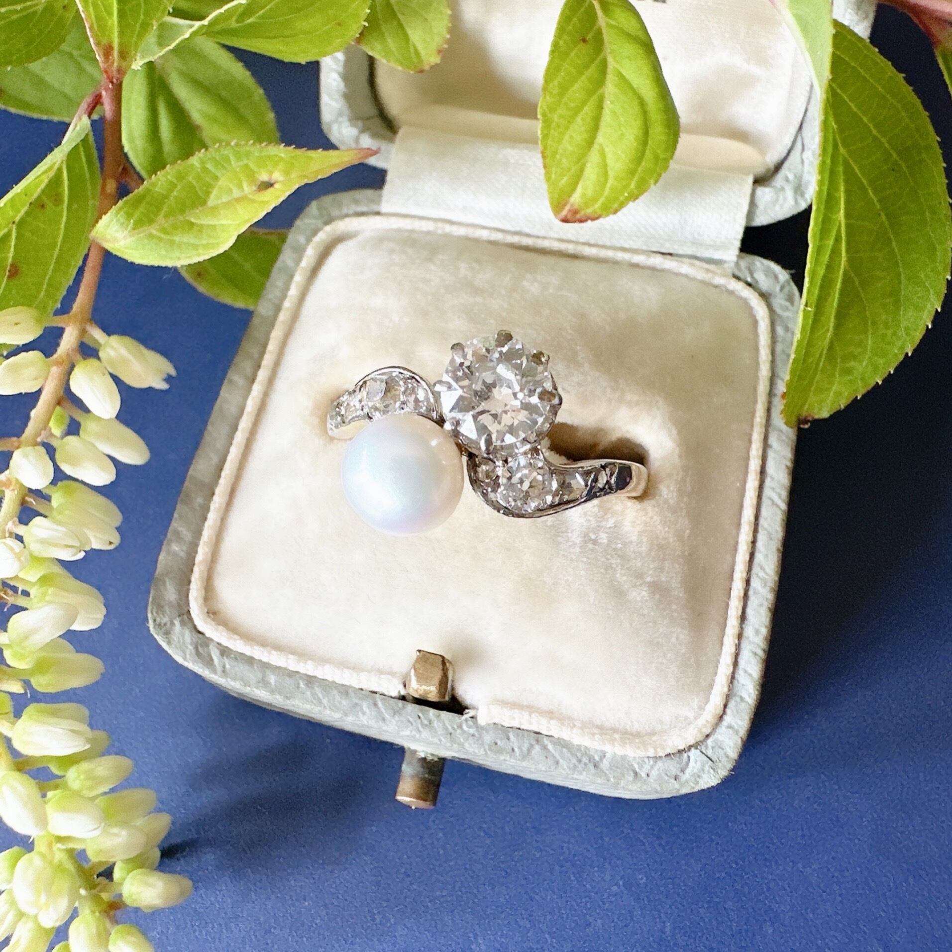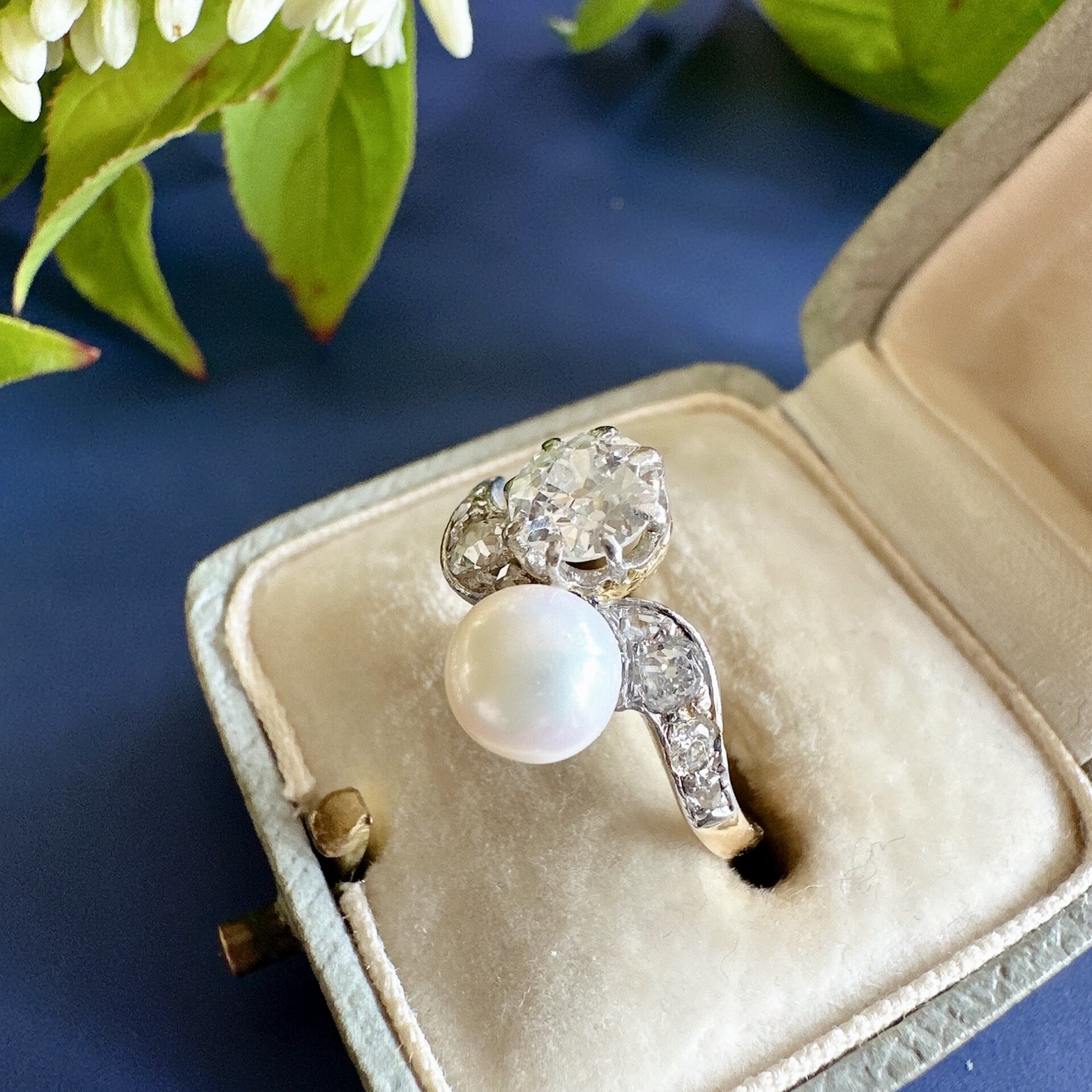 オールドヨーロピアンカットダイヤモンド&ナチュラルパール Toi et Moi リング