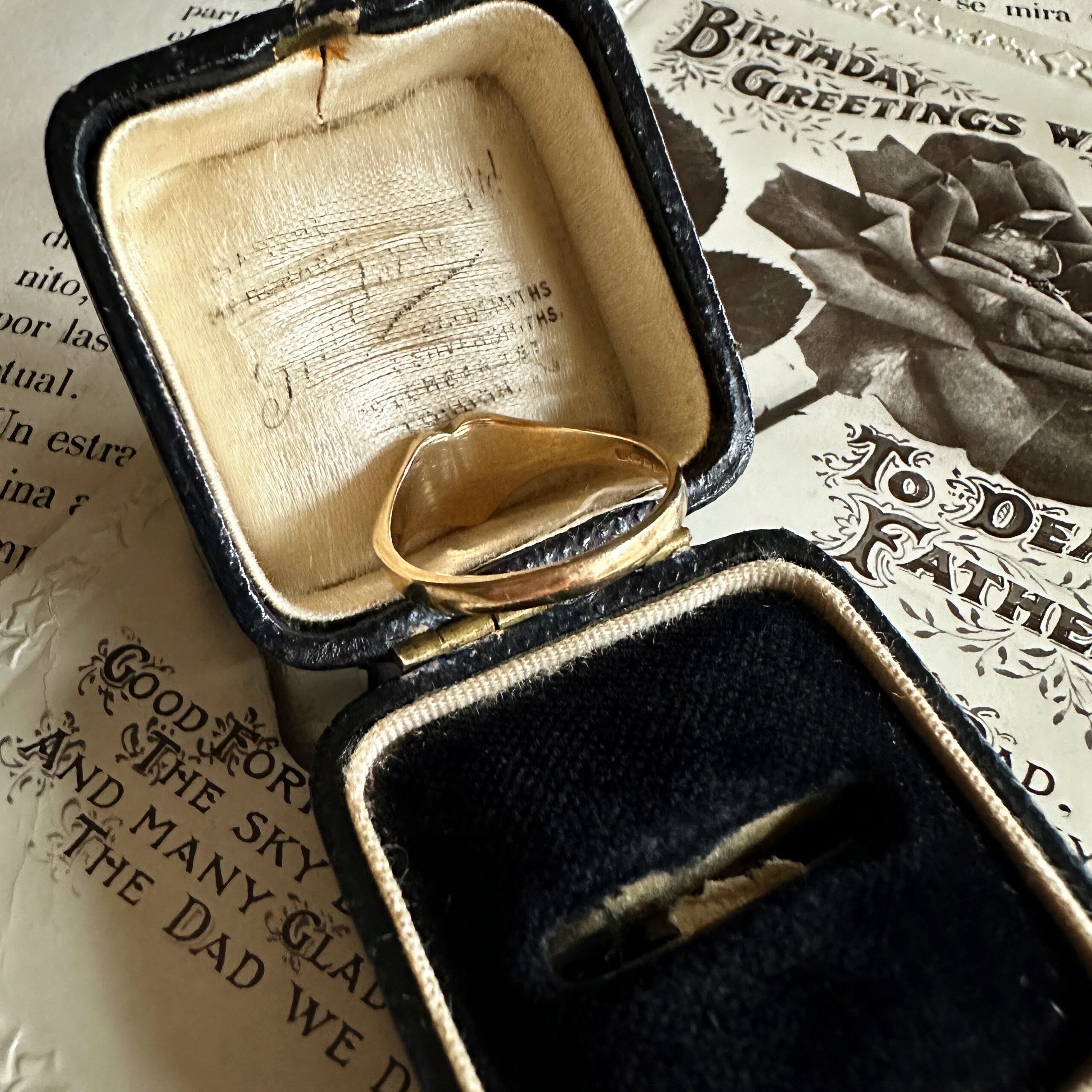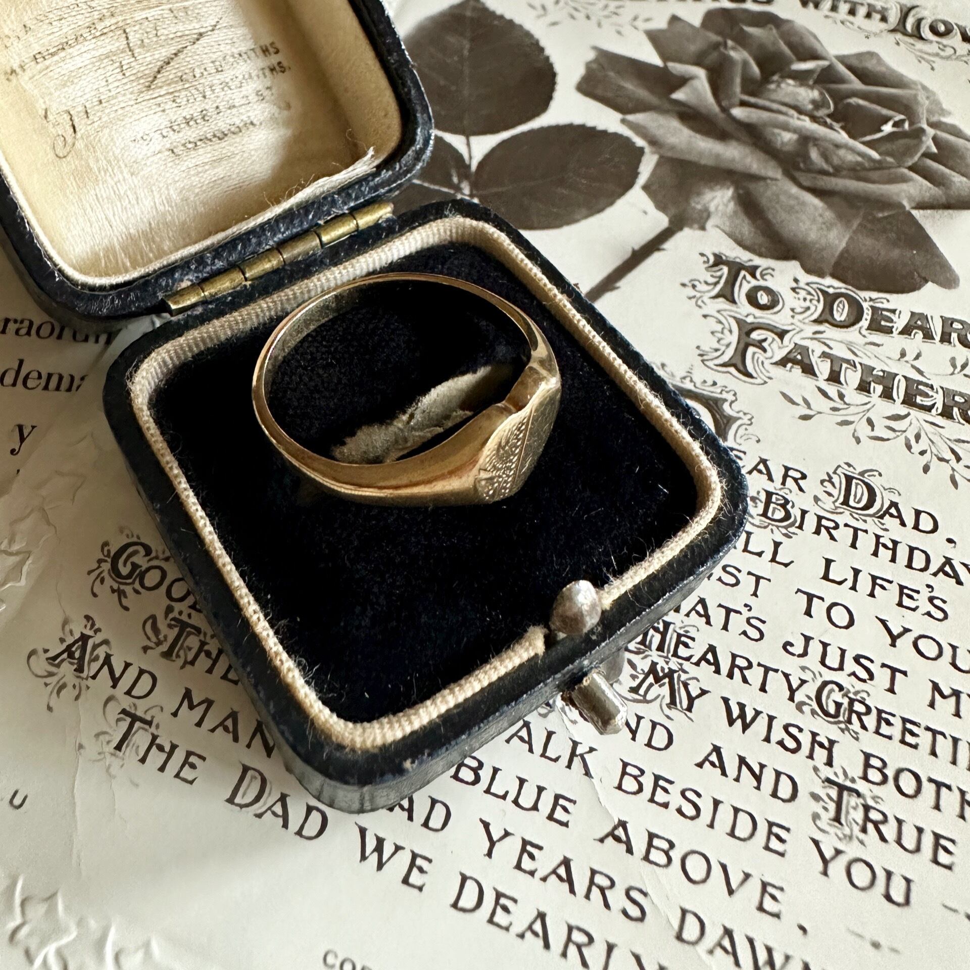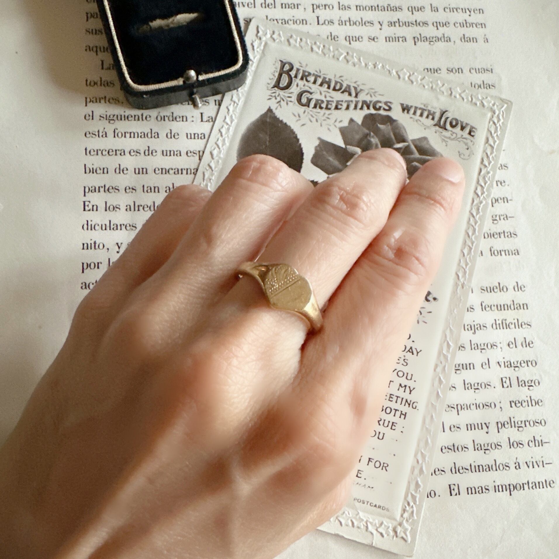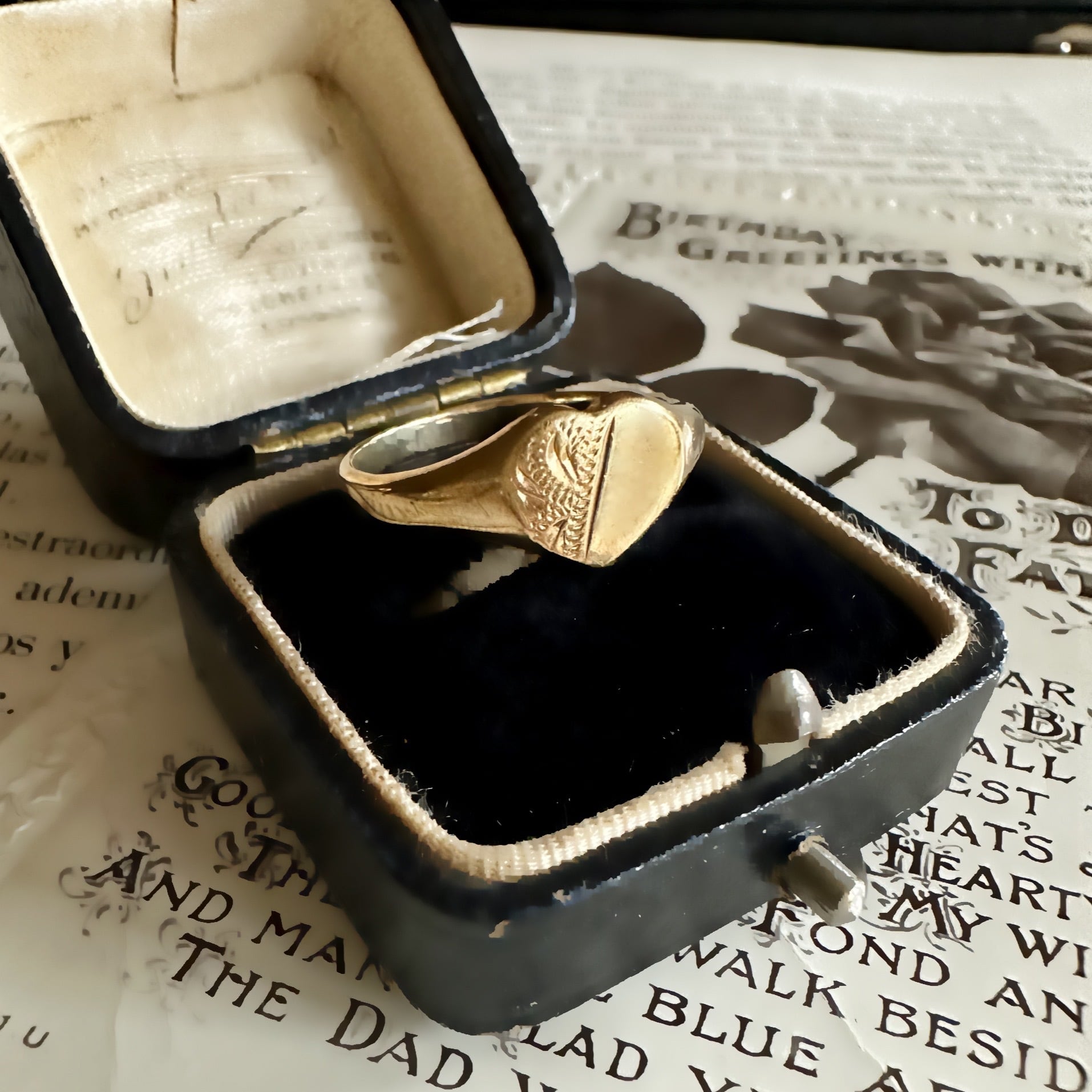ゴールドのハートのフェイス、流れるような彫りの美しさが魅力的なシグネットリング。