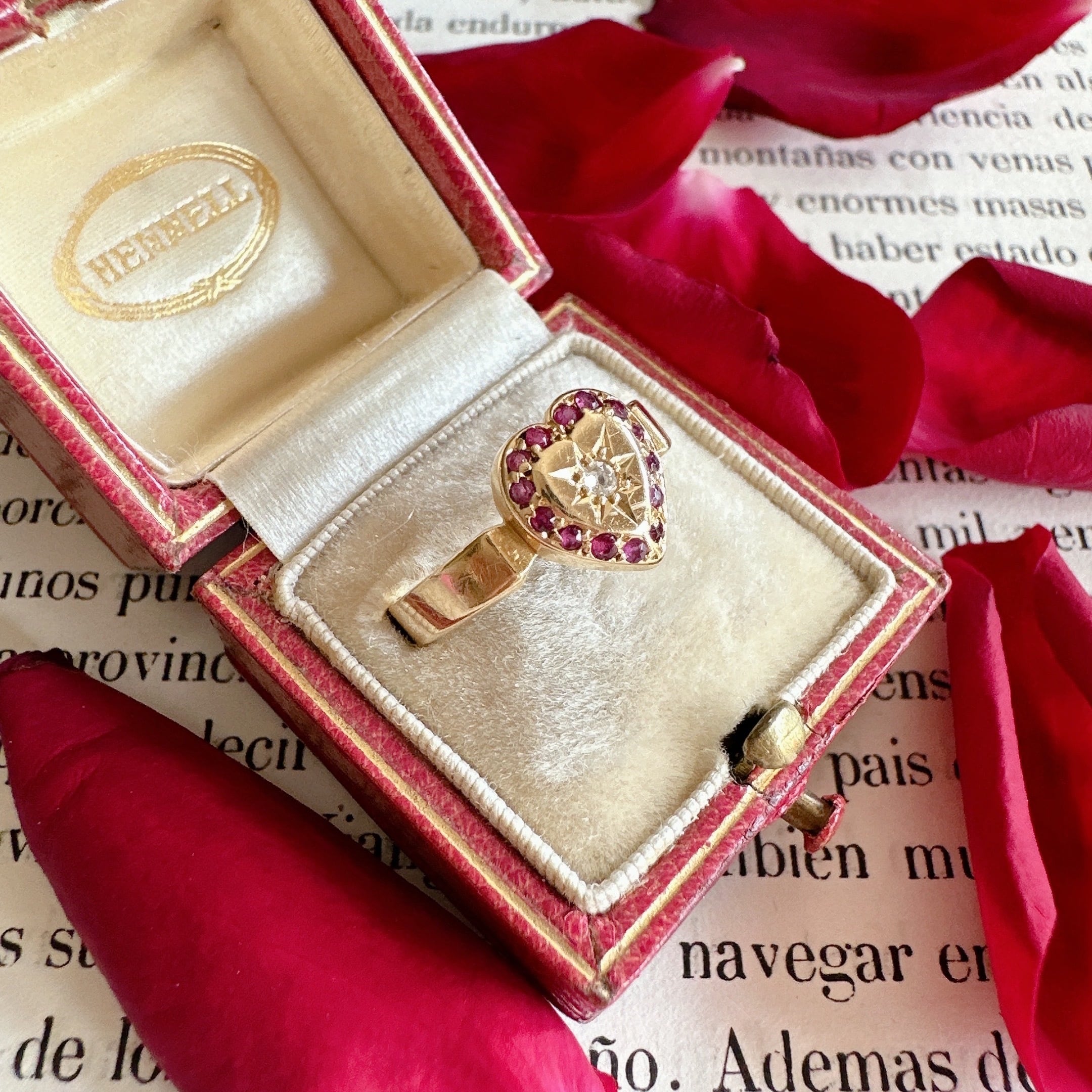 ルビー&ダイヤモンド ハートシェープエドワーディアンリング