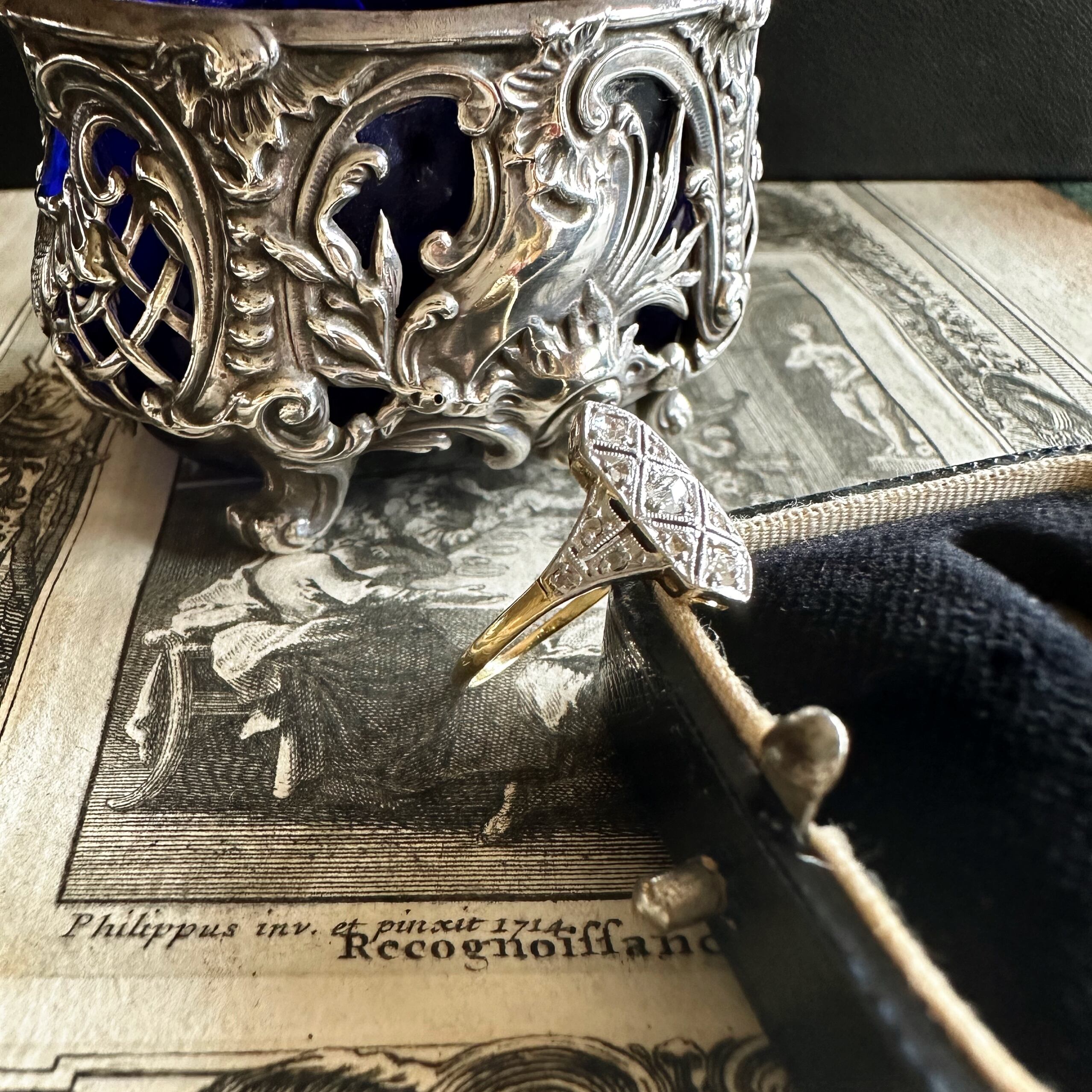 これにより、たとえ小さくともリングは独特の芸術的な魅力を放ち、アールデコの特徴的なデザイン要素を取り入れ、ベルエポックの優雅さとアールデコのクールさを見事に融合させています。ベルエポックの時代には、ロマンチックな雰囲気と洗練されたスタイルが主流で、一方アールデコは幾何学的なパターンやシンメトリーを特徴とし、モダンで前衛的な要素を取り入れていました。