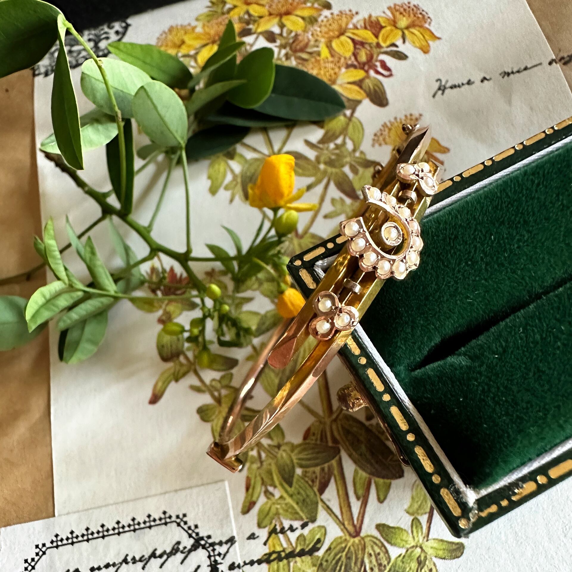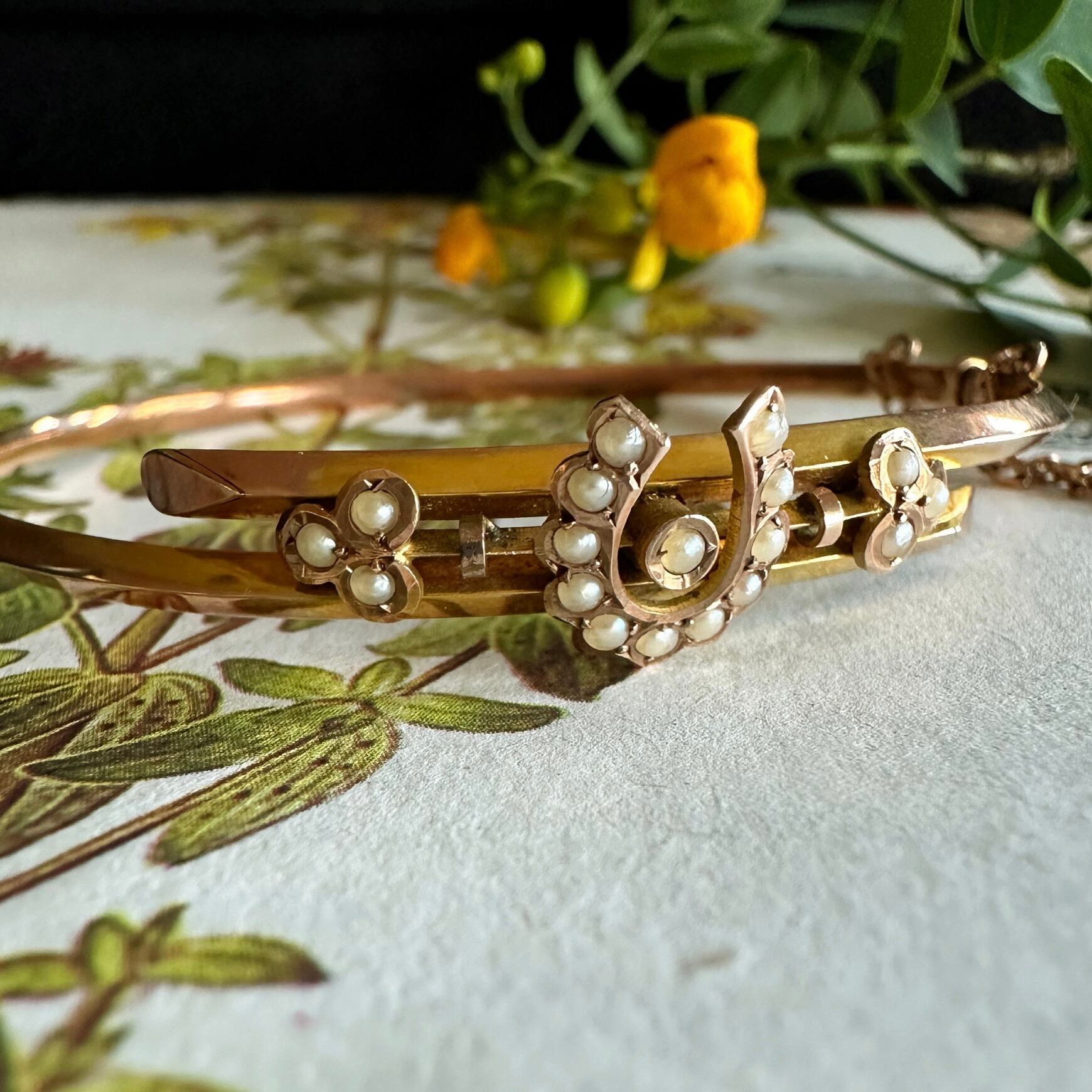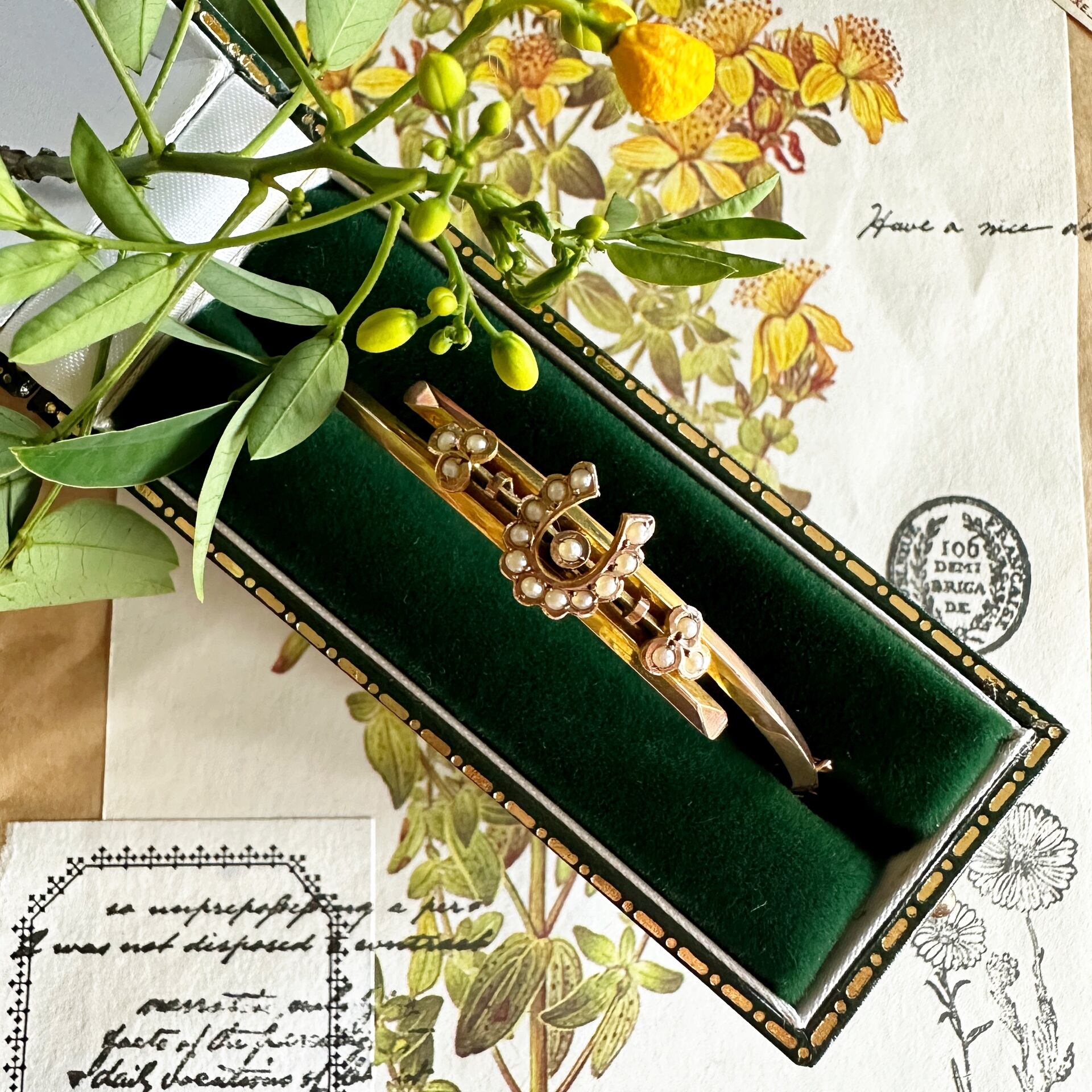 ホースシューやシャムロックを飾るハーフパールは、優美さと上品さを引き立て、ヴィクトリアン時代の宝飾品の魅力を一層際立たせていますね。