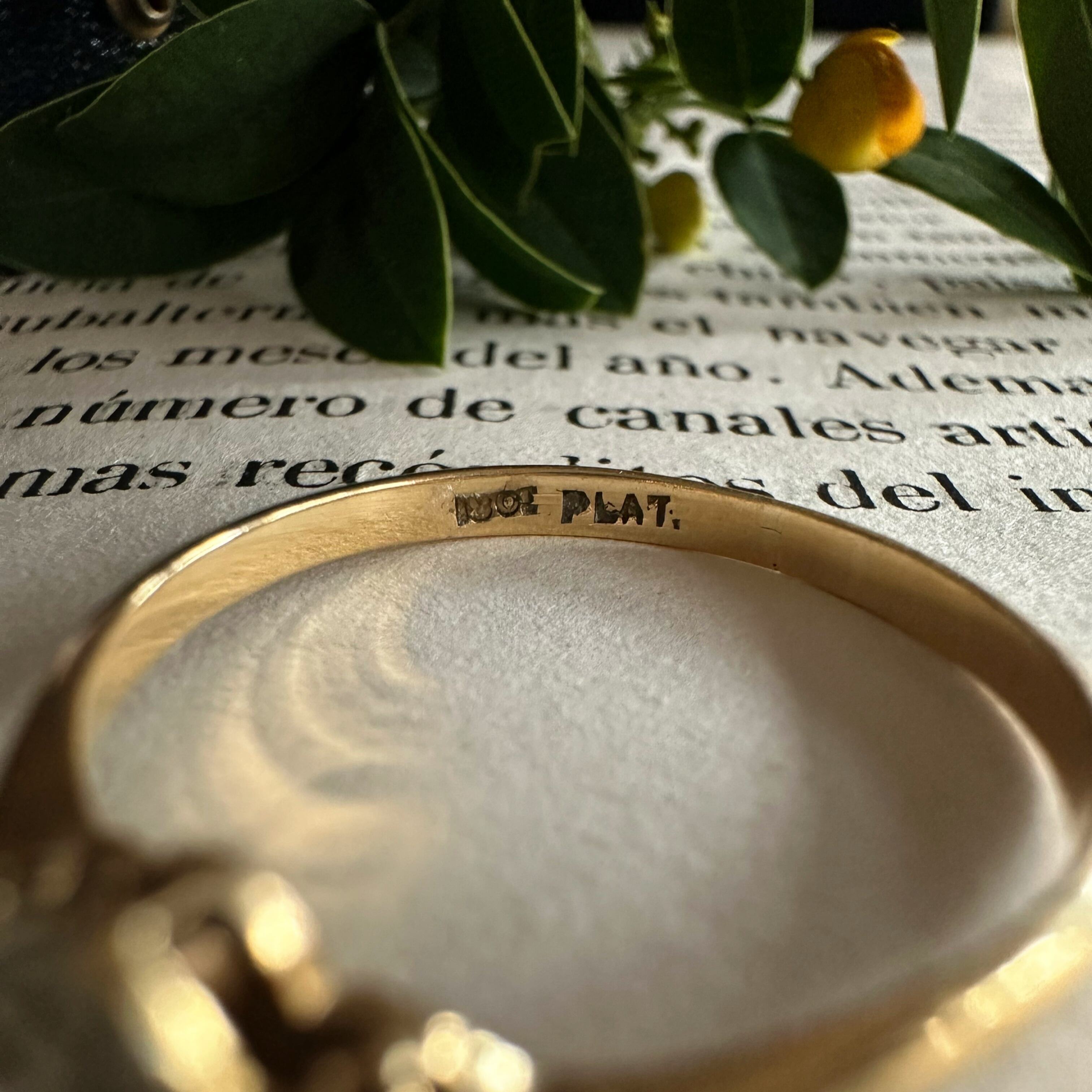 ※ 100年程前の古いお品になりますので、経年によるアンティーク品特有の微小なスレなどルーペで見てわかる程度にございます。ダイヤモンドは内包物はありますが、瑞々しい輝きを楽しませてくれます。カケはございません。ルーペでしっかり確認済みです。内包物をカケと勘違いをしてしまう方もいらっしゃいますが、内包物とカケは違いますのでご承知おき頂ければと思います。