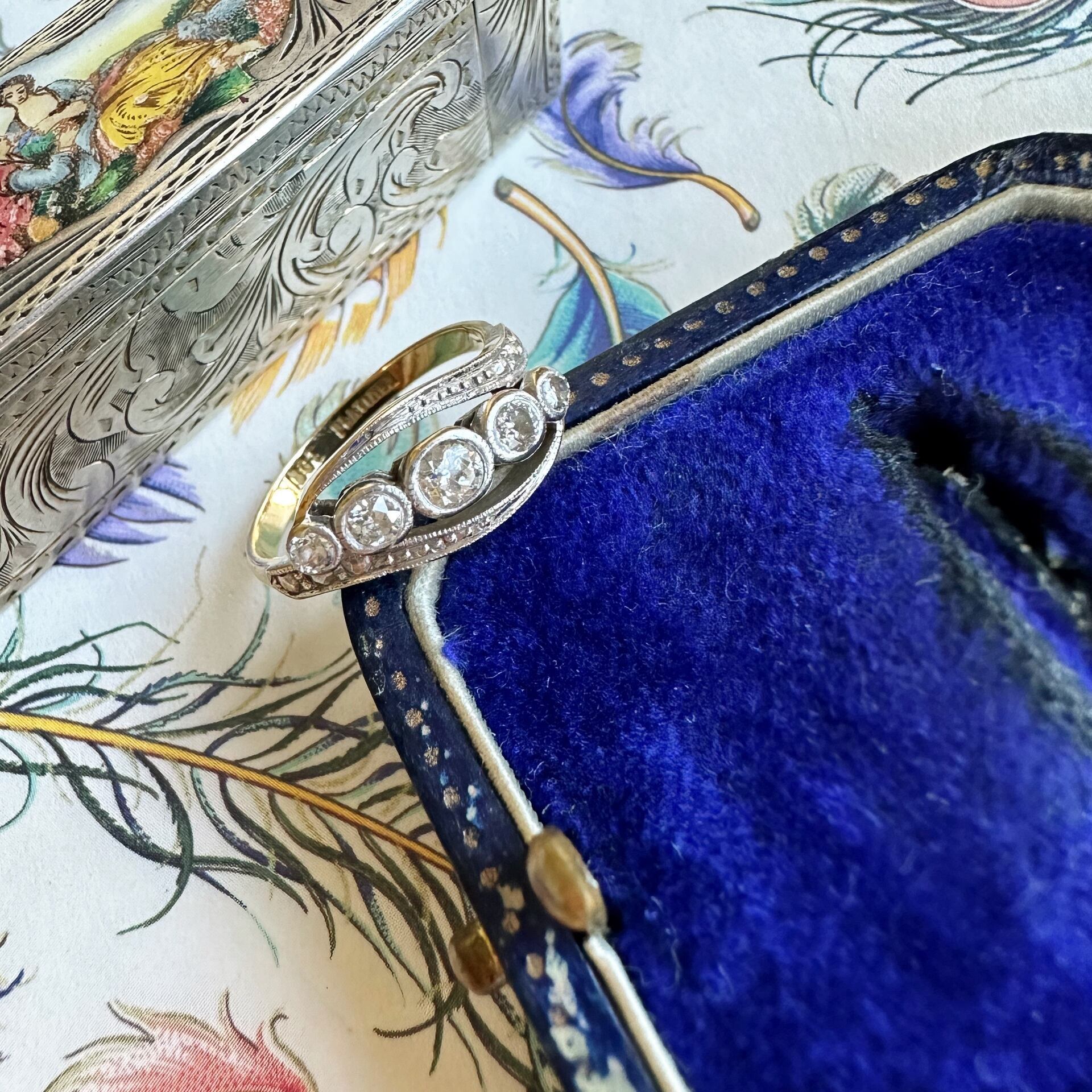 20世紀初頭に誕生したこちらのクロスオーバーファイブストーンリングをご紹介いたします。