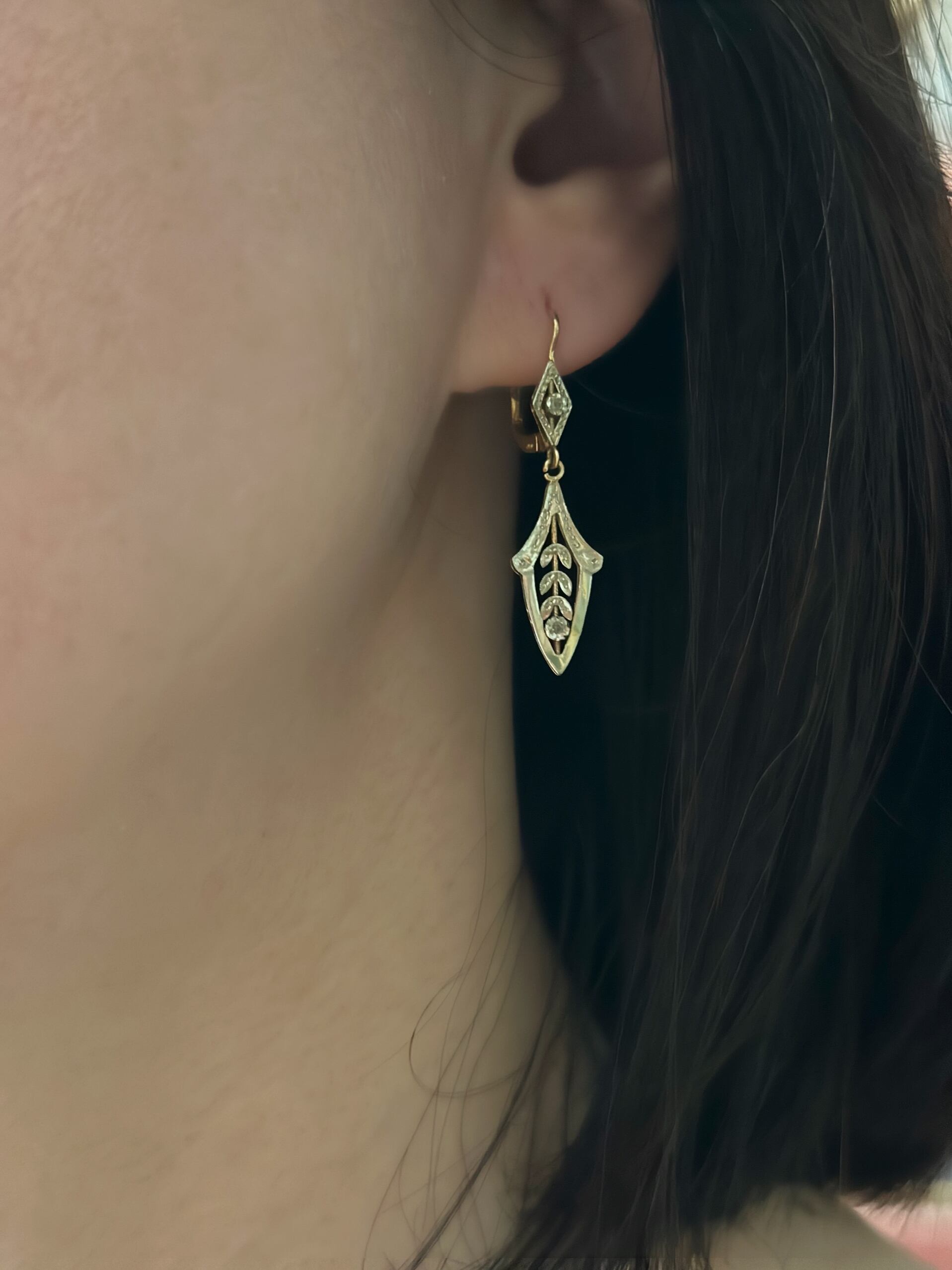 ベルエポックの特徴である、エレガントかつ洗練されたデザインがこのピアスに息づいており、一方、ネオクラシカルの要素は、幾何学的な対称性と調和を示し、対称性とバランスを非常に重視します。これは古代ギリシャの建築や美術の特徴でもあり、ピアスにおいても左右対称のデザインが用いられていますね。