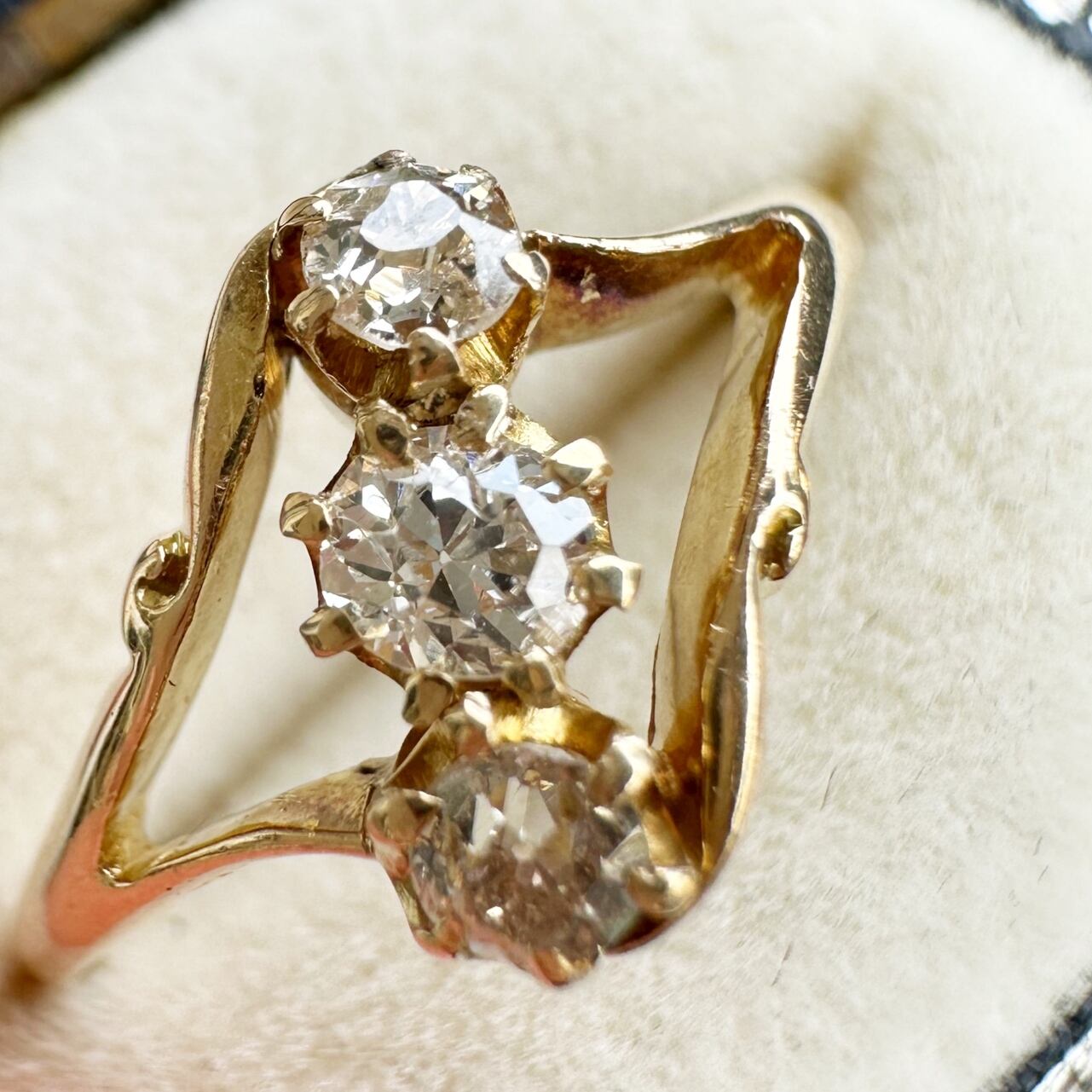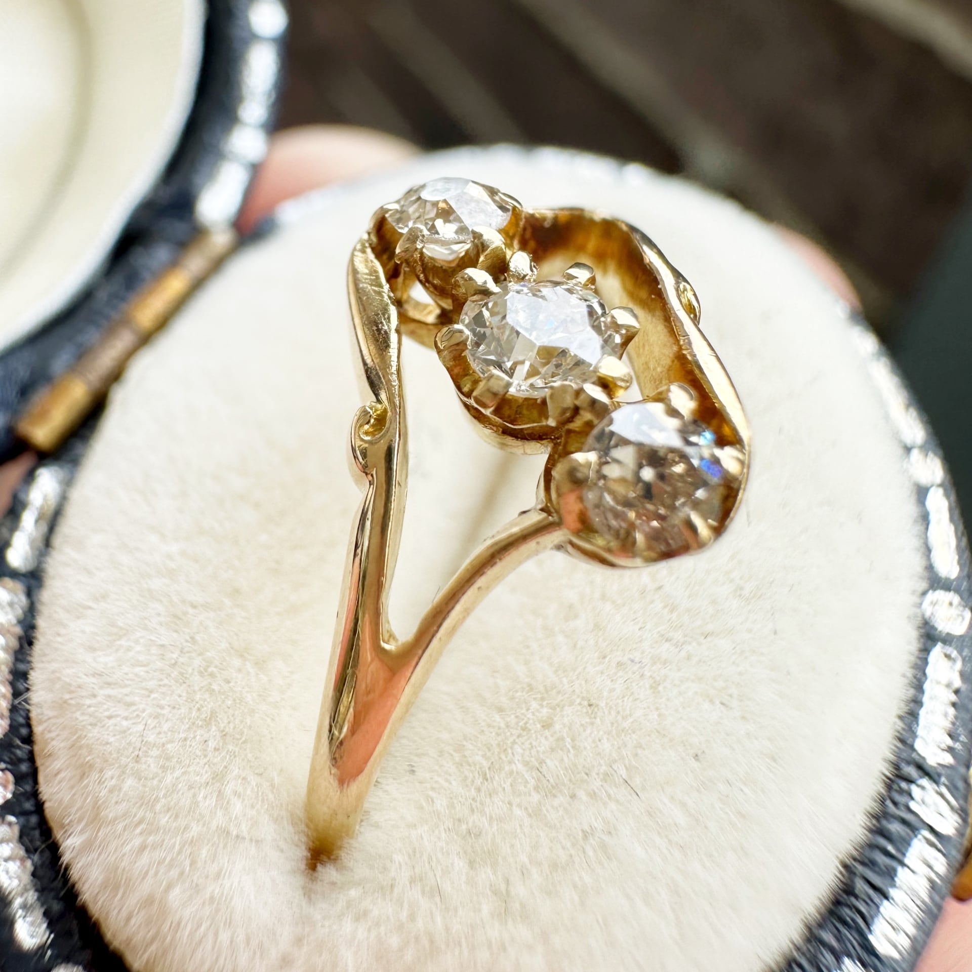 オールドヨーロピアンカットダイヤモンドトリロジーアールヌーヴォーリング