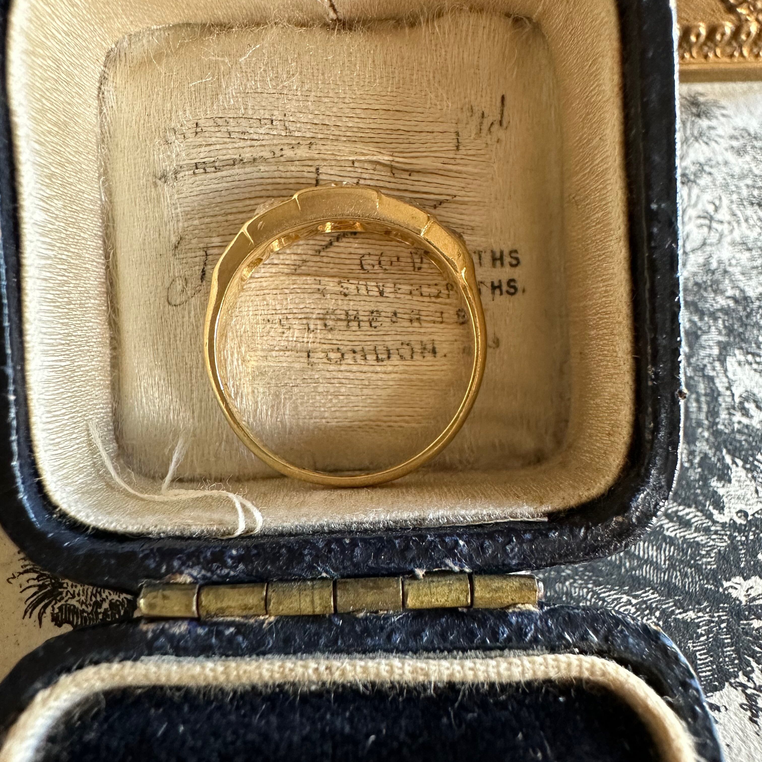 このヴィクトリアンファイブストーンリングは、19世紀末のヴィクトリア朝時代の精緻さと、永遠の愛とロマンスの物語を組み合わせたひと品なのです。