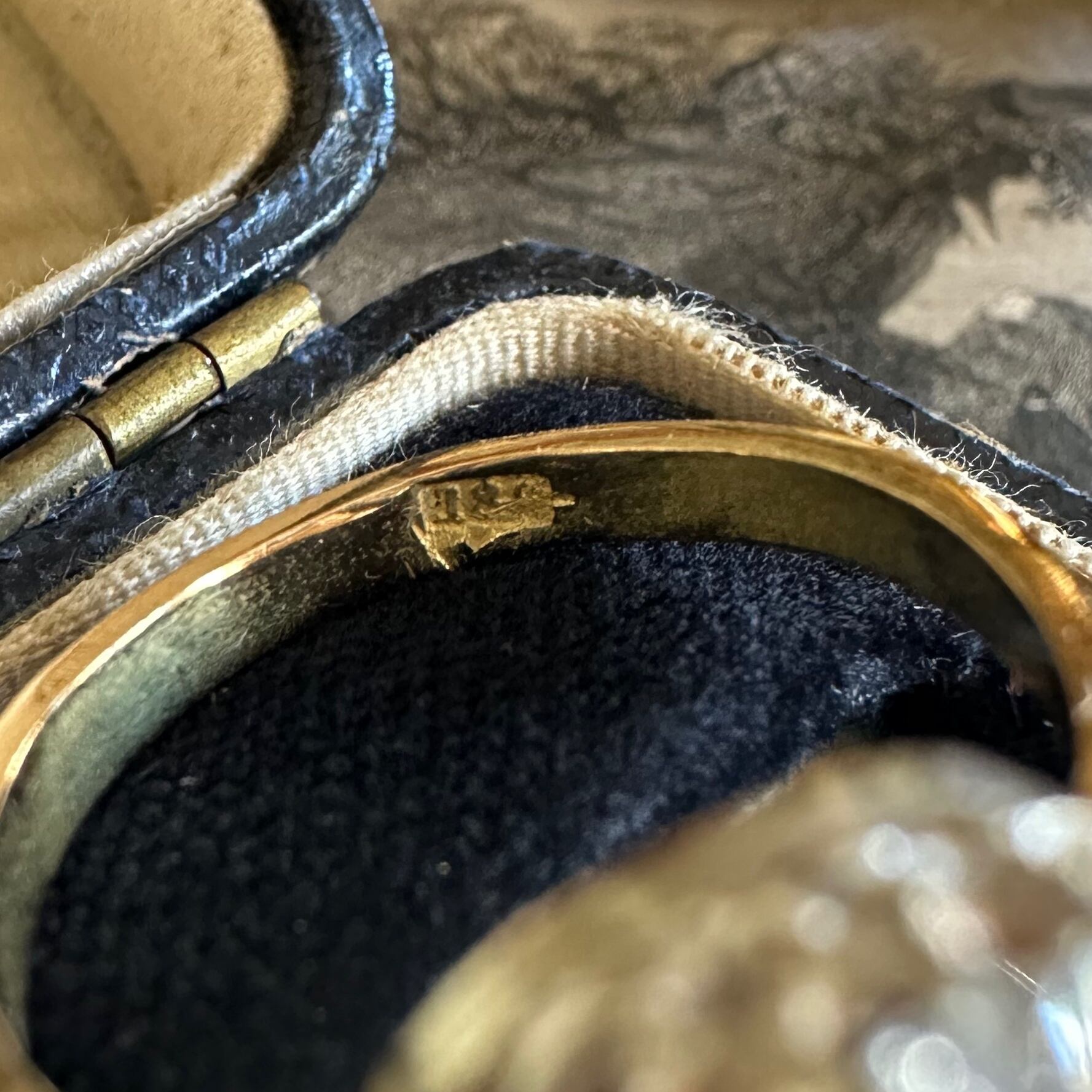 中心のオールドマインカットダイヤモンドのセット方法もまるでジョージアンの頃を回想させるもので、いつの時代も過去に憧れをいだいたり、過去を重んじる精神があったのだなぁ、と感心してしまいます。