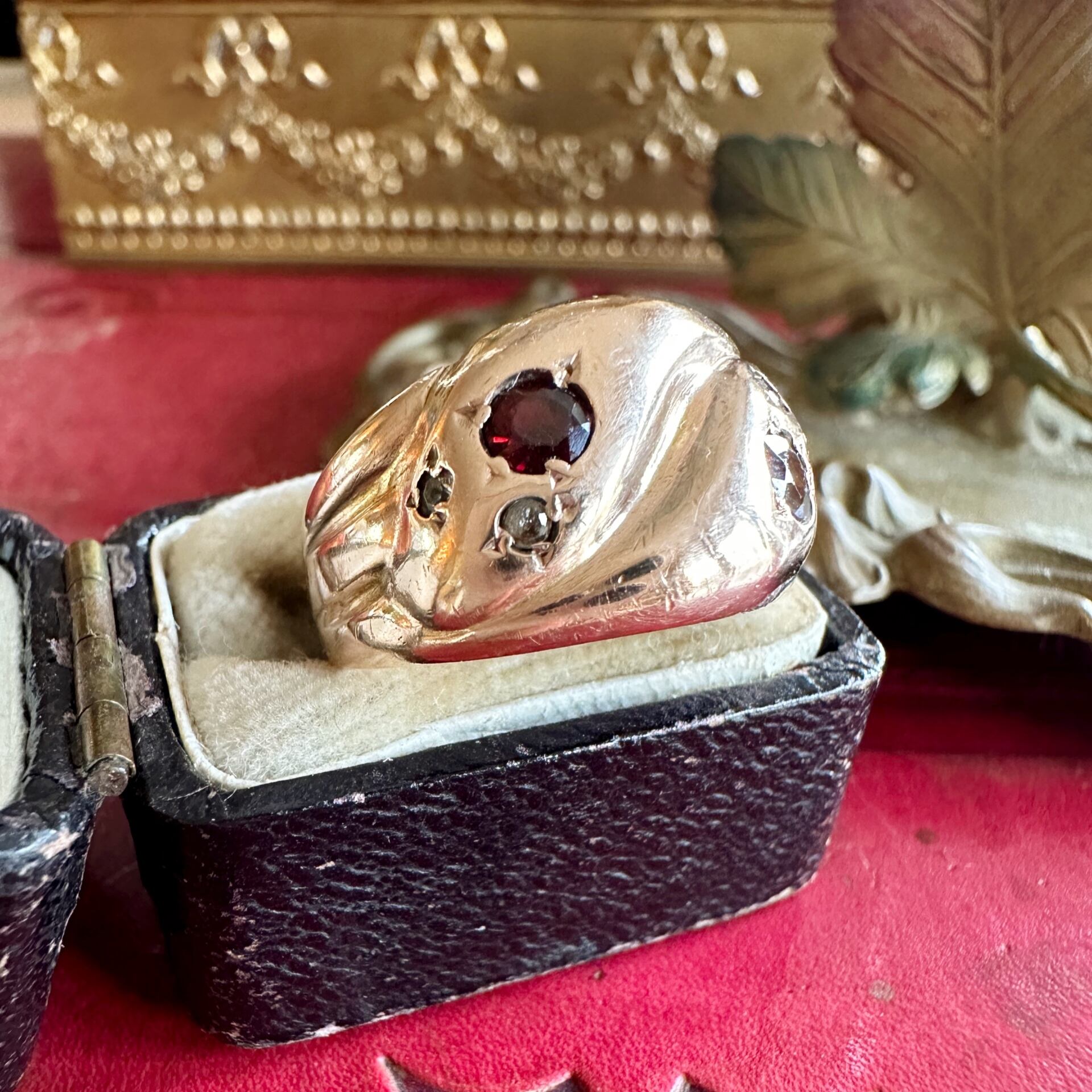 ※ 100年以上前の古いお品になりますので、経年によるアンティーク品特有の微小なスレなどルーペで見てわかる程度にございます。ダイヤモンドもガーネットも内包物はありますが、肉眼でわかるような目立つキズやカケはございません。時代を考えても全体的にみて状態はとても良好です。