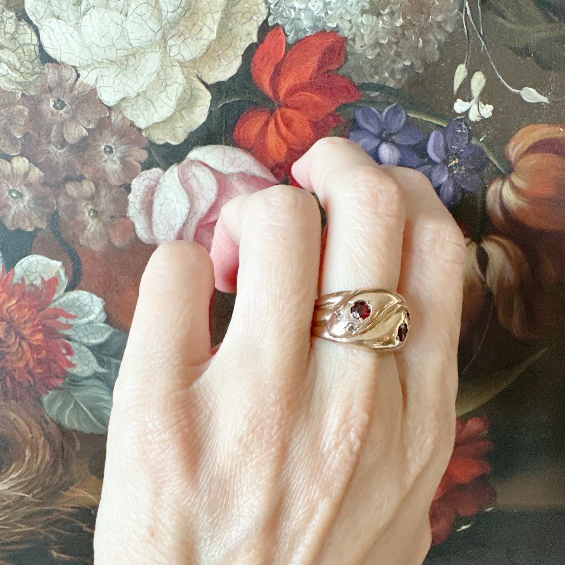 ガーネット&ダイヤモンドヴィクトリアンスネイクリング