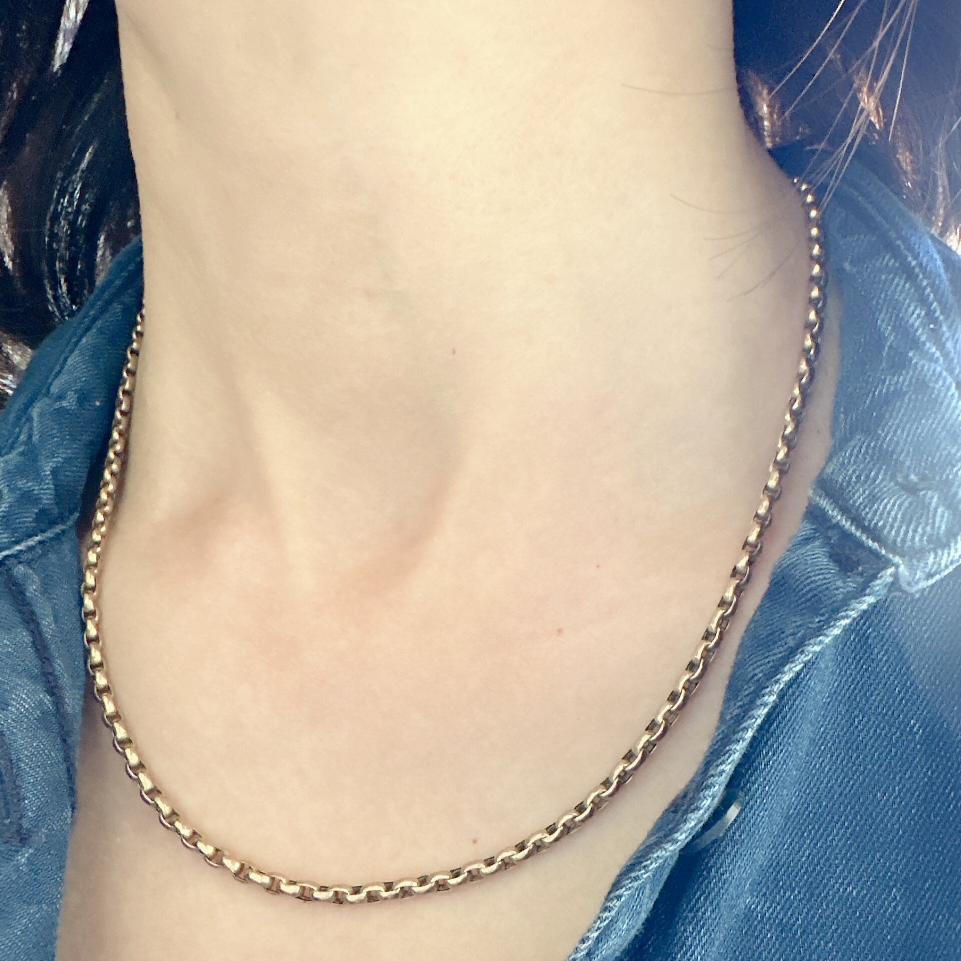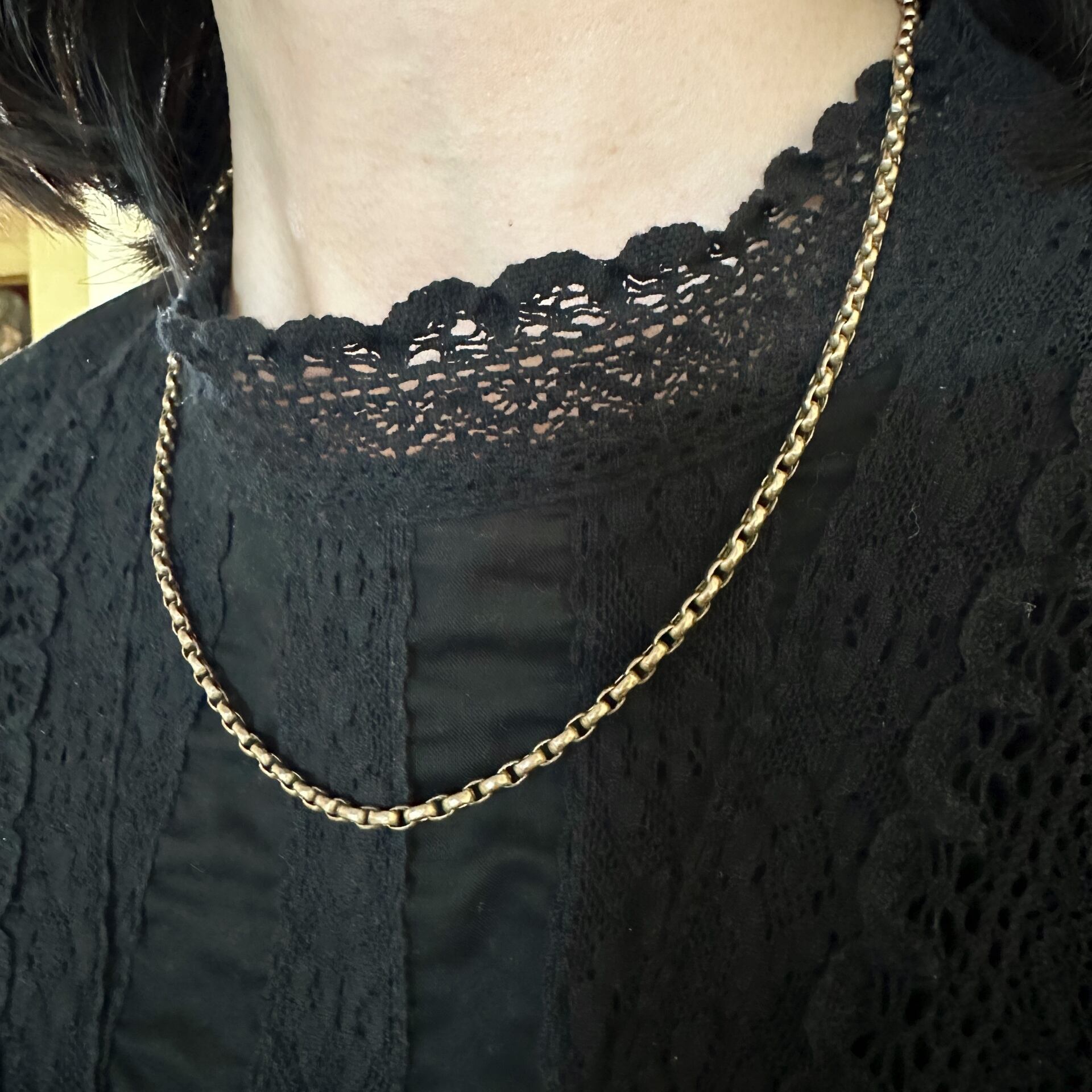 9金のヴィクトリアン・ベルチャーリンクチェーン、その一つ一つのリンクが繊細な職人の手で丁寧に作り上げられ、そのデザインは絶妙なバランスを保ち、シンプルさと使い勝手の良さに優れた、ヘビロテ間違えなしのひと品。