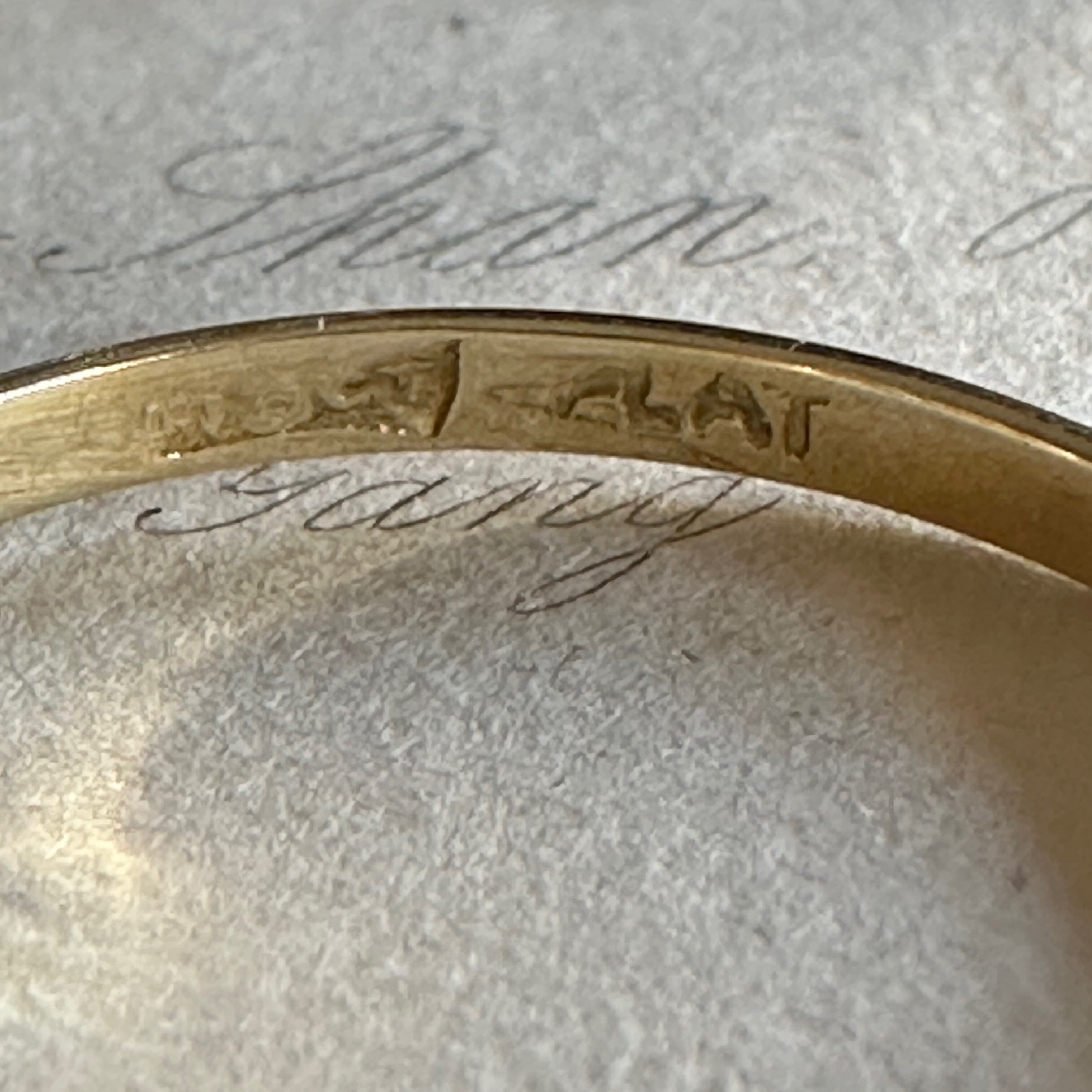 かつて、誰かが大切な人に贈り物として選び、愛情を込めて手渡したであろうリング、その小さなサイズながらも、煌めく小さな輝きに優しさを感じます。