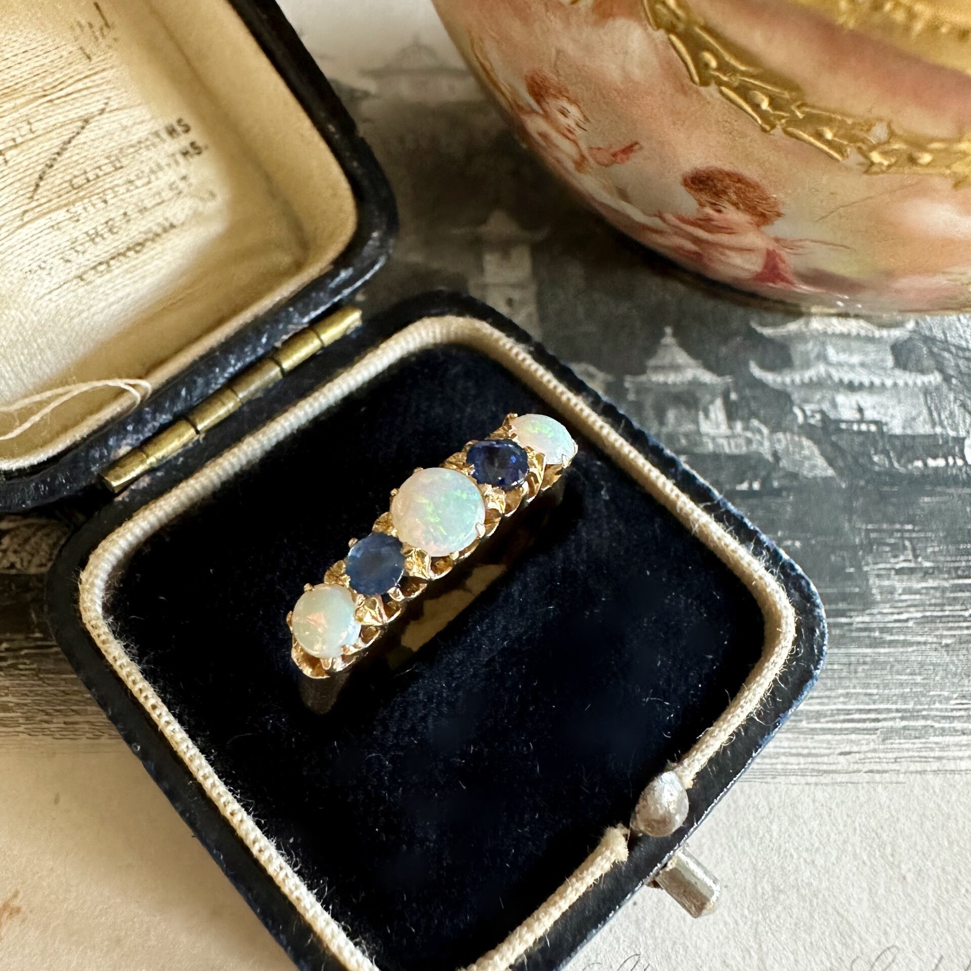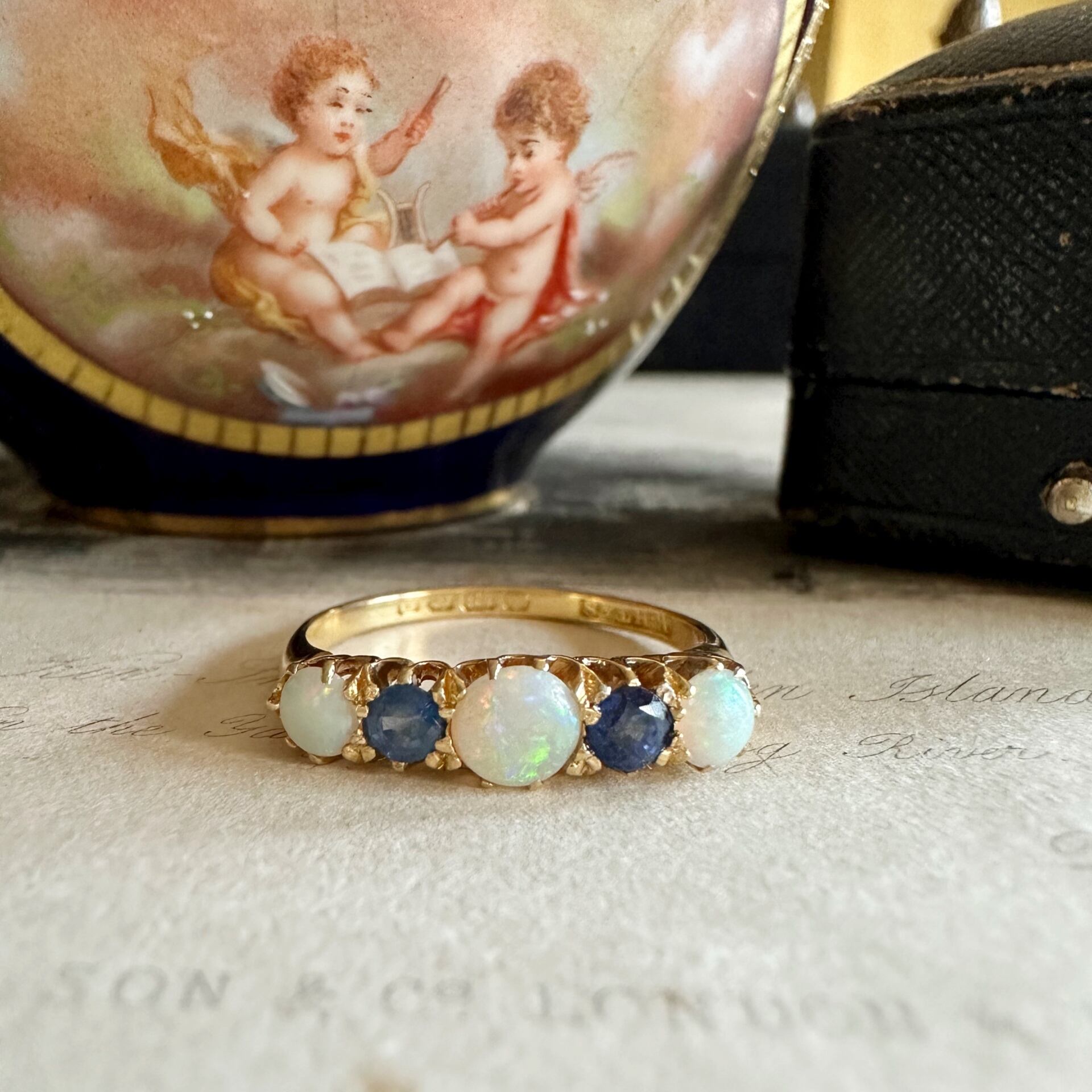 エドワーディアン オパール&サファイアファイブストーンリング