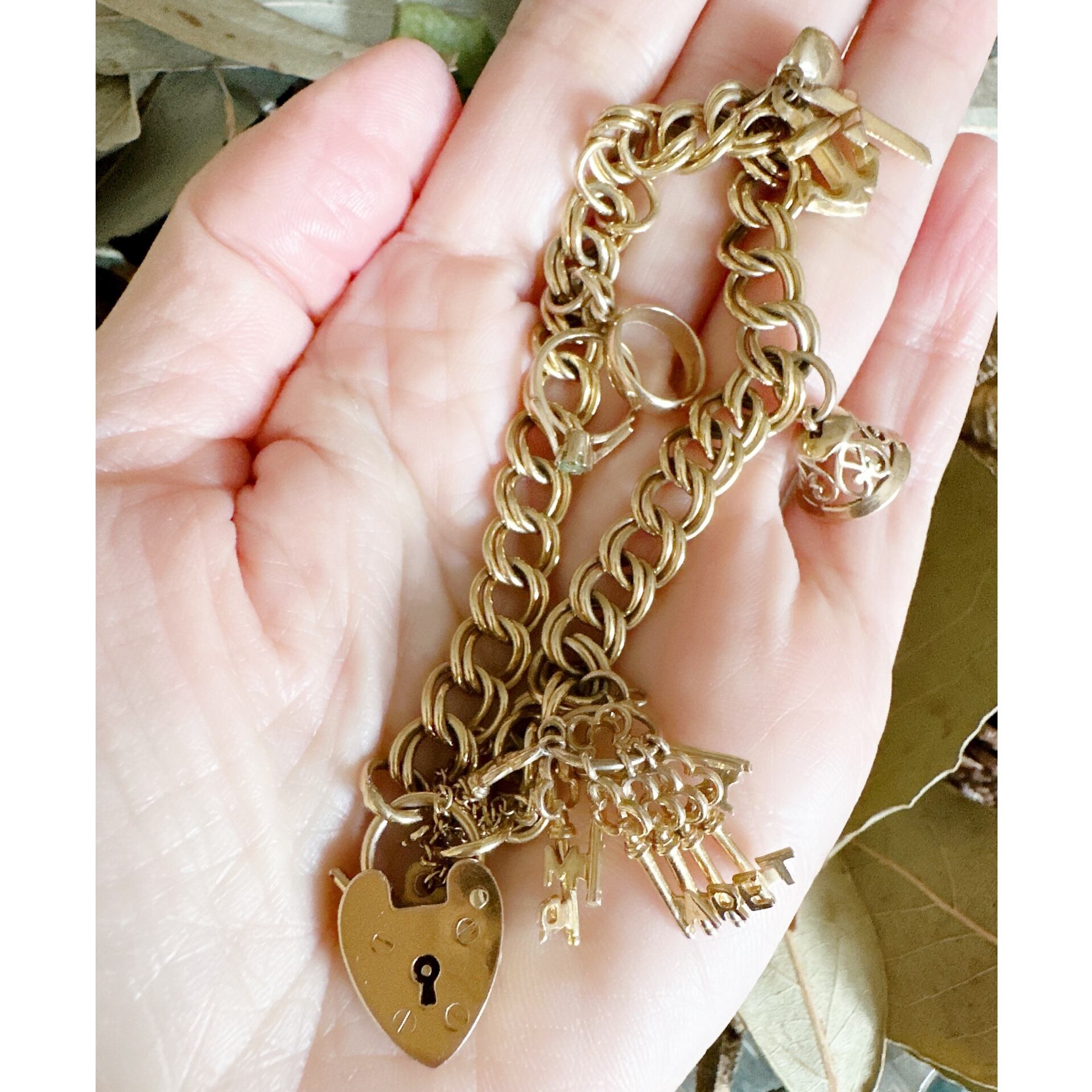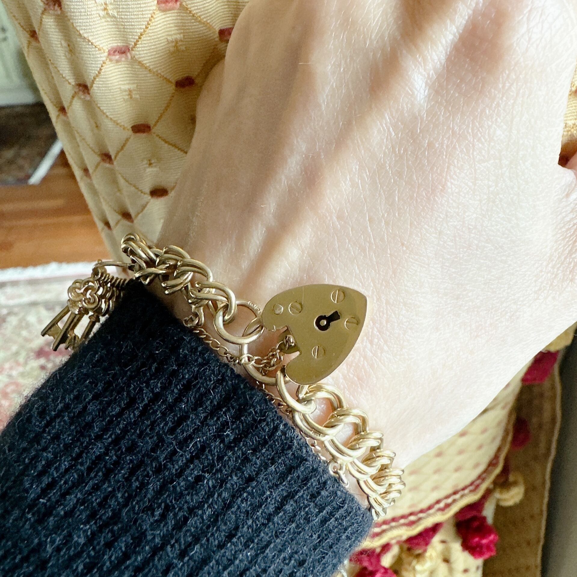 チャーム付きハートのパドロックダブルリンクアンティークチェーンブレスレット