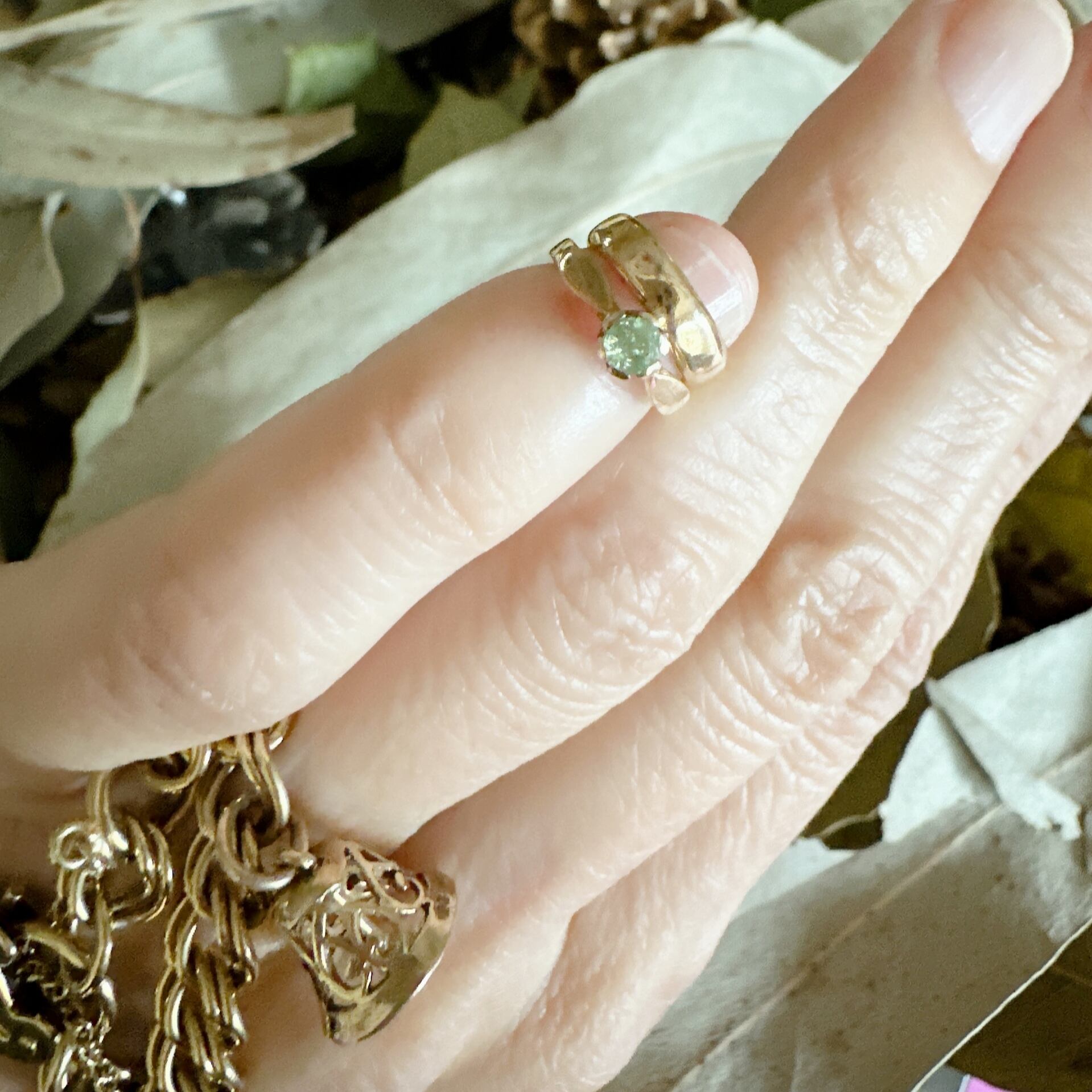 そして最初のチャーム、マリッジリングとエンゲージリングのセット、そこには柔らかな若草色のグリーンガーネットがセットされ、マリッジリングに相応しい愛と誠実さを象徴しています。この石は心を温かくし、絆を深める力を持っていると言われるので、あえてグリーンガーネットをセットしたのかもしれないですね。結びつきと永遠の愛を象徴したこちらのチャーム、小さなサイズがなんとも愛らしく、ブレスレット全体に幸福な輝きを添えてくれているようです。