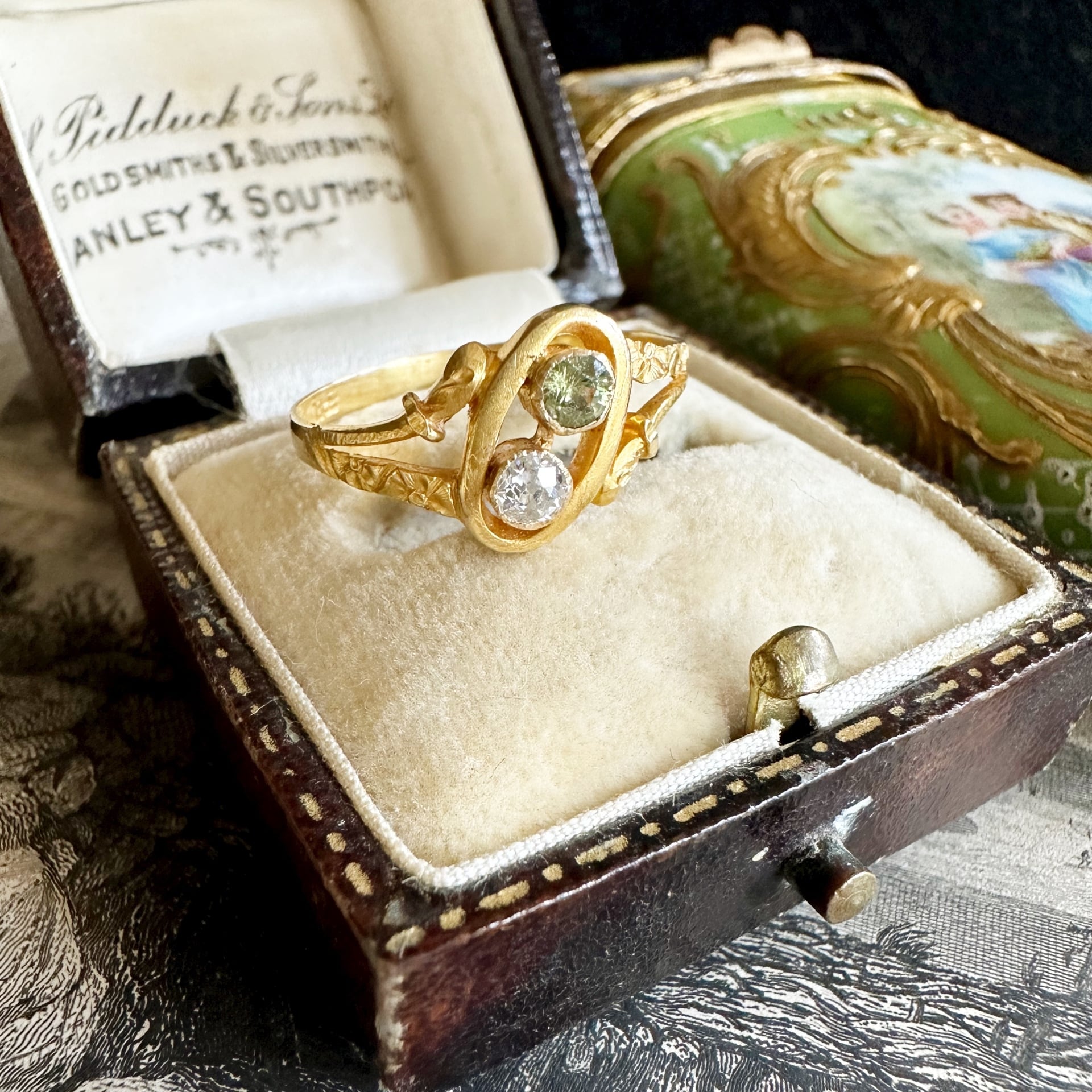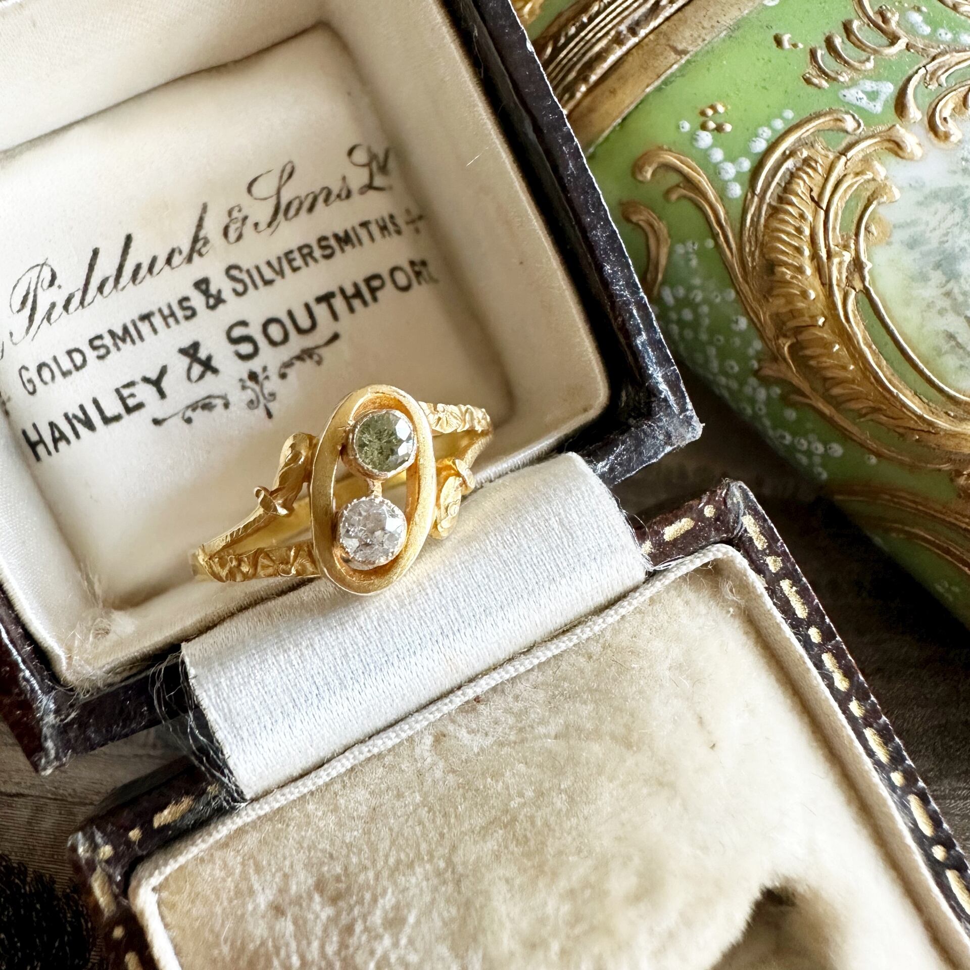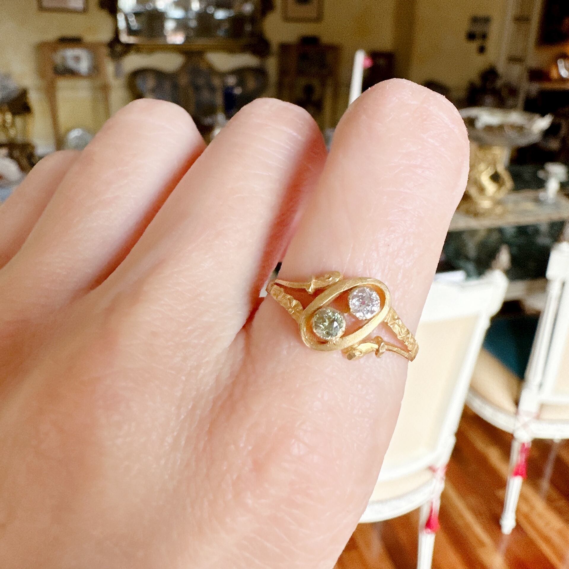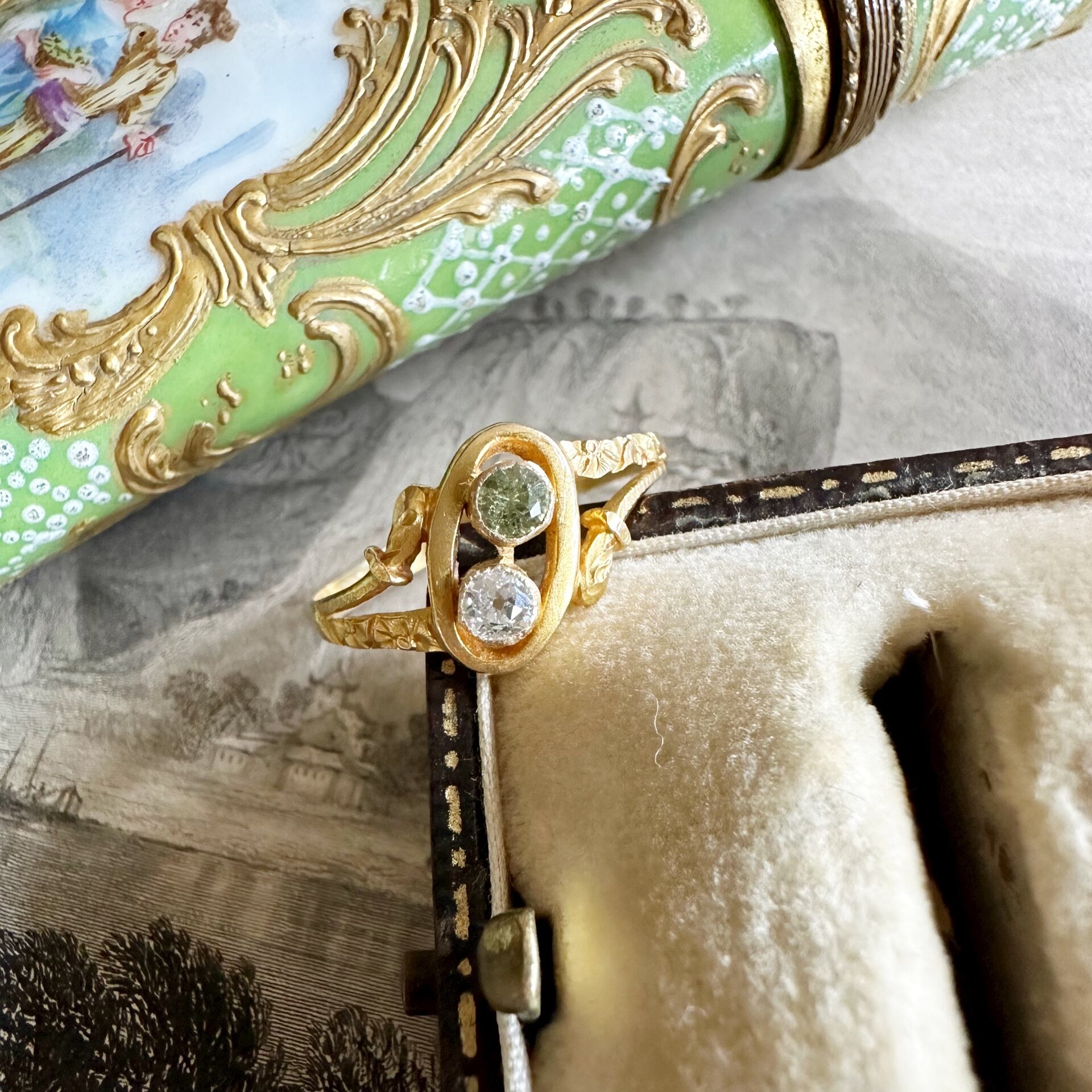 オールドカットダイヤモンド&デマントイドガーネットトワエモワアールヌーヴォーリング
