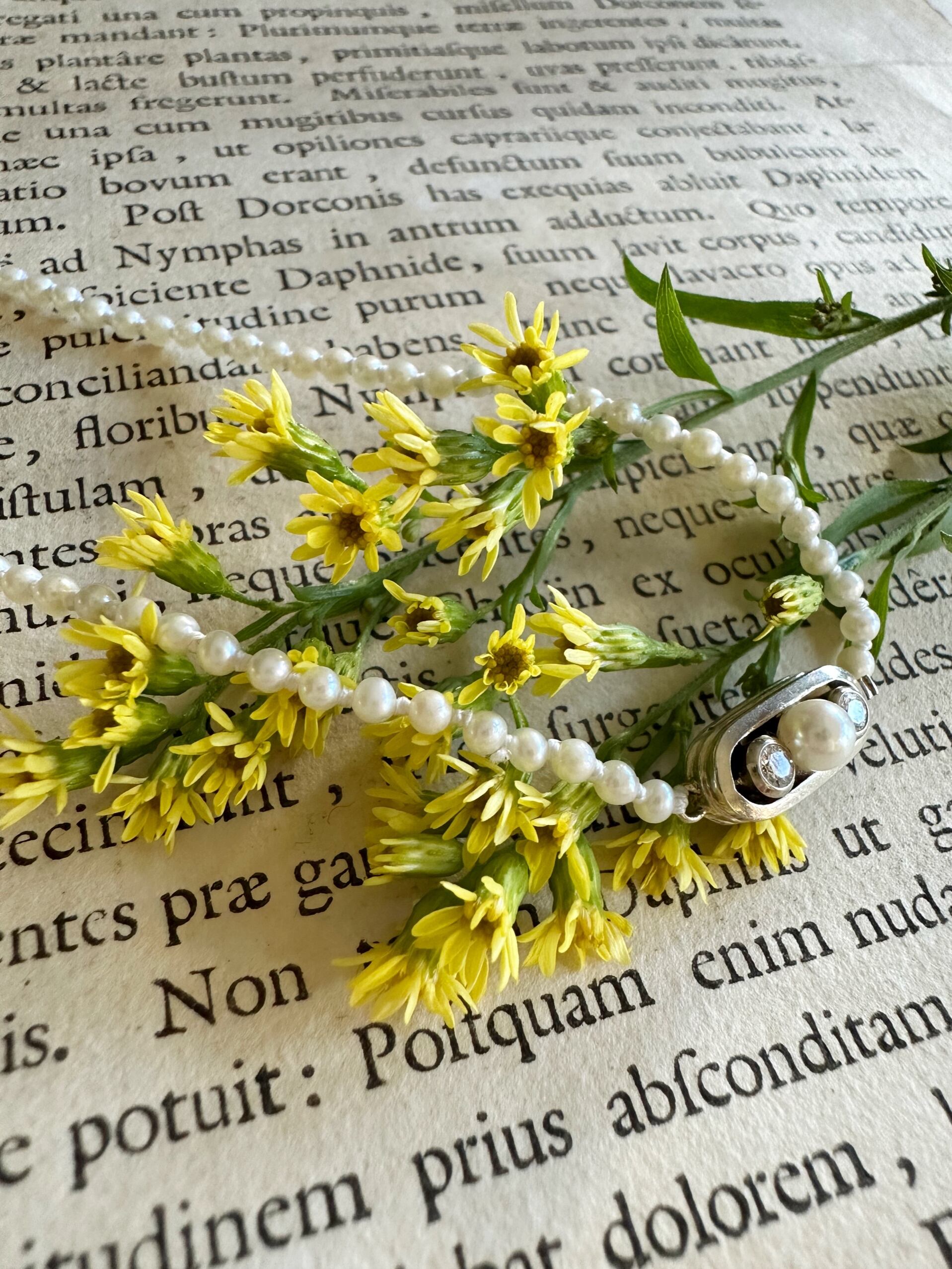 それぞれのパールはまん丸ではなく、型がそれぞれ微妙に違い、独自の輝きを放ち、ネックレス全体が上品で儚い雰囲気に包まれています。なんともアンティークらしいクラシックな趣きを感じますね。