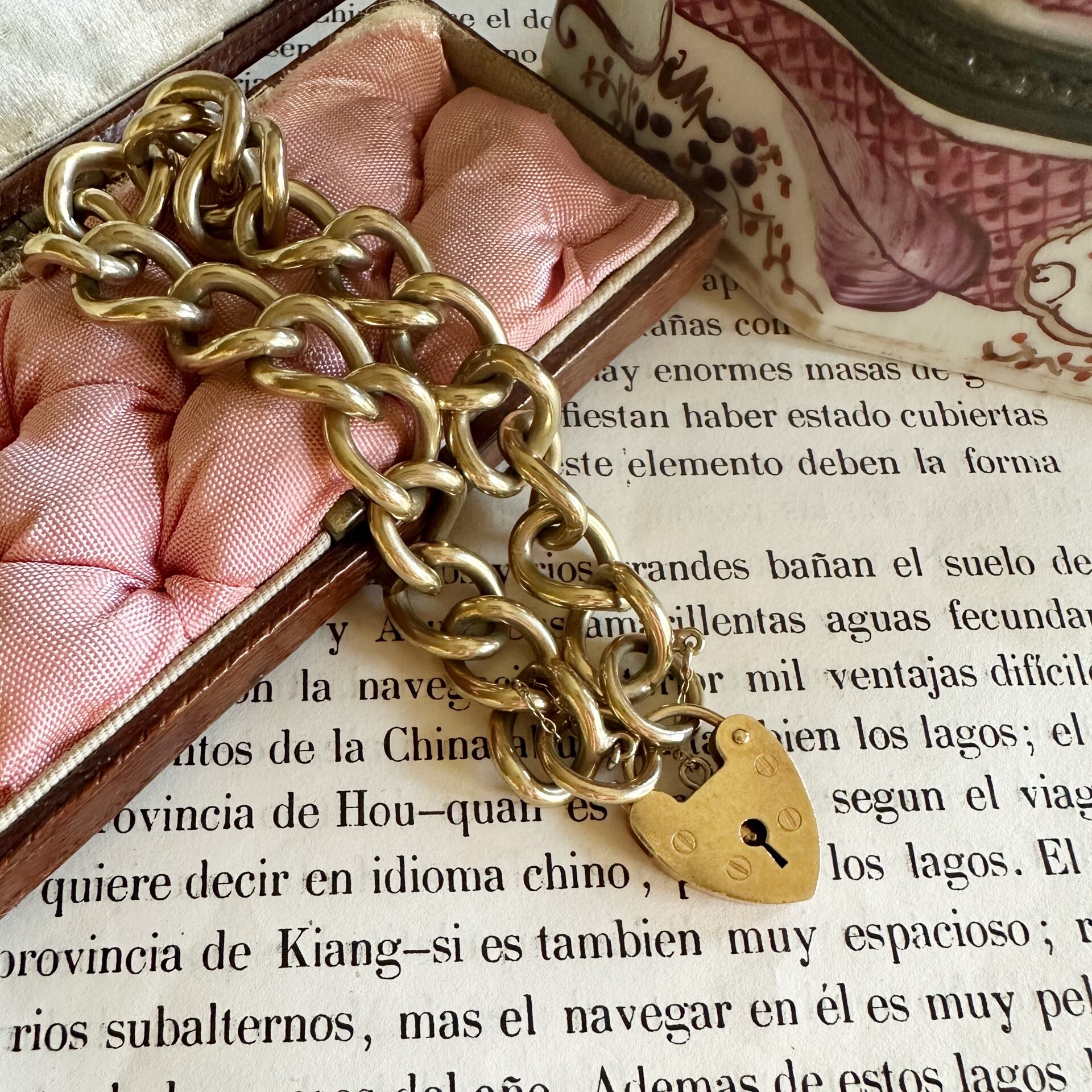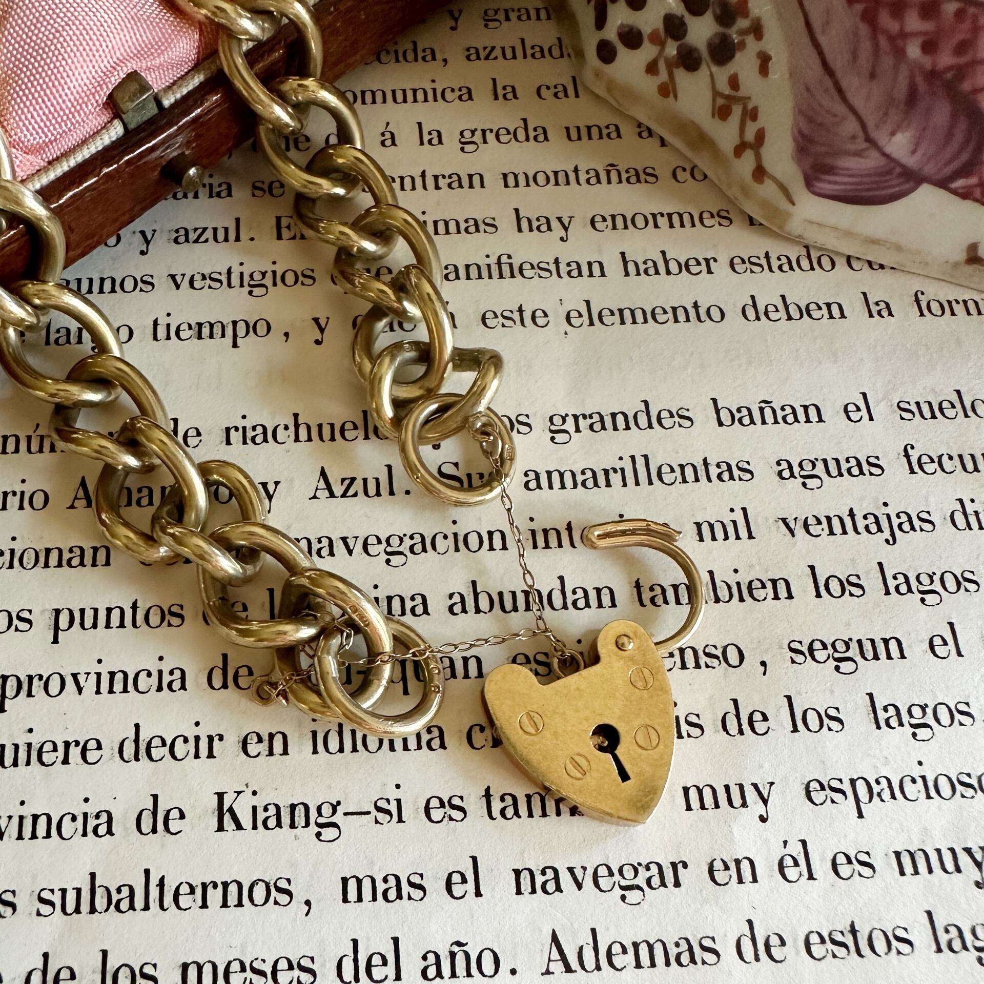 ハートのパドロックブリティッシュアンティーク ヘビーチェーンブレスレット