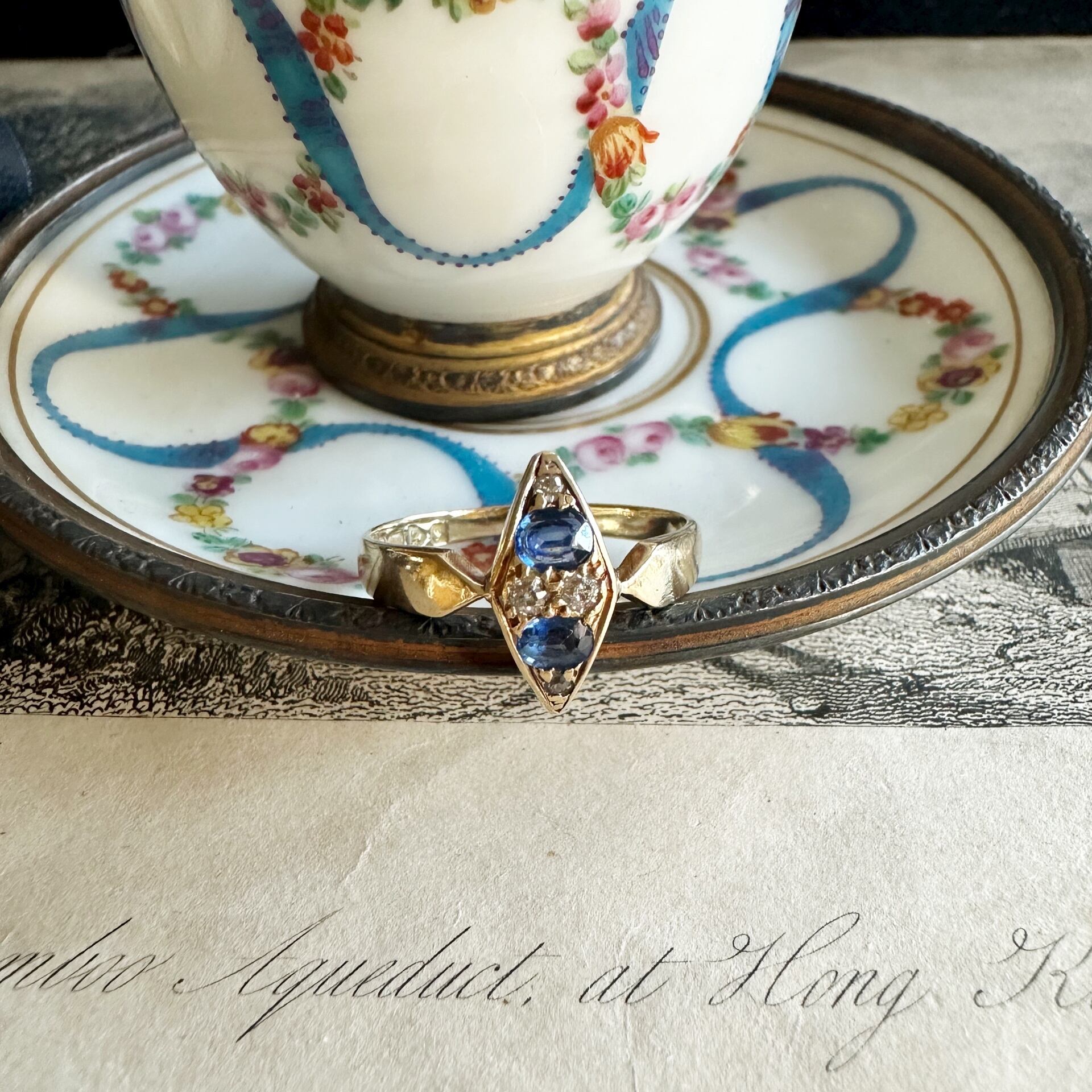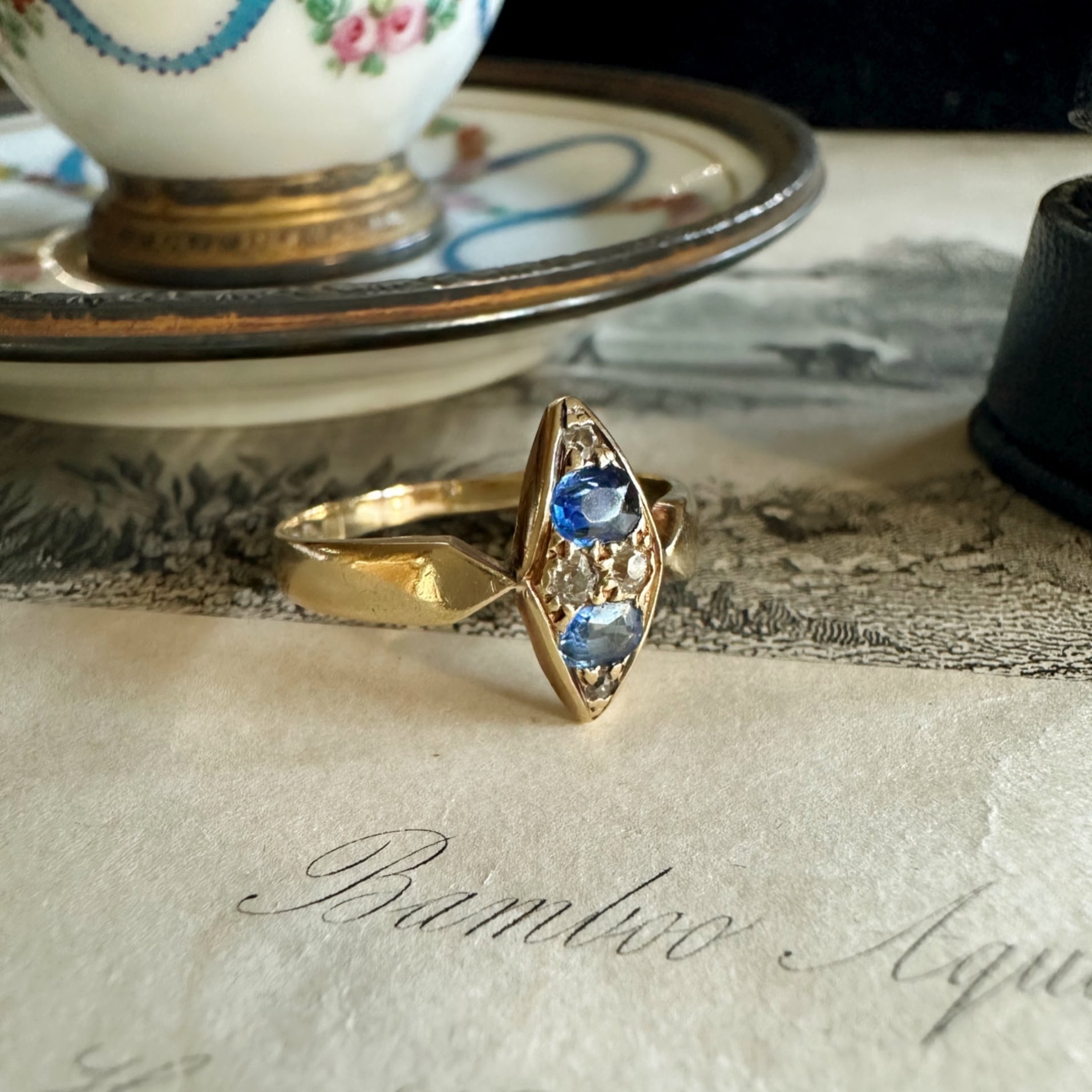 サファイア&オールドカットダイヤモンド エドワーディアンリング