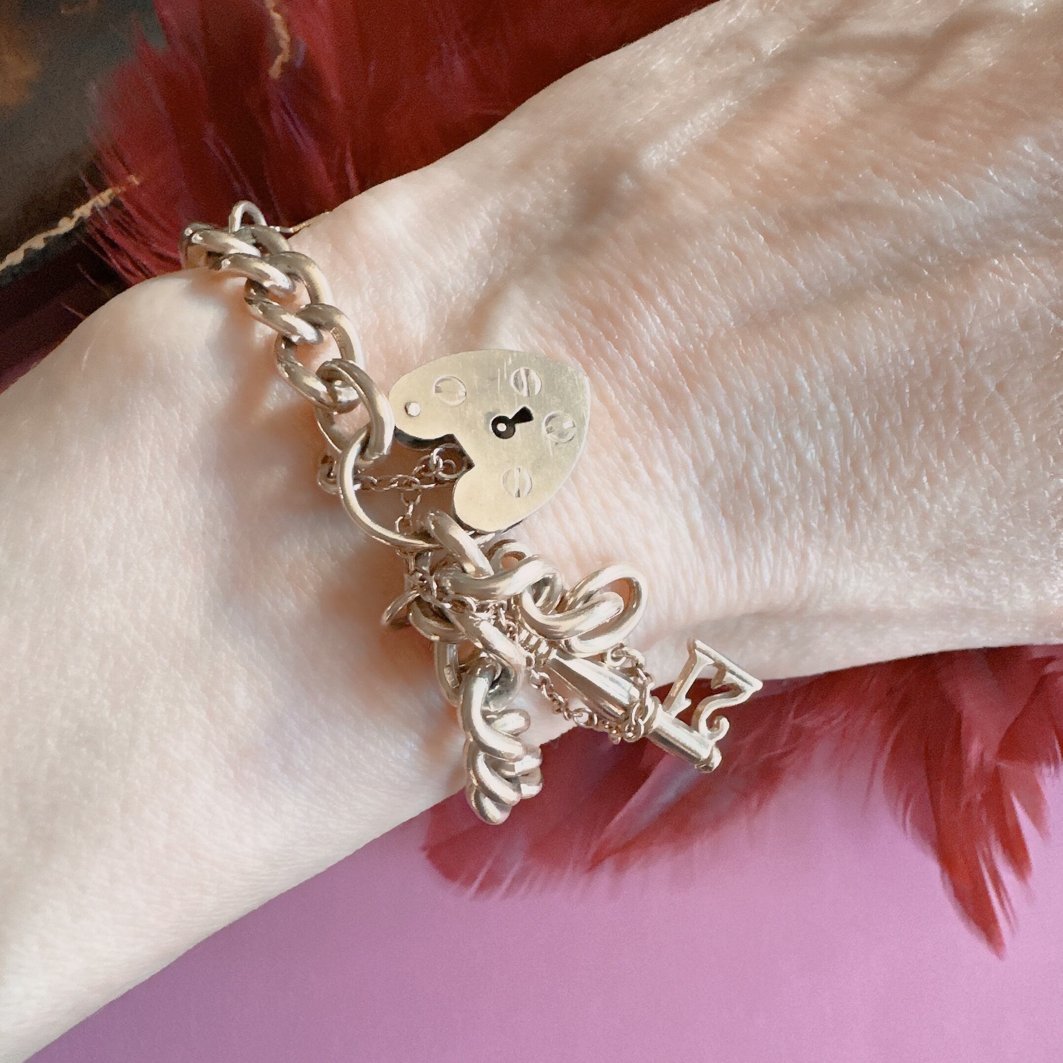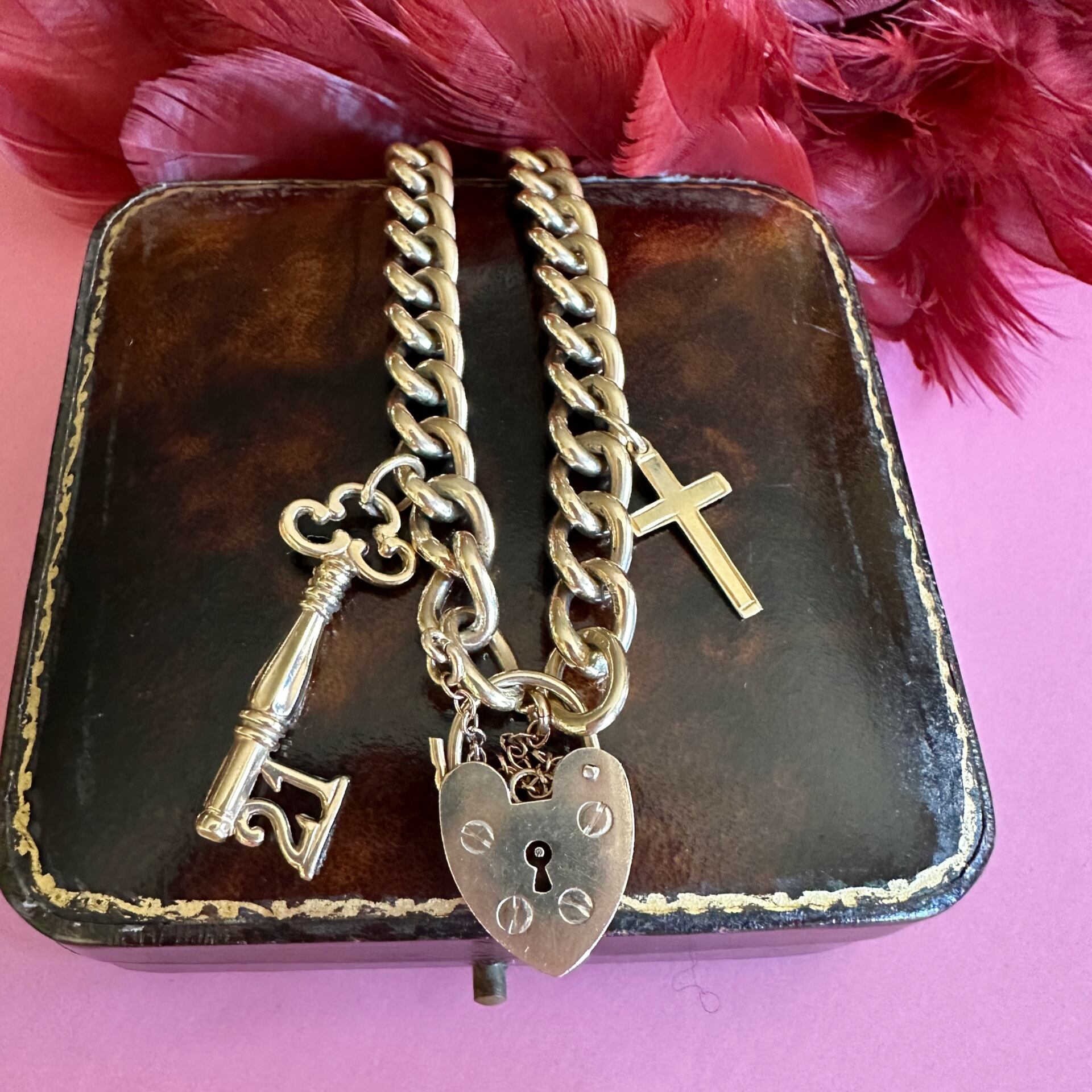 (T様専用)21キーチャーム 23g 9ct ハートのパドロックのチェーンブレスレット