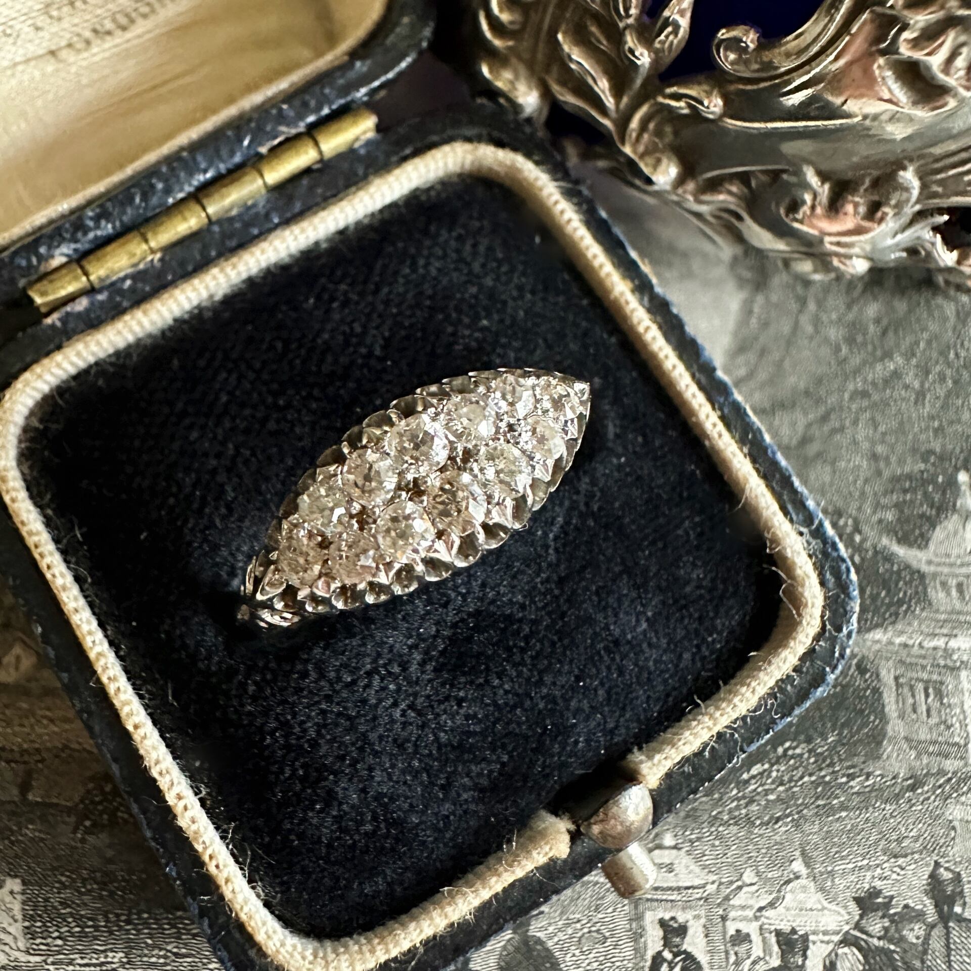オールドマインカットダイヤモンドがトータル12個、2列にセットされた眩ゆいばかりのドレスリング!