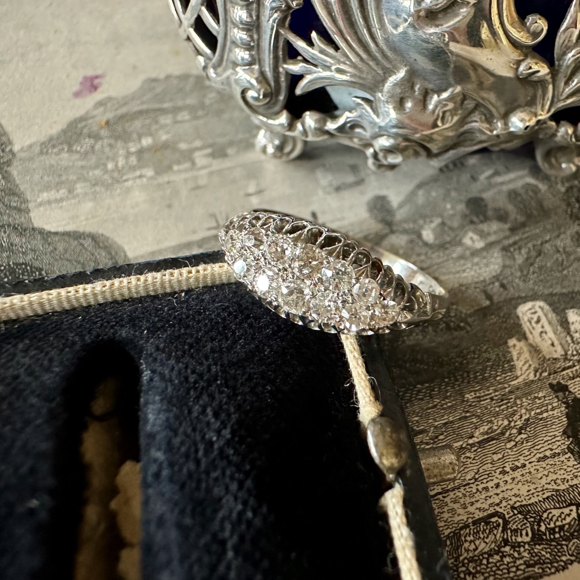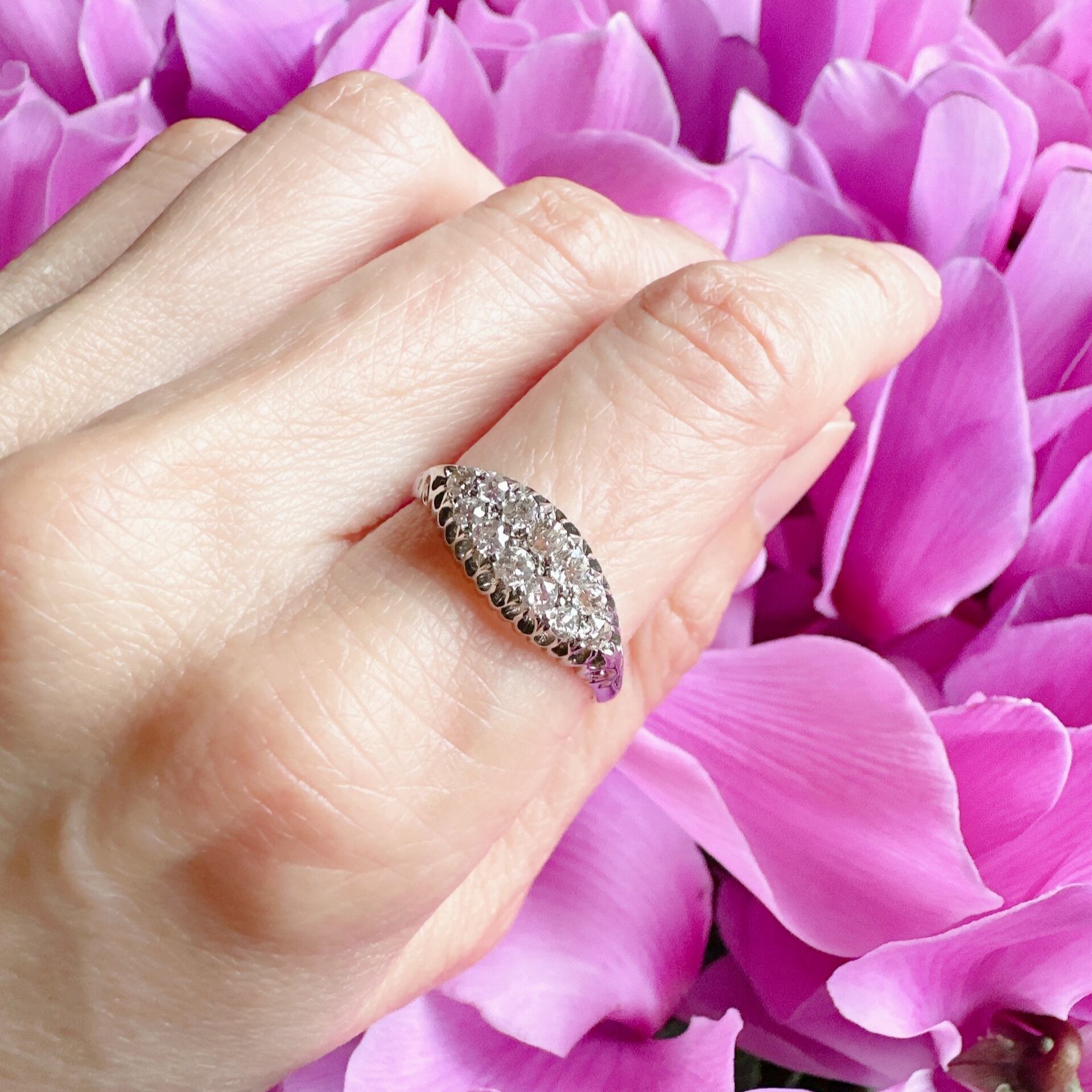 19世紀後半の古き良き時代のエレガンスと、ダイヤモンドの輝きが調和したこのリングは、贅沢な魅力を放ち、永遠の美を象徴しているかのようですね。