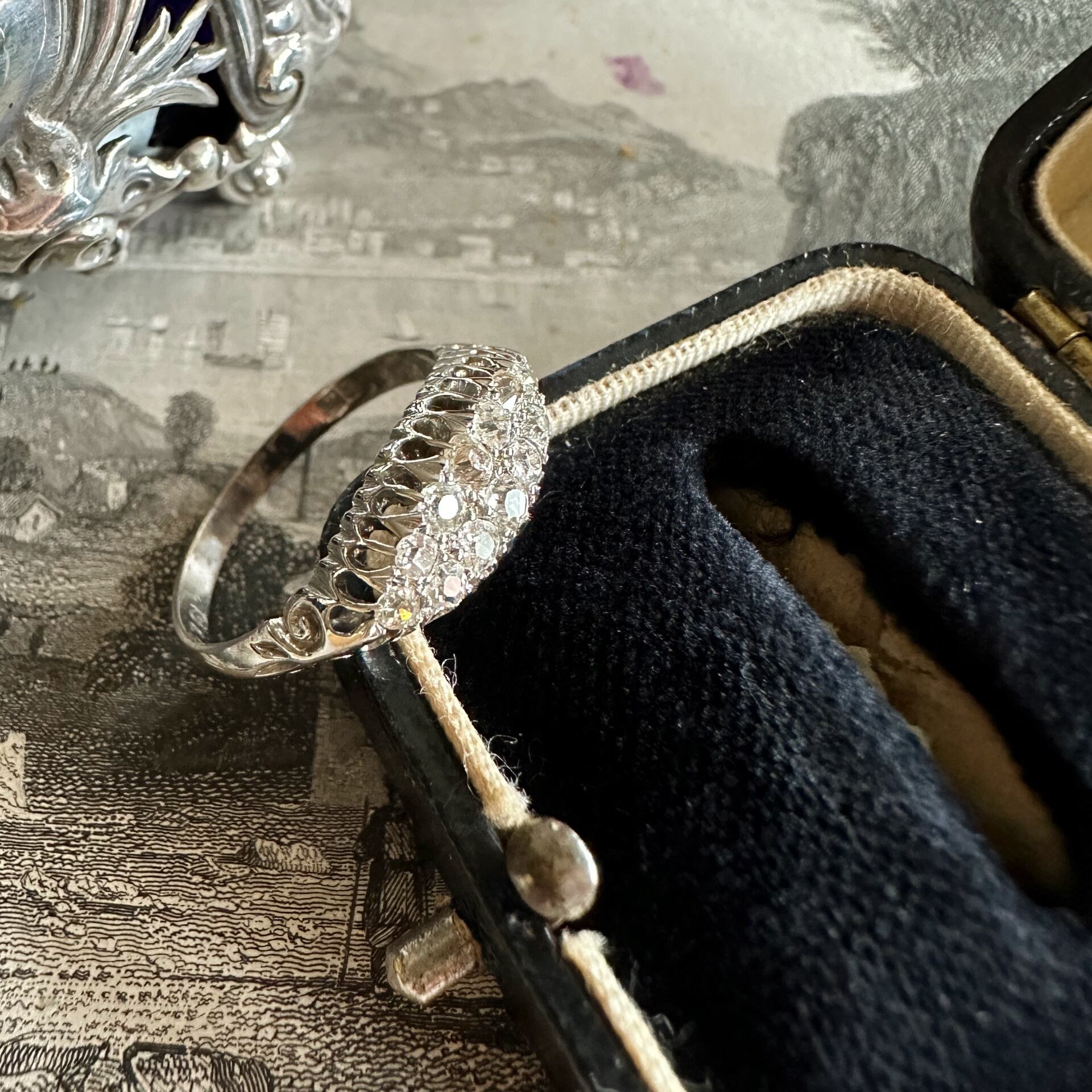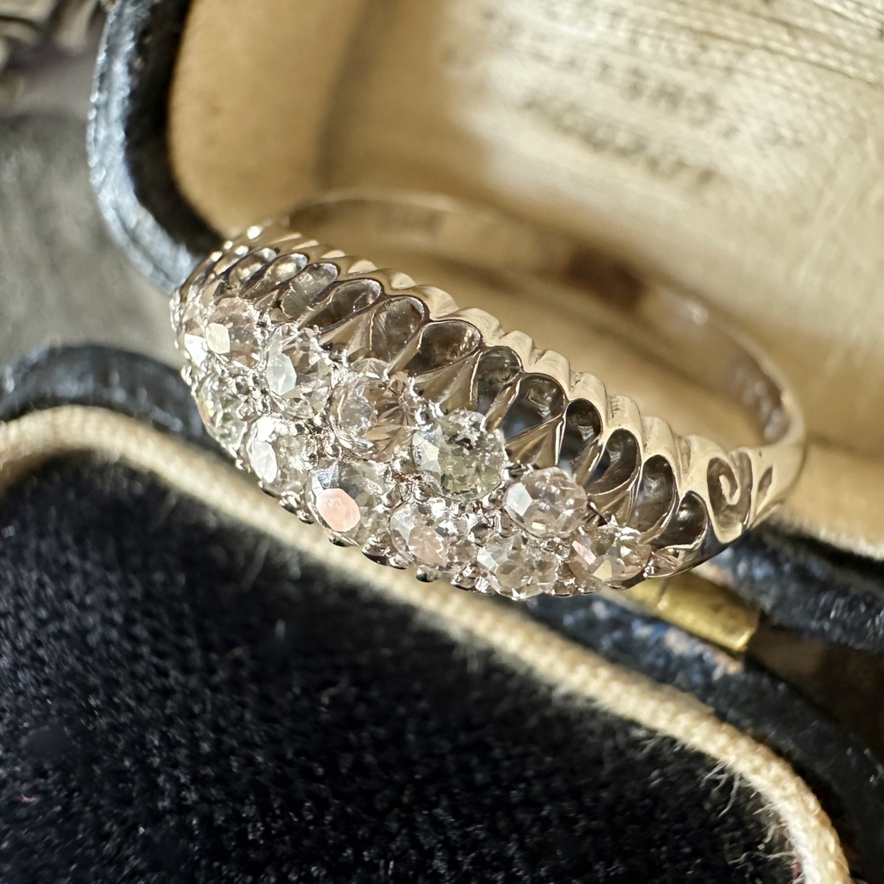2列のオールドマインカットダイヤモンドヴィクトリアンドレスリング