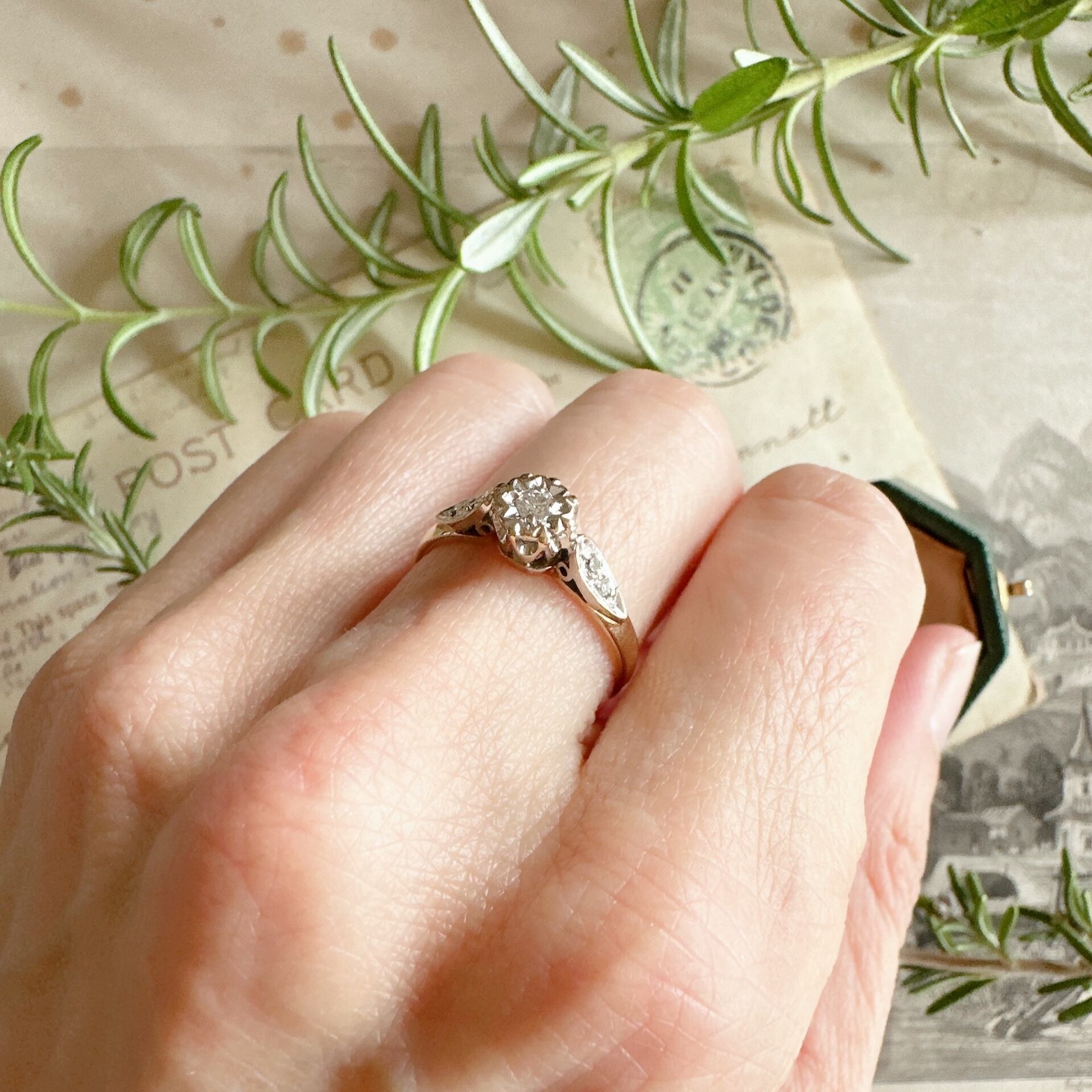 ロンドンのホールマークが残る、20世紀中頃の小さな可憐なダイヤモンドソリテールリング。