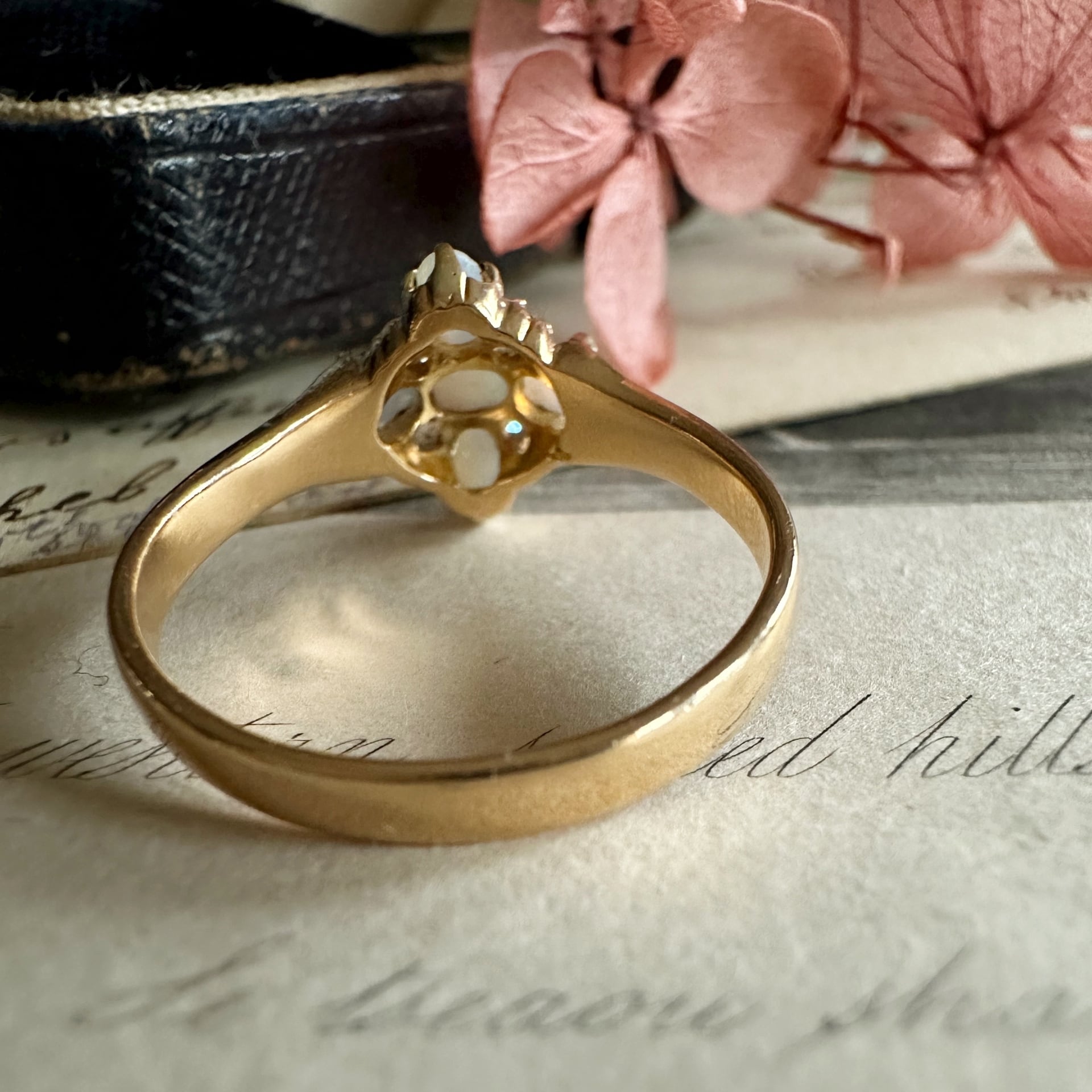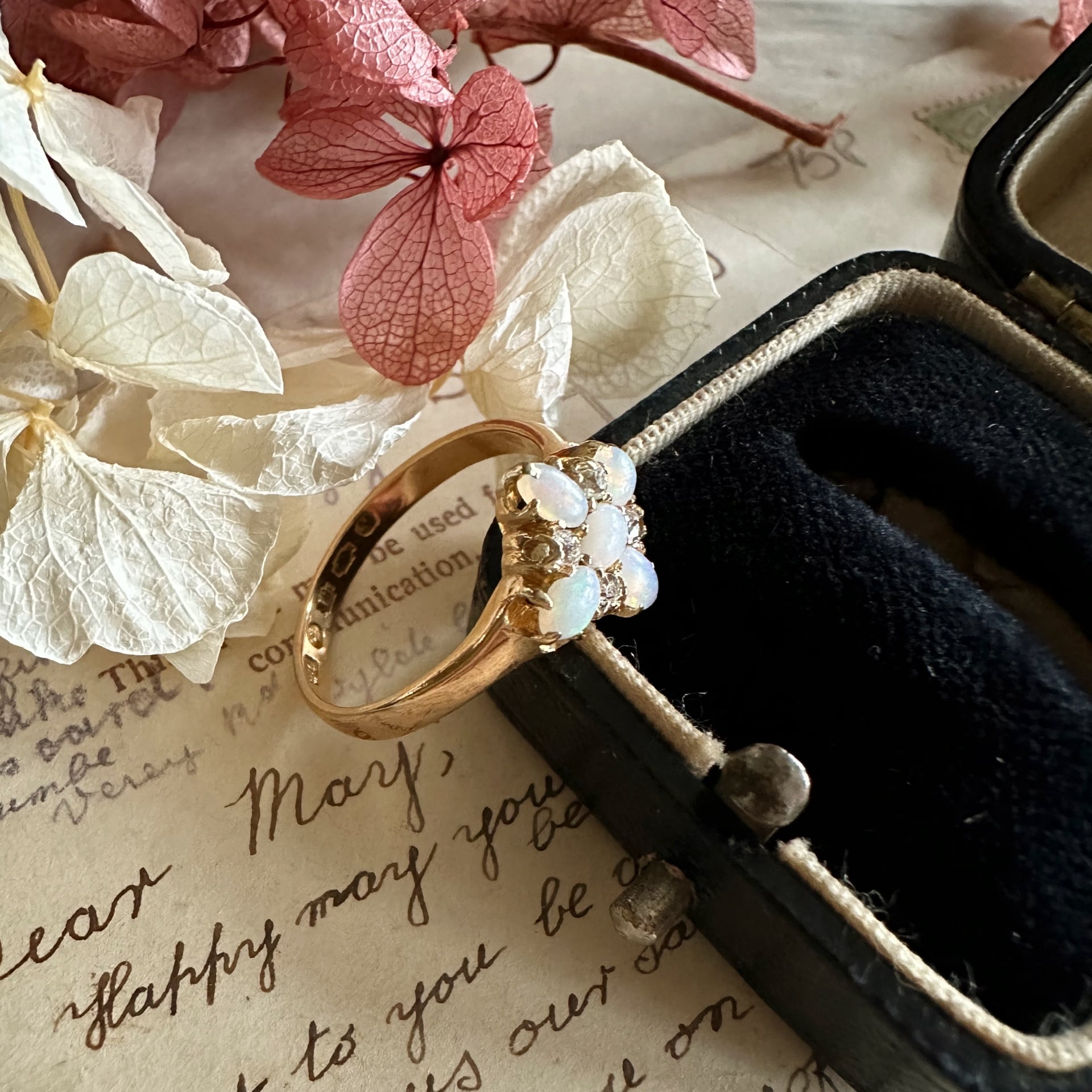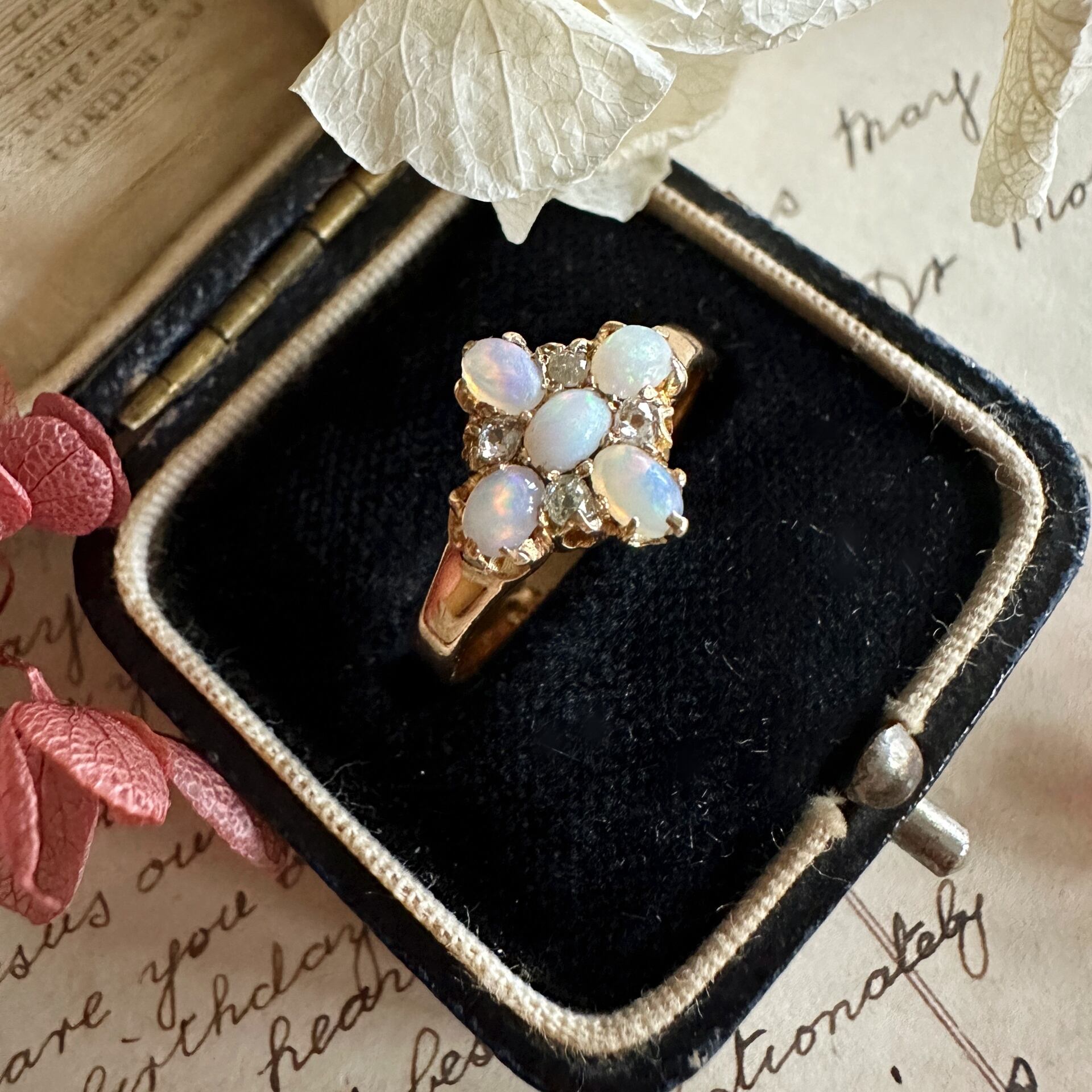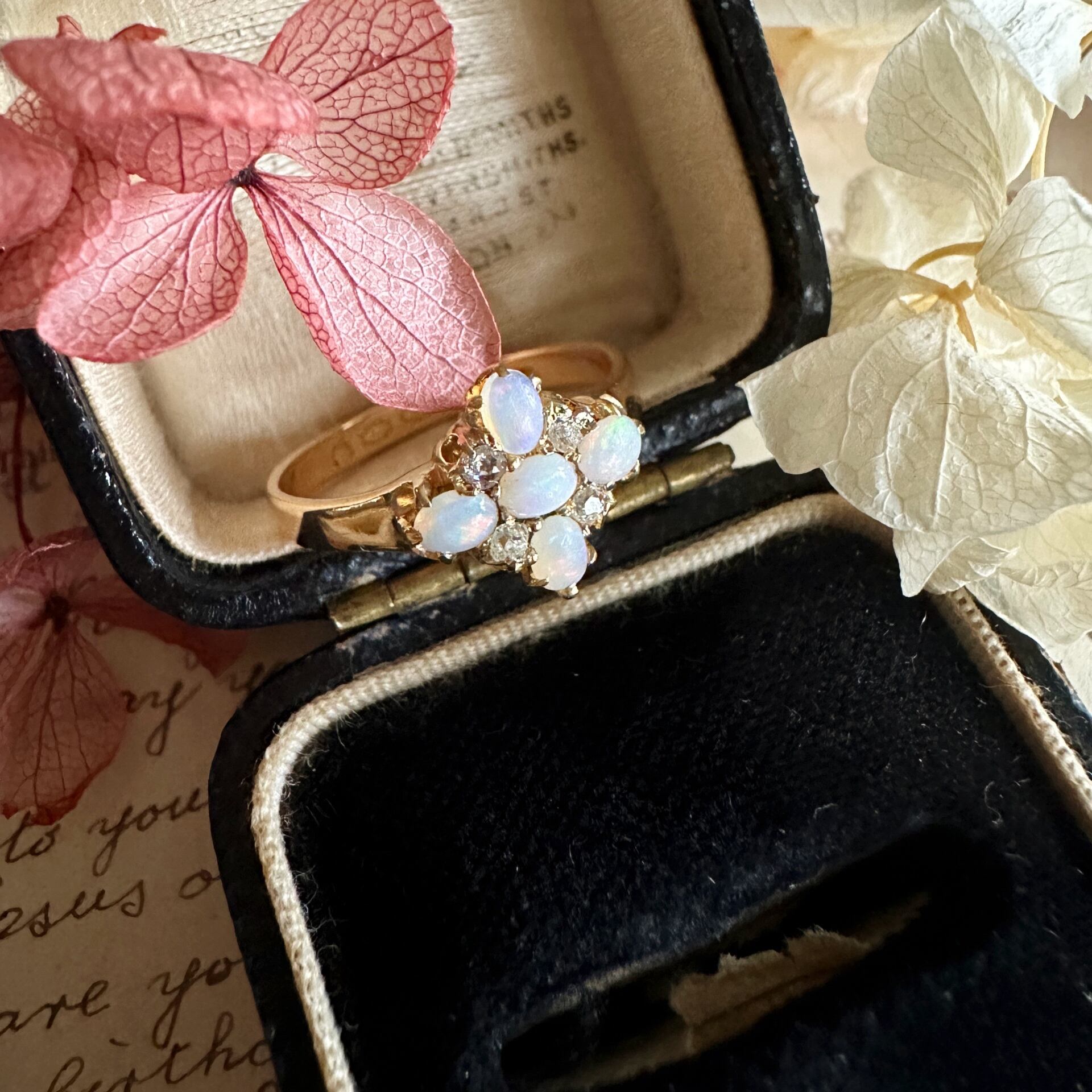 オパール&オールドマインカットダイヤモンドアンティークリング