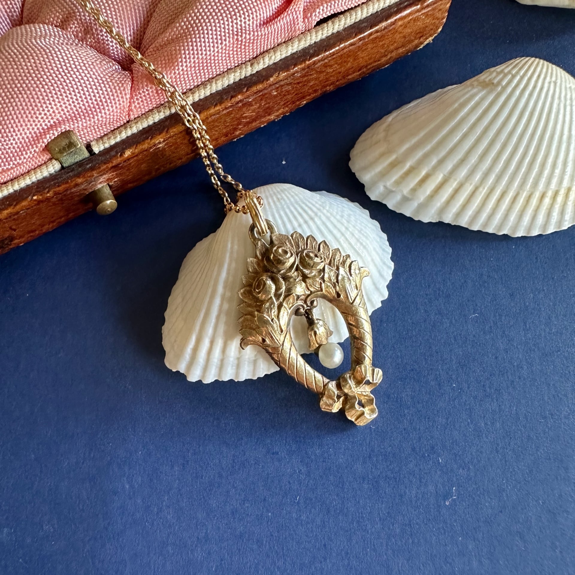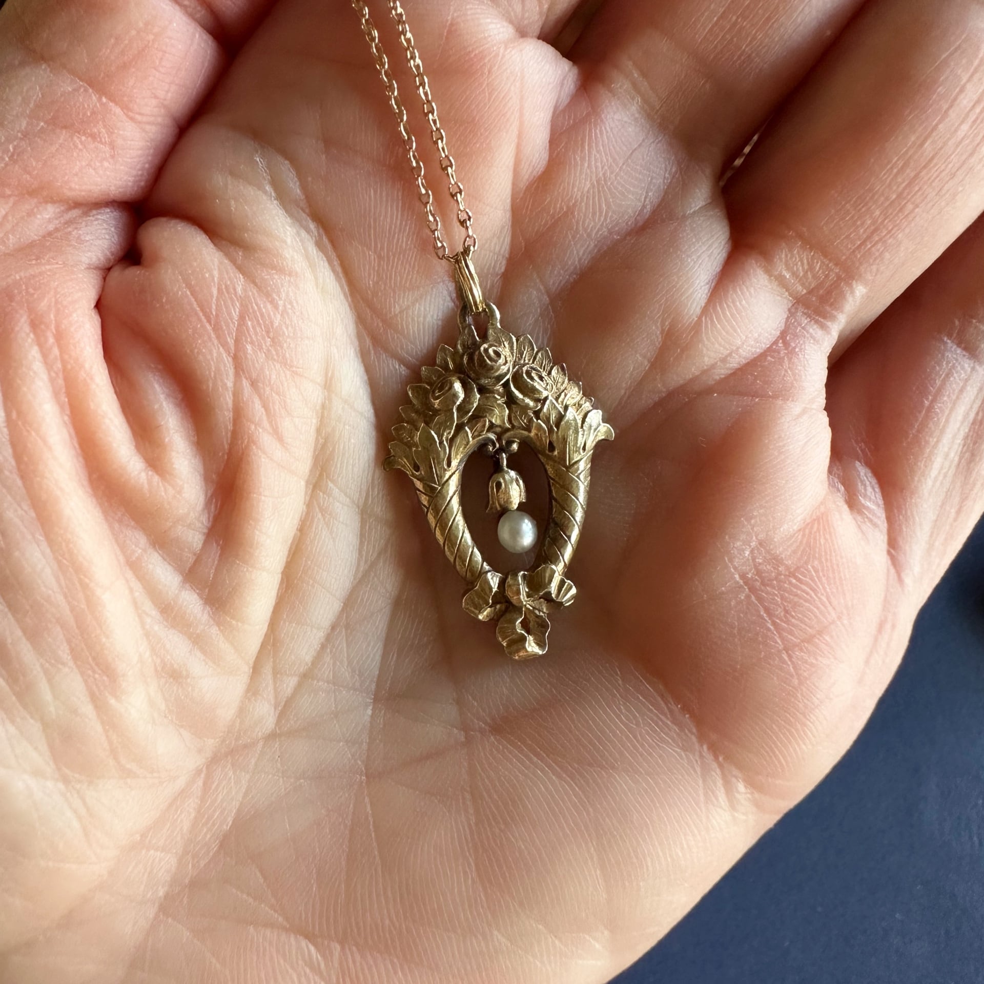 薔薇のリースの鈴蘭ペンダントチェーンネックレス