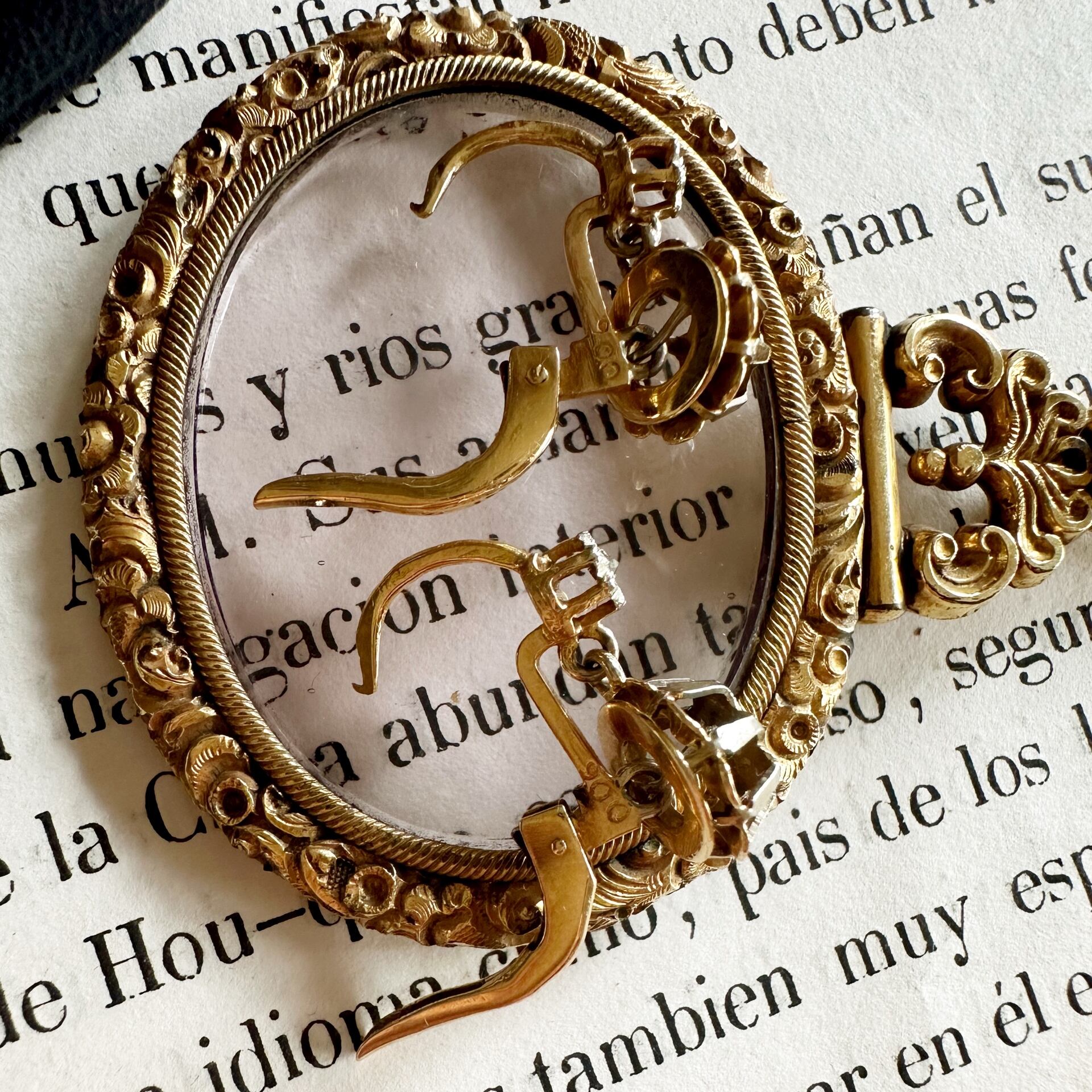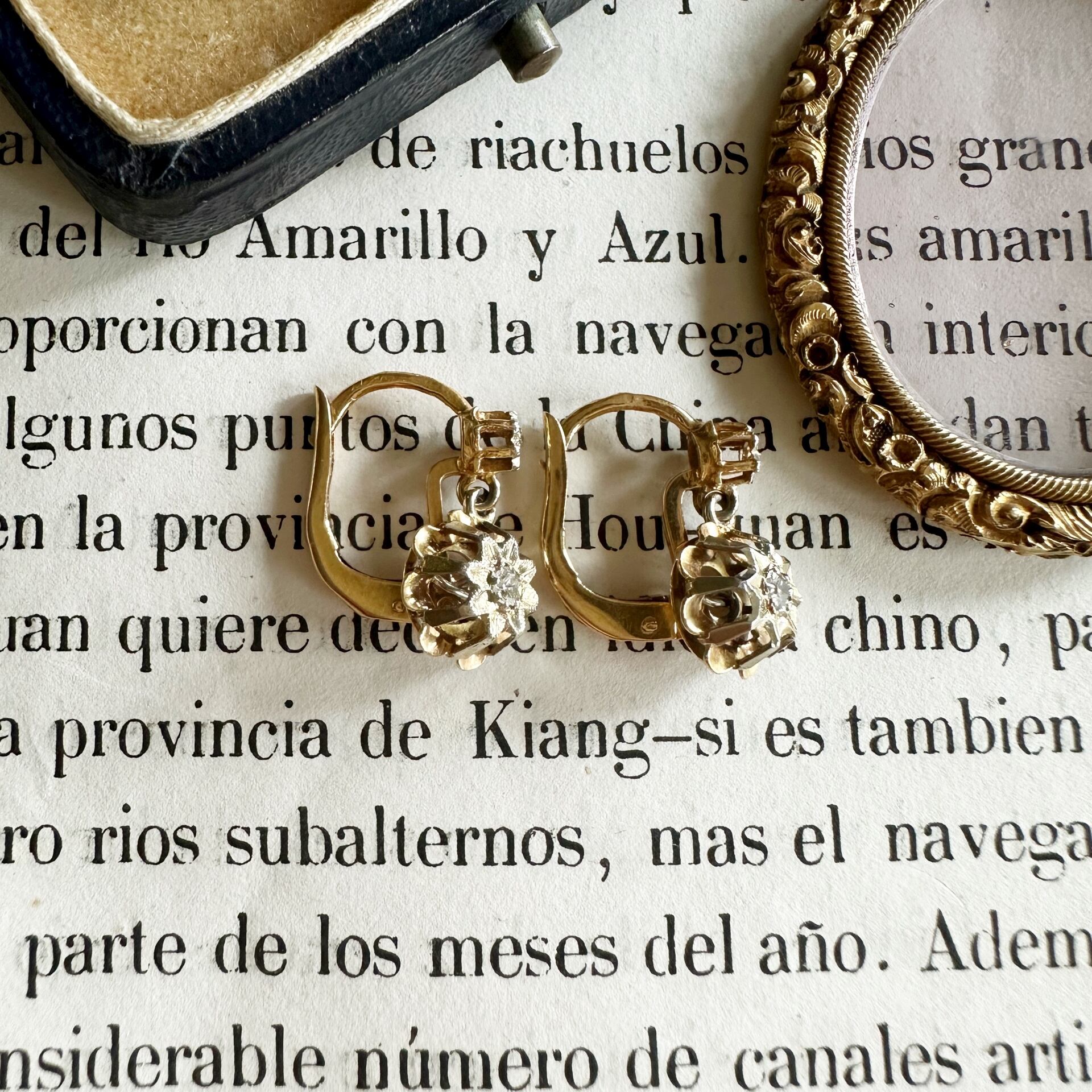 1900年頃に作られた、フレンチアンティークドロップピアス。かつてはアンティーク市場で頻繁に見つけましたが、最近はめっきり珍しいアイテムになってしまいました。こうした耳にフィットする安定感のあるピアスは一つあると重宝しますね。