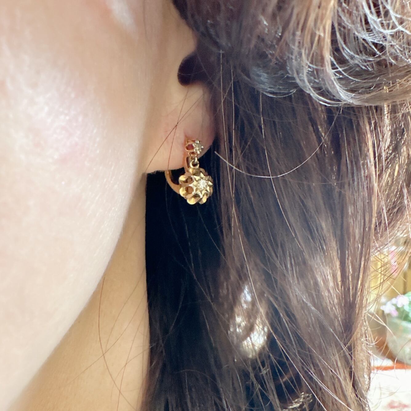 特にこのピアスのように比較的コンパクトで耳にフィットするダイヤモンドピアスは、フランスアンティークジュエリーの定番です。