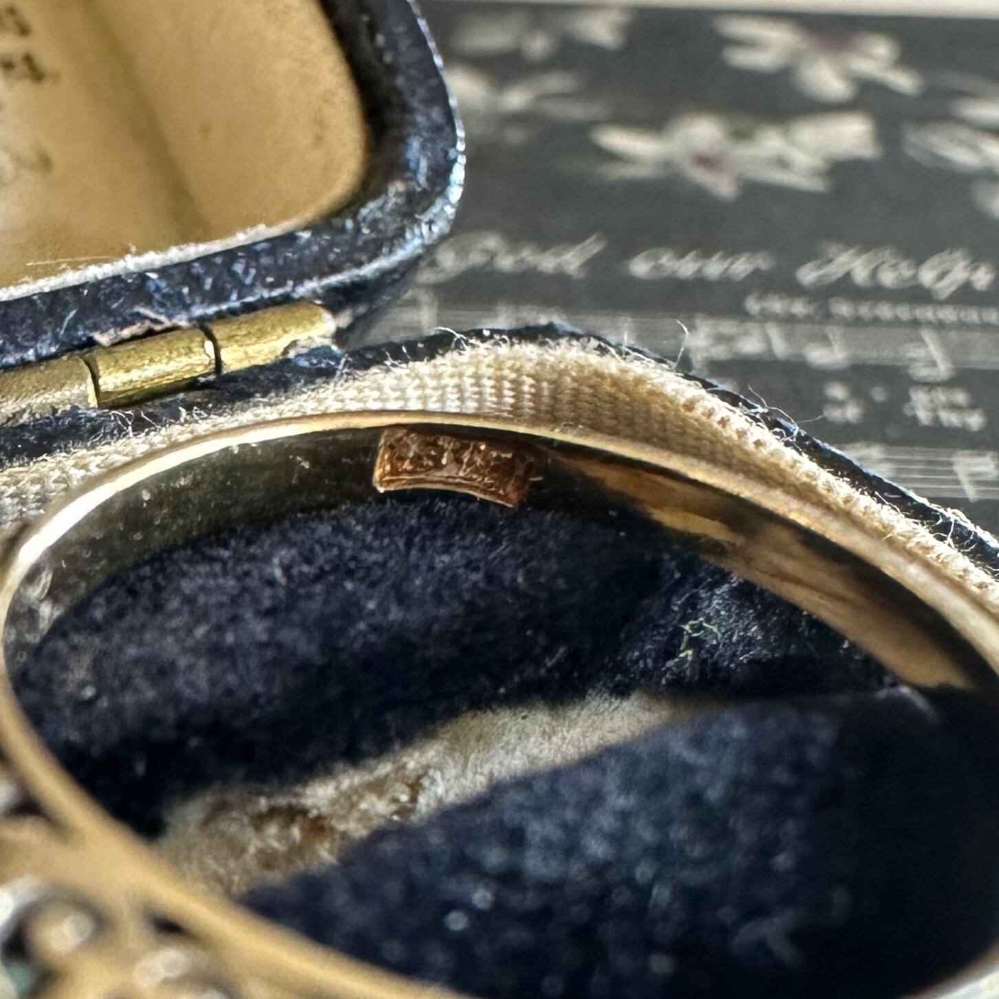 ※ 100年以上前の古いお品になりますので、経年によるアンティーク品特有の微小なスレなどルーペで見てわかる程度にございます。ダイヤモンドはルーペでのぞくと内包物はありますが、肉眼でみえるものではなく、瑞々しい輝きを楽しませてくれます。カケはございません。