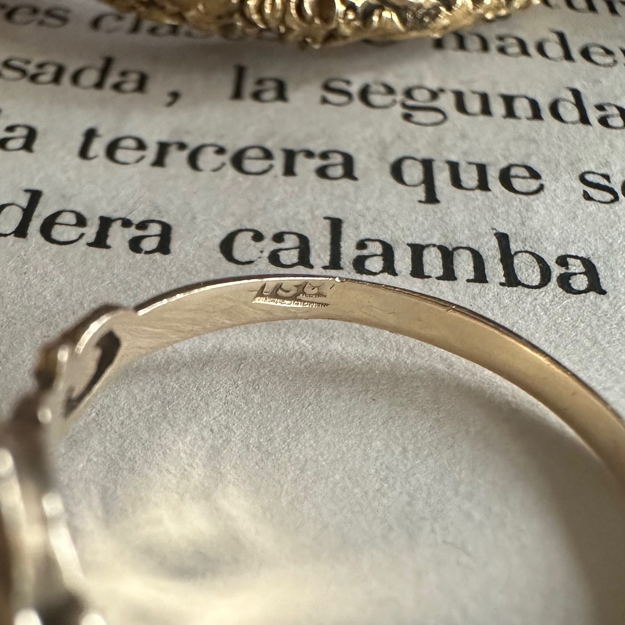 リングのショルダーの透し彫りの植物のデザインは自然との調和や成長を表しています。