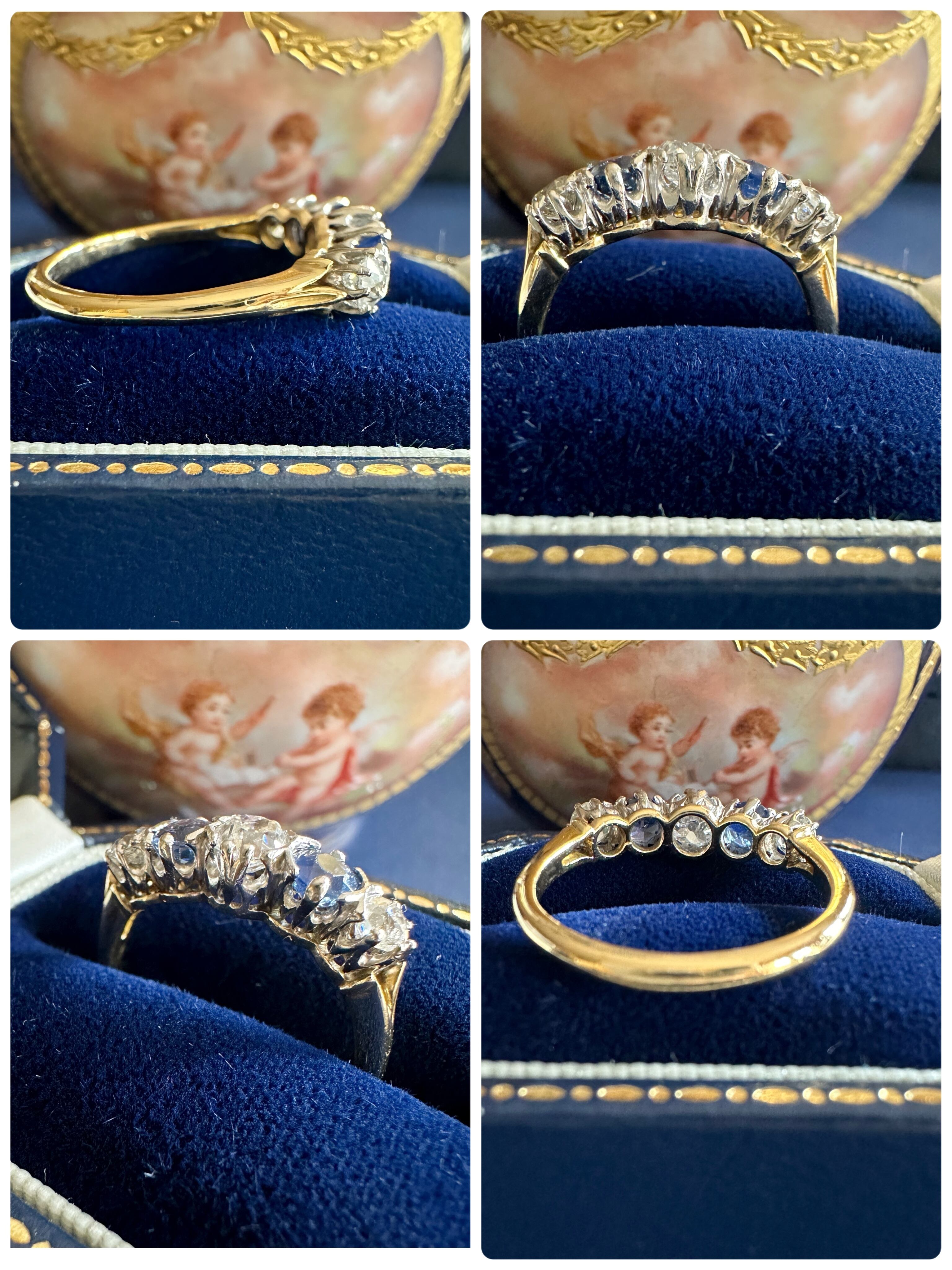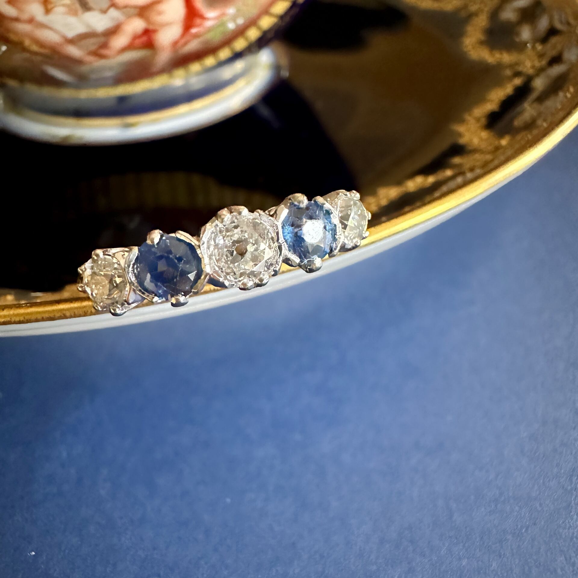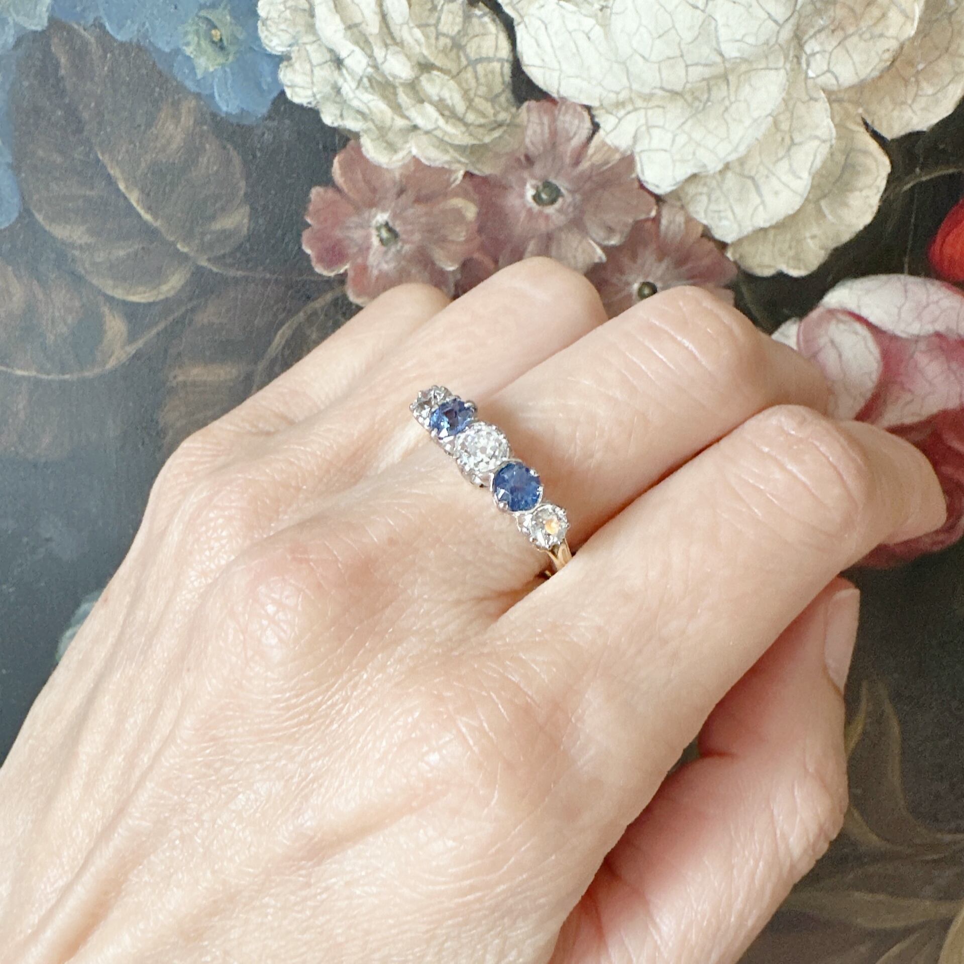 オールドマインカットダイヤモンド&サファイアのファイブストーンリング