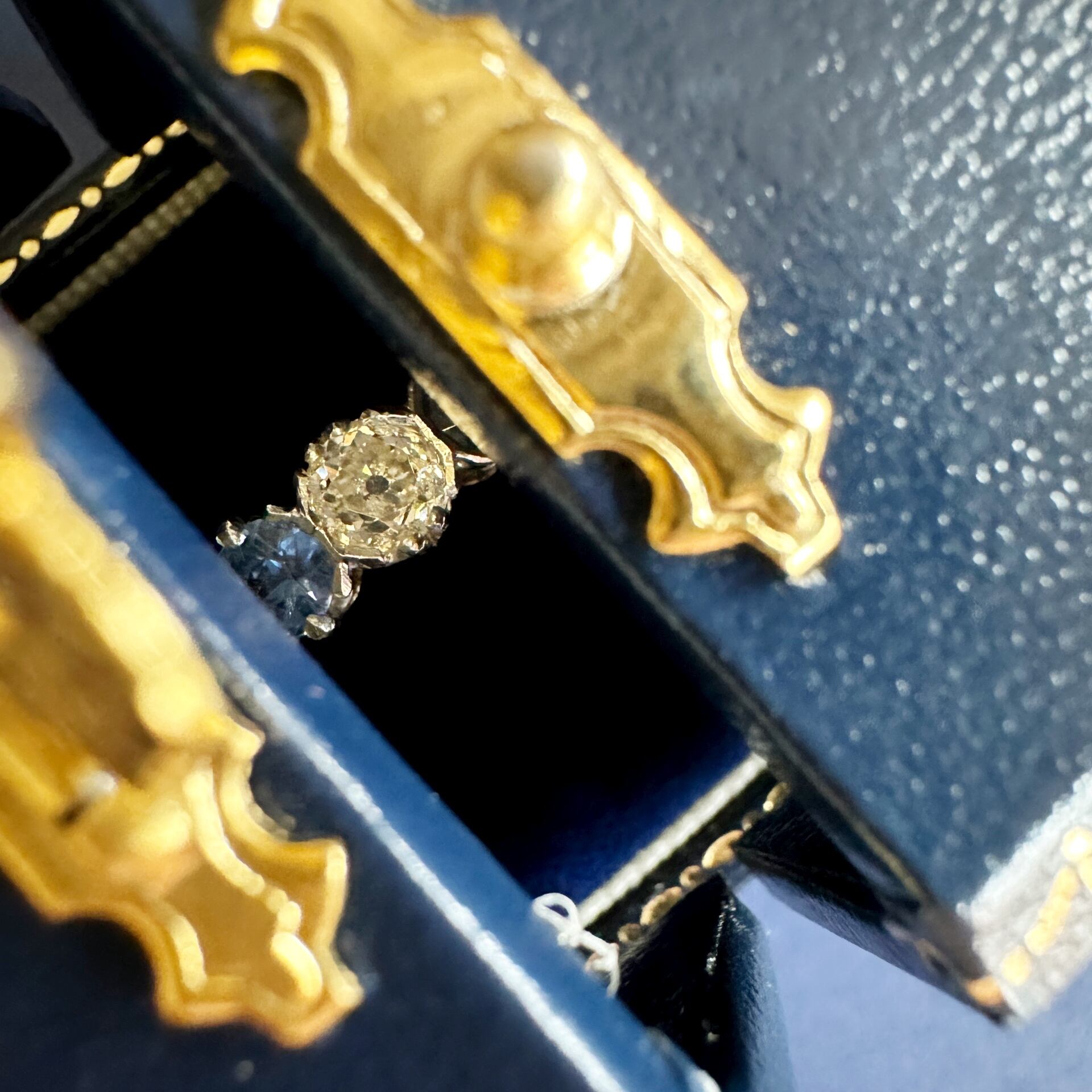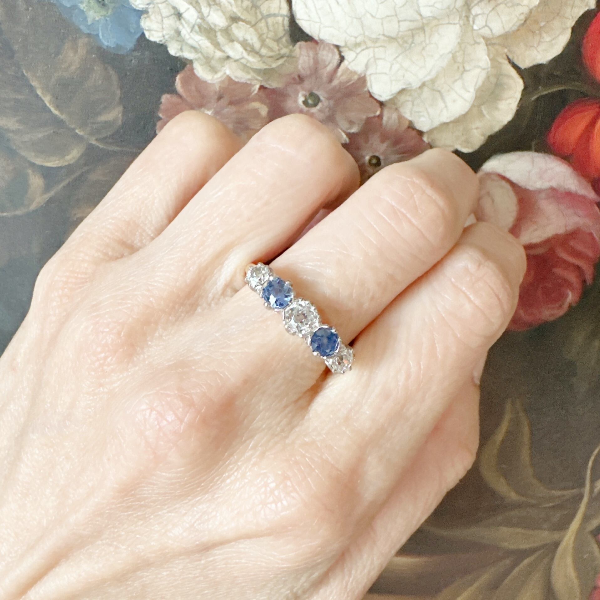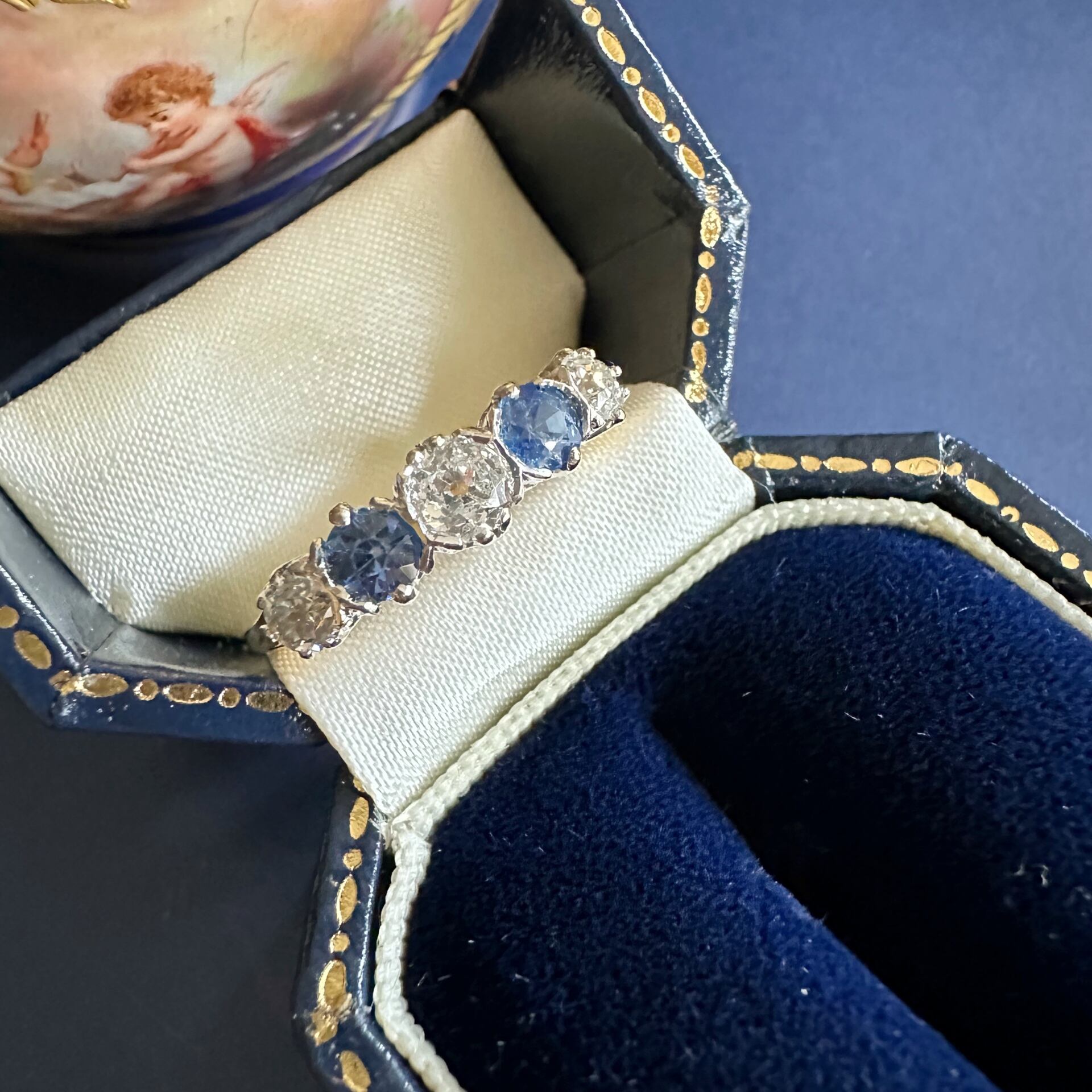 オールドマインカットダイヤモンド&サファイアのファイブストーンリング